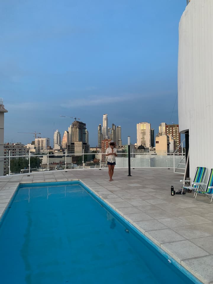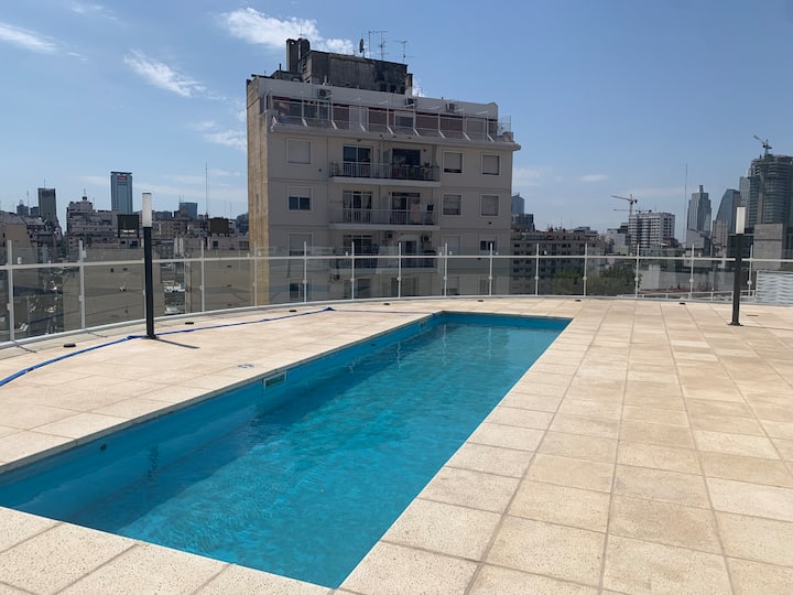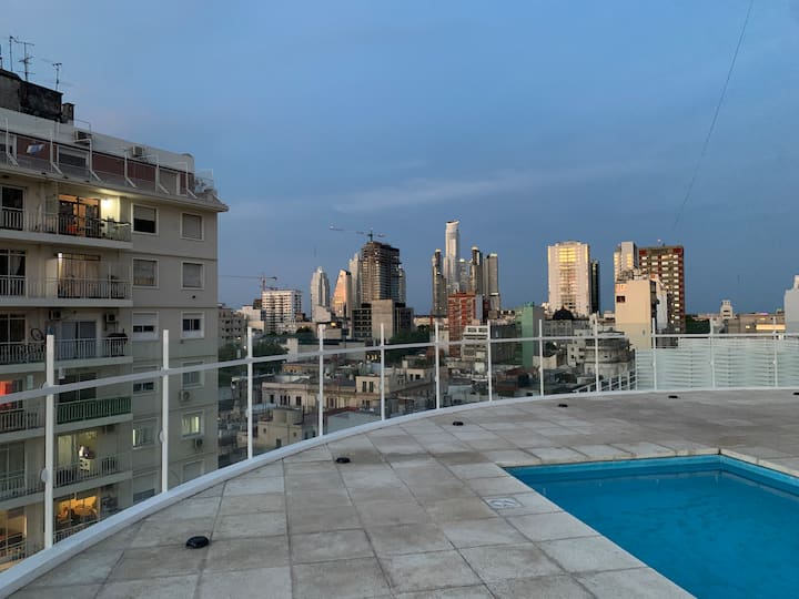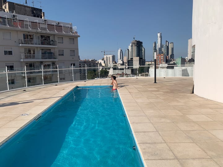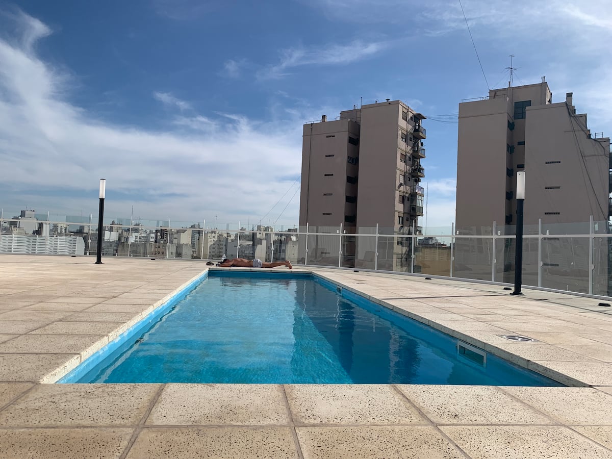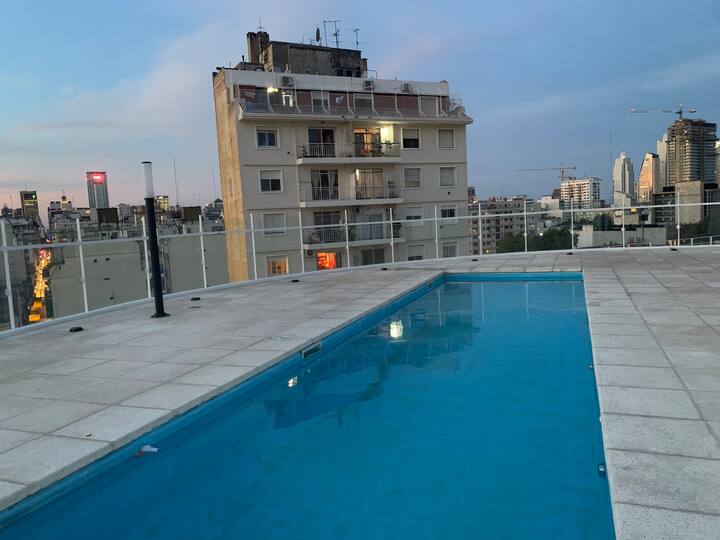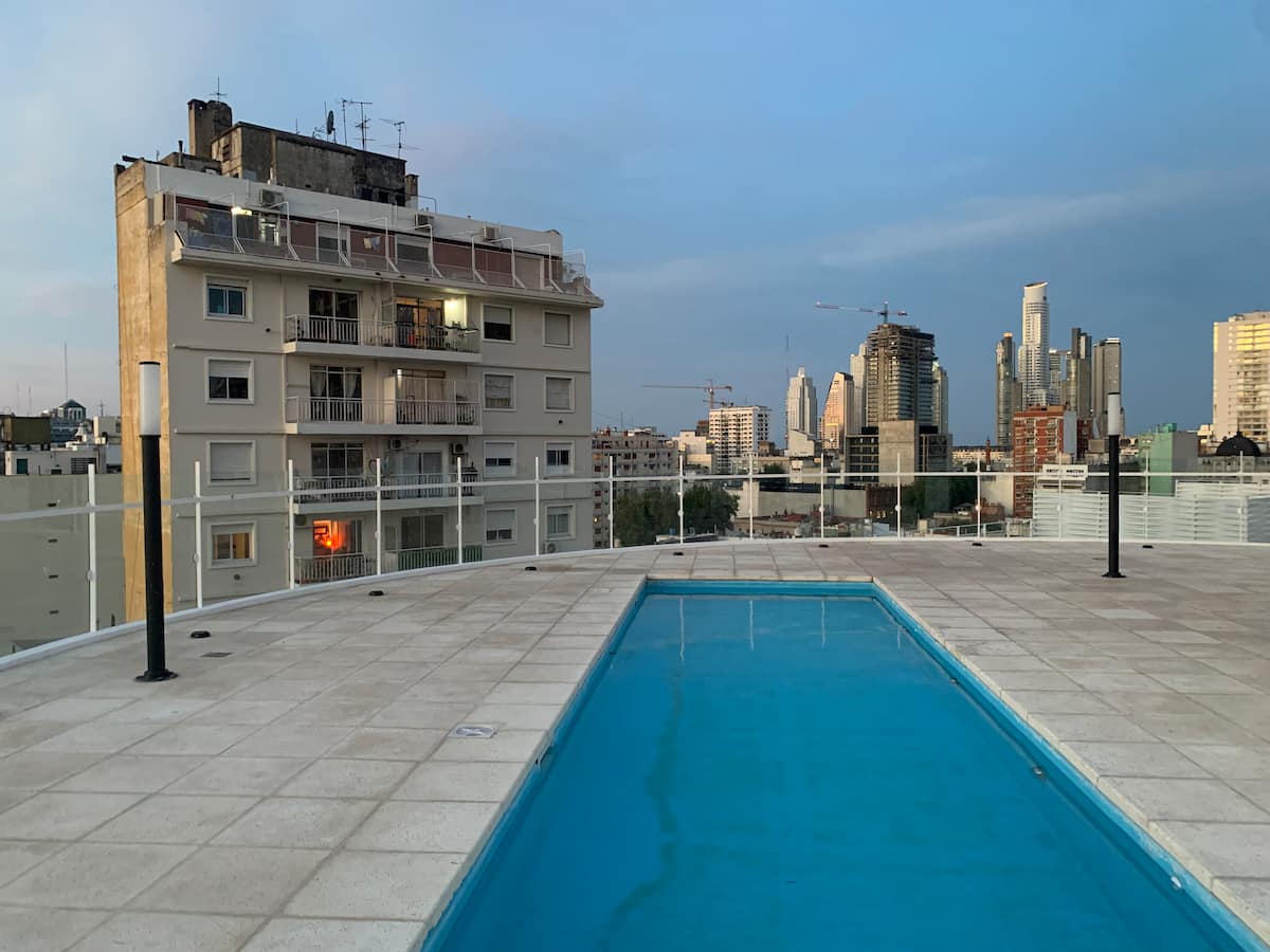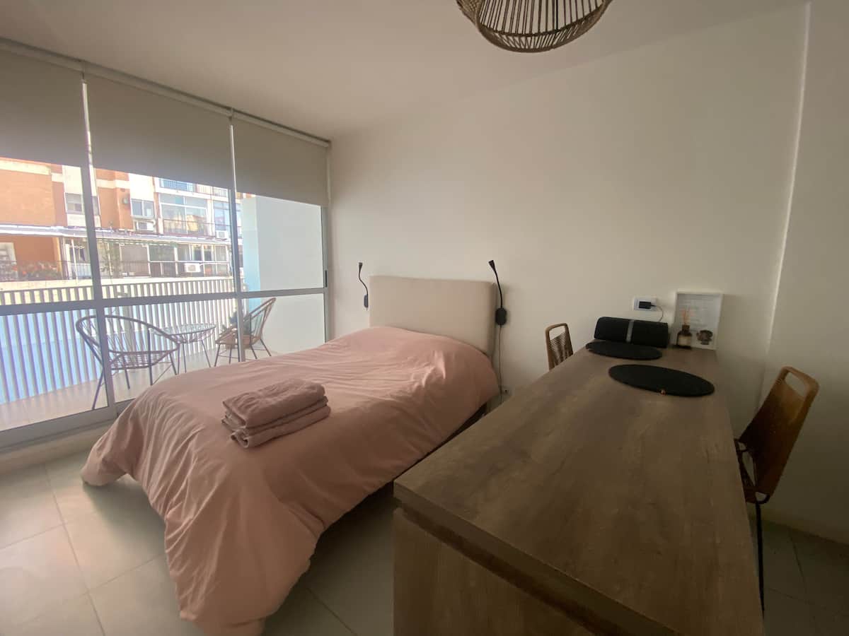 Apartment on the pedestrian street of Bolivar, one block from the Historic Market of San Telmo and two blocks from Plaza Dorrego. It has air conditioning, Wi-Fi, cable TV, a balcony, and a large bathroom with an integrated kitchen. Check-in is at 2:00 pm and check-out at 10:00 am. It is three blocks from Av. 9 de Julio and four blocks from Puerto Madero.