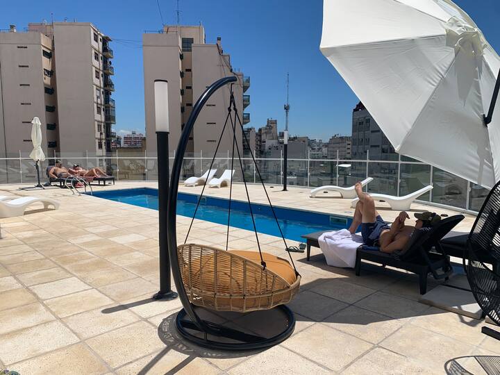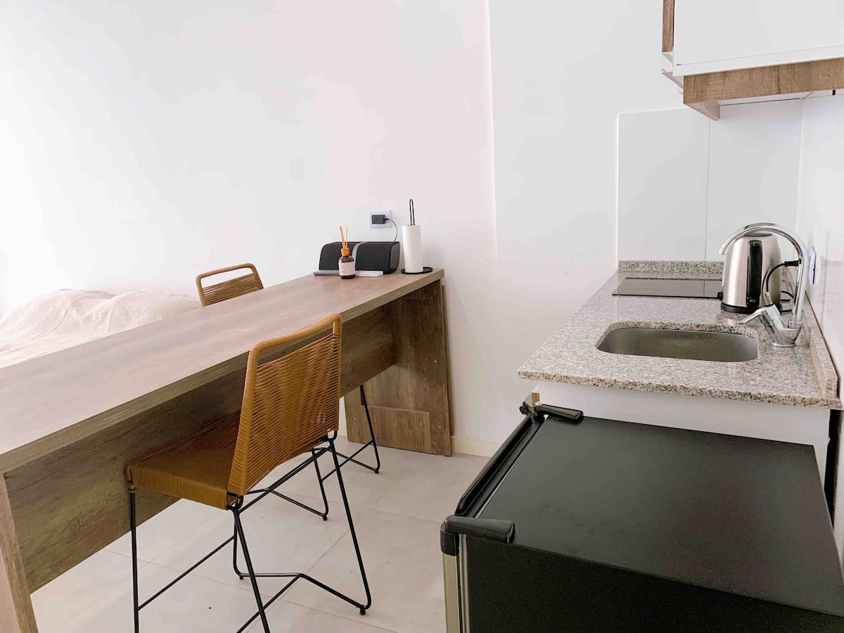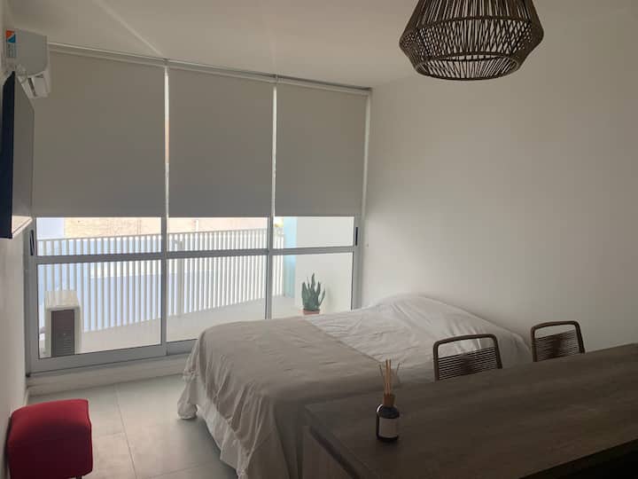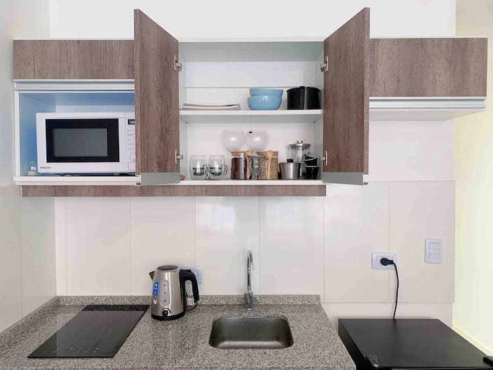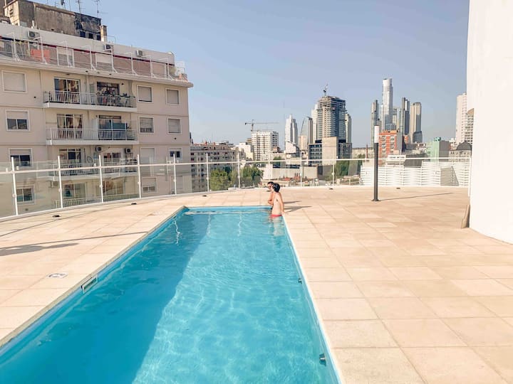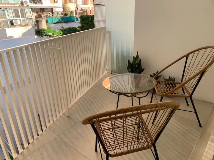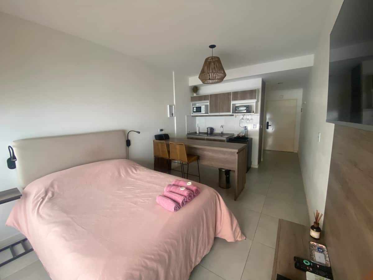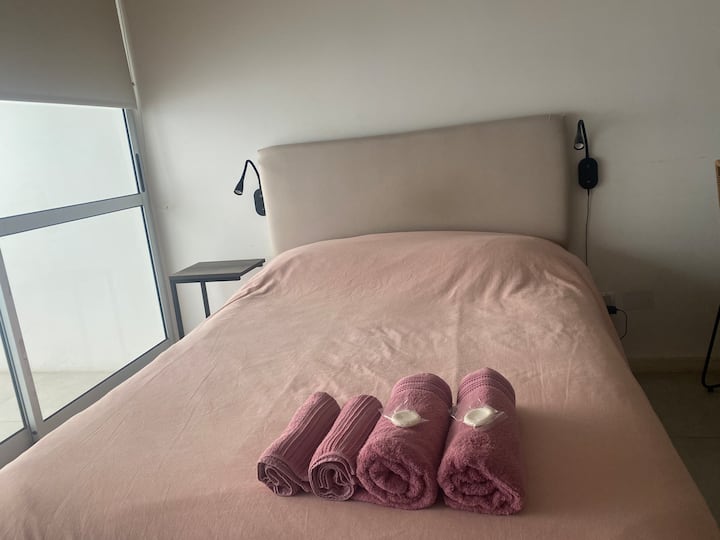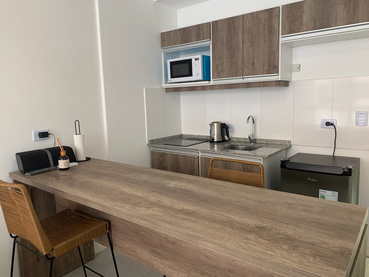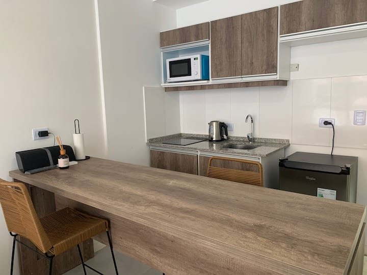 Apartment on the pedestrian street of Bolivar, one block from the Historic Market of San Telmo and two blocks from Plaza Dorrego. It has air conditioning, Wi-Fi, cable TV, a balcony, and a large bathroom with an integrated kitchen. Check-in is at 2:00 pm and check-out at 10:00 am. It is three blocks from Av. 9 de Julio and four blocks from Puerto Madero.