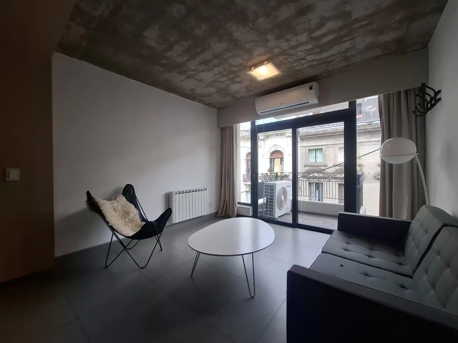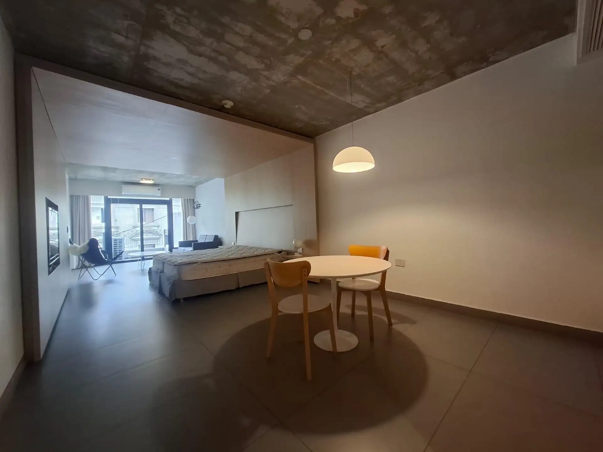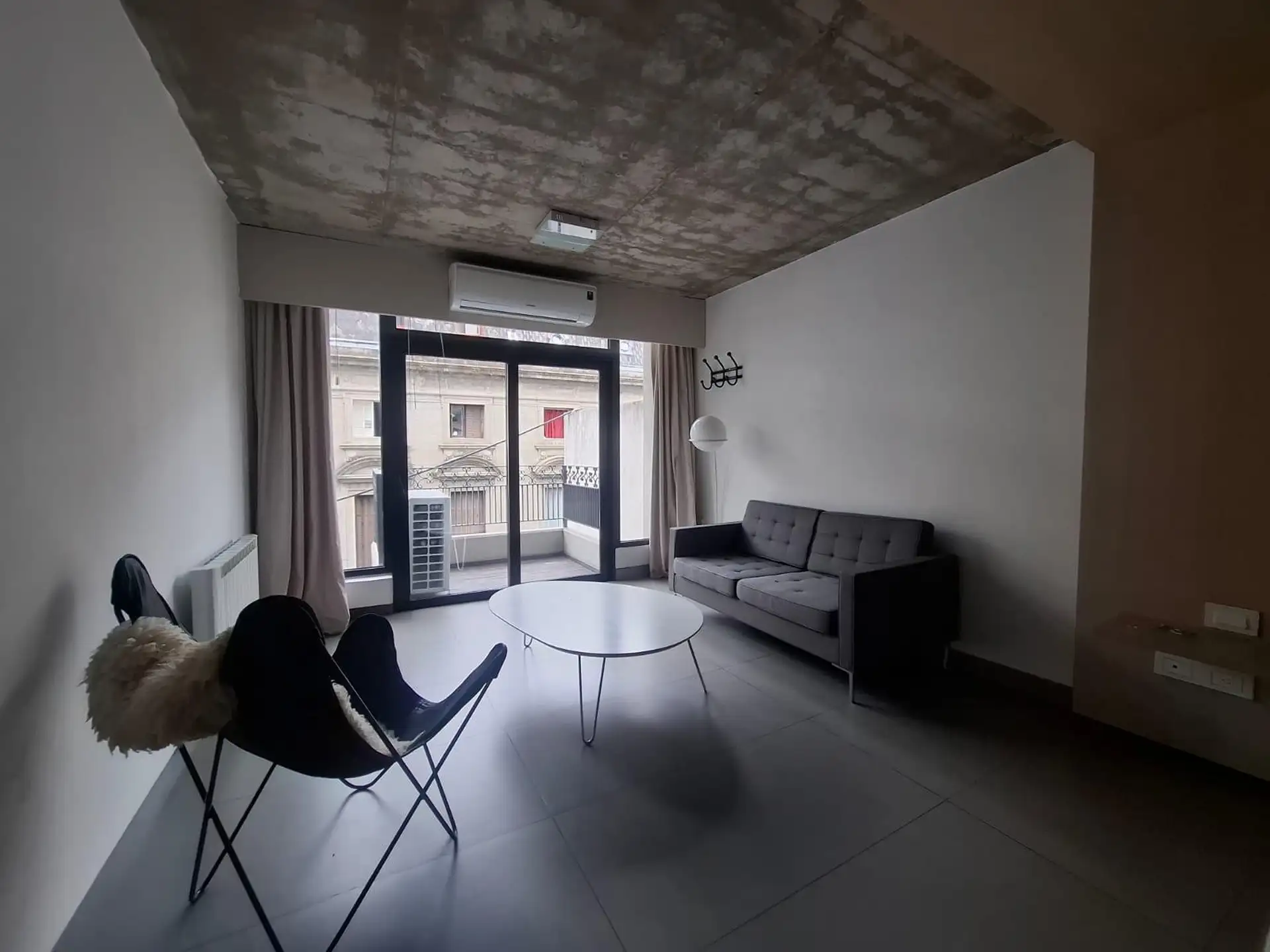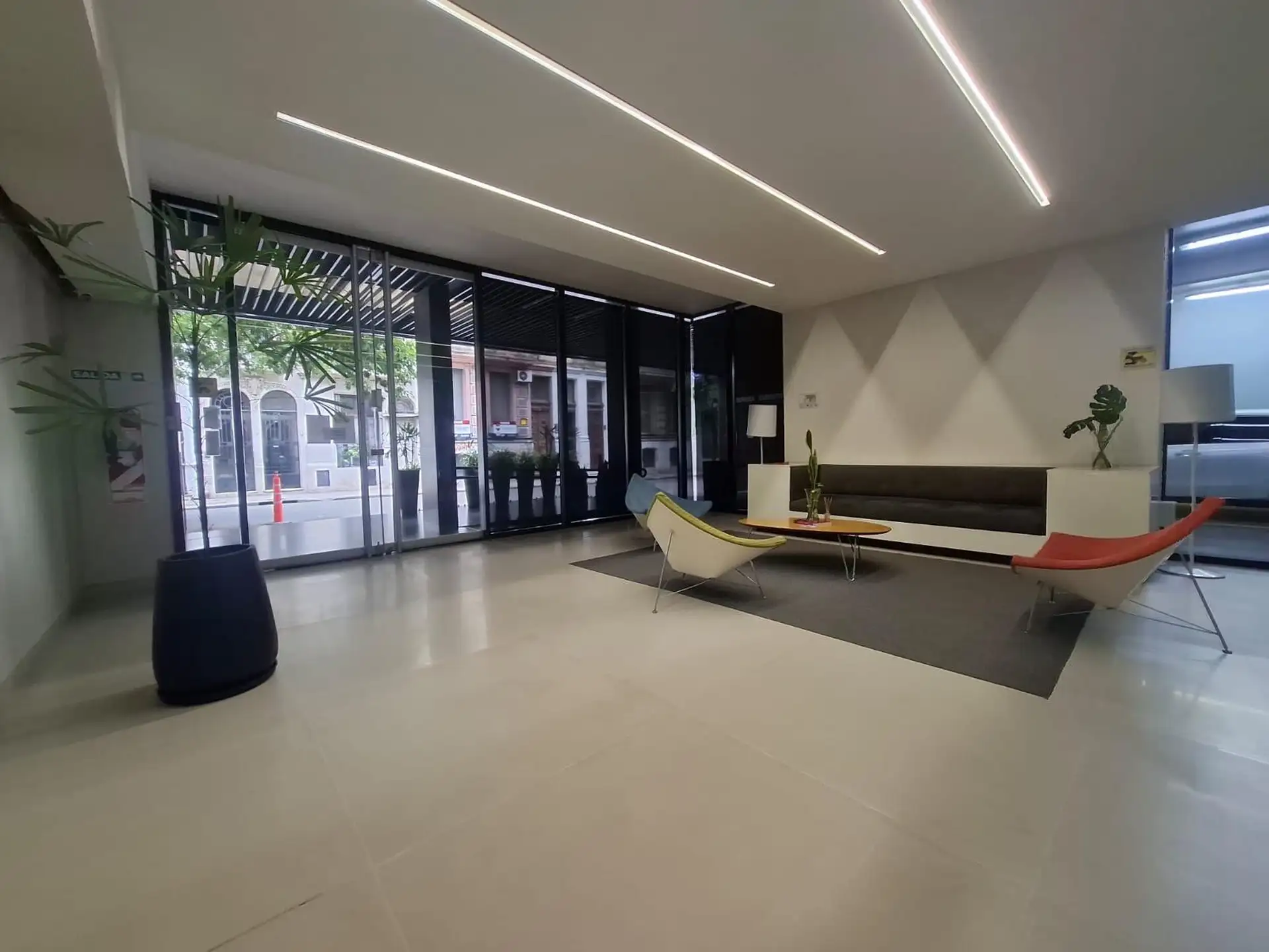 Studio apartment for rent on Calle México and Piedras (San Telmo, Buenos Aires). Located on a high floor with elevator, courtyard-facing (contrafrente) and north-facing orientation. Total area is approximately 48 m², including 44 m² covered; the unit has an equipped kitchen with upper and lower cabinets, a main room with built-in storage and a full bathroom.