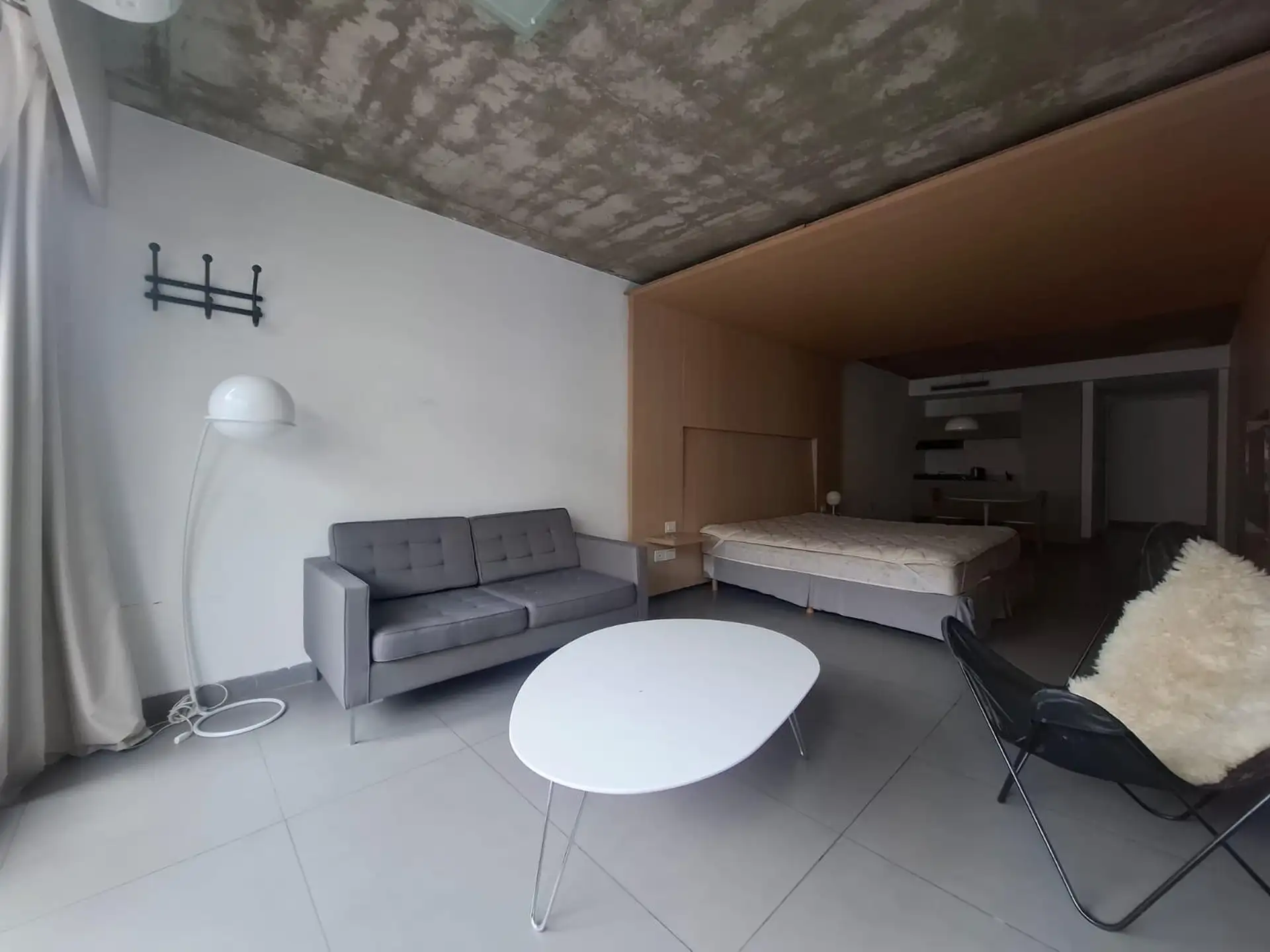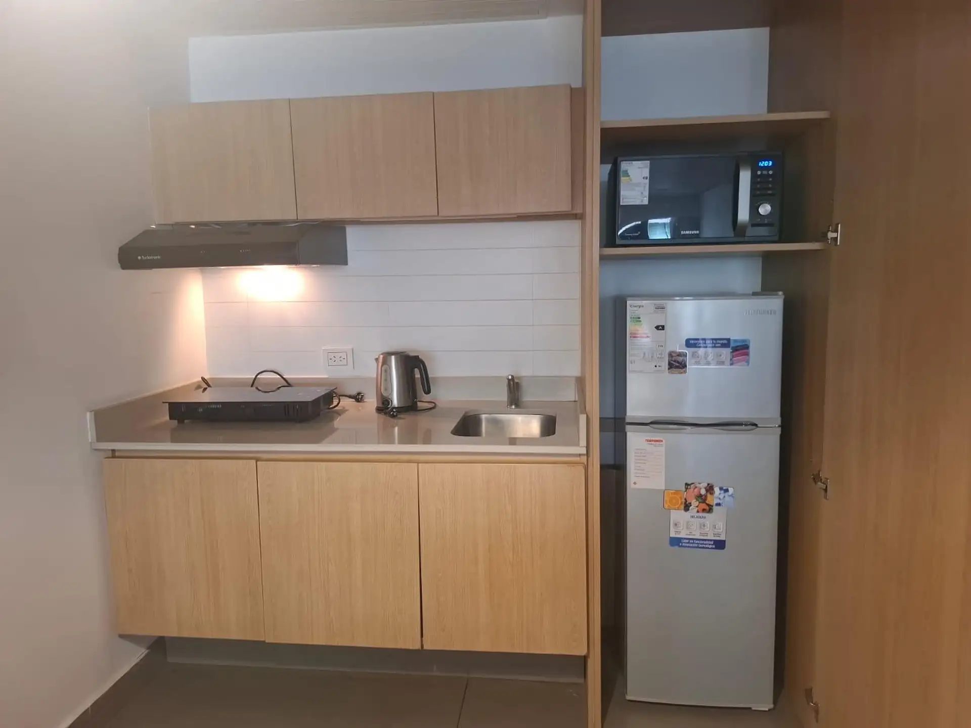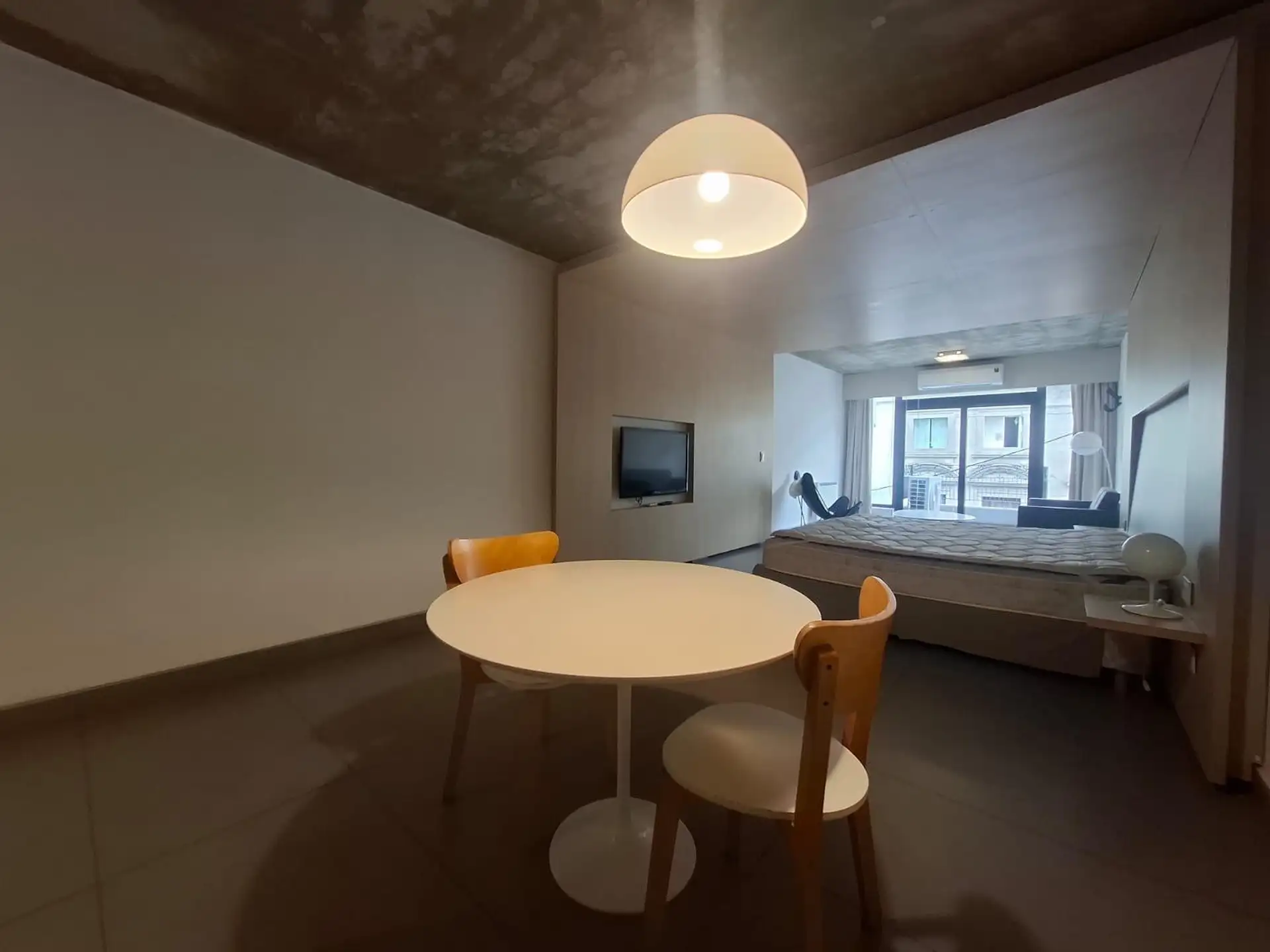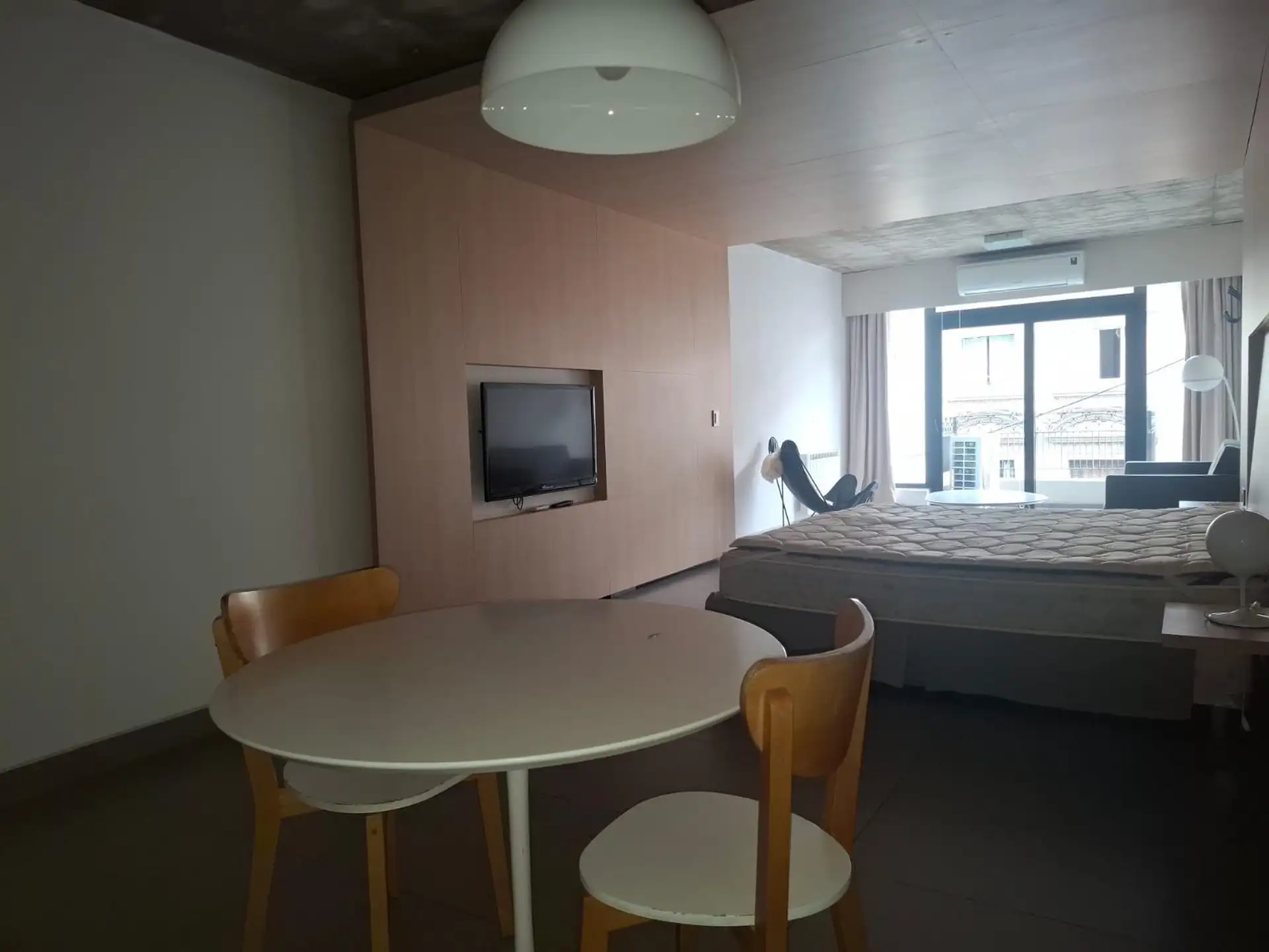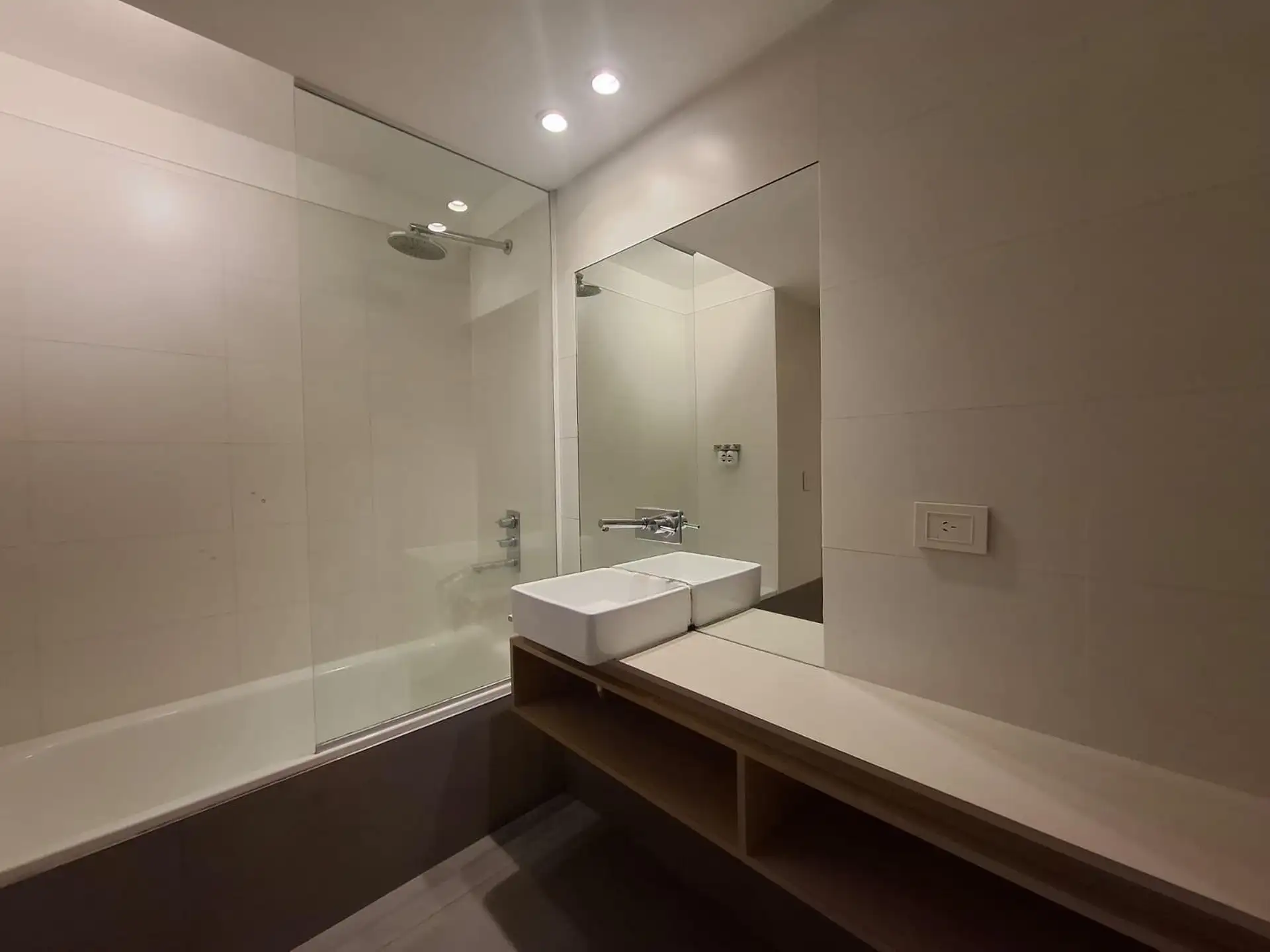 Studio apartment for rent on Calle México and Piedras (San Telmo, Buenos Aires). Located on a high floor with elevator, courtyard-facing (contrafrente) and north-facing orientation. Total area is approximately 48 m², including 44 m² covered; the unit has an equipped kitchen with upper and lower cabinets, a main room with built-in storage and a full bathroom.