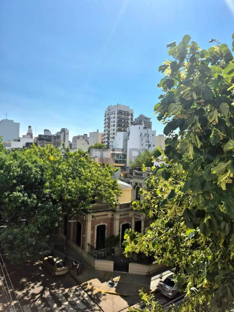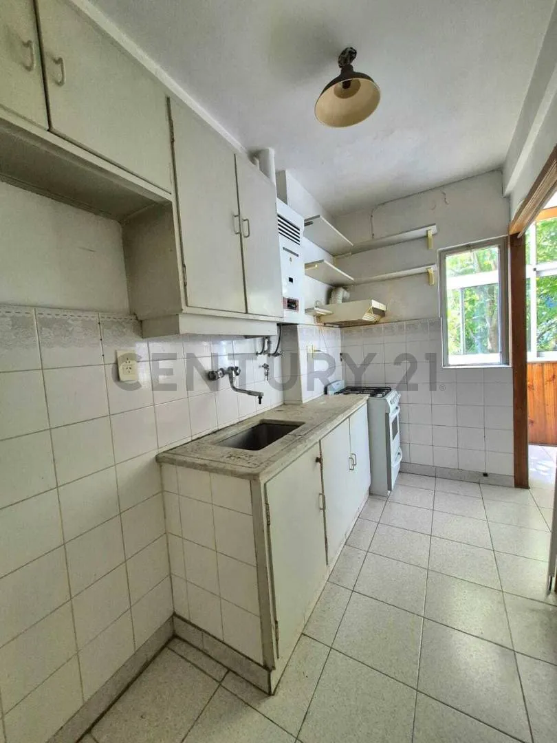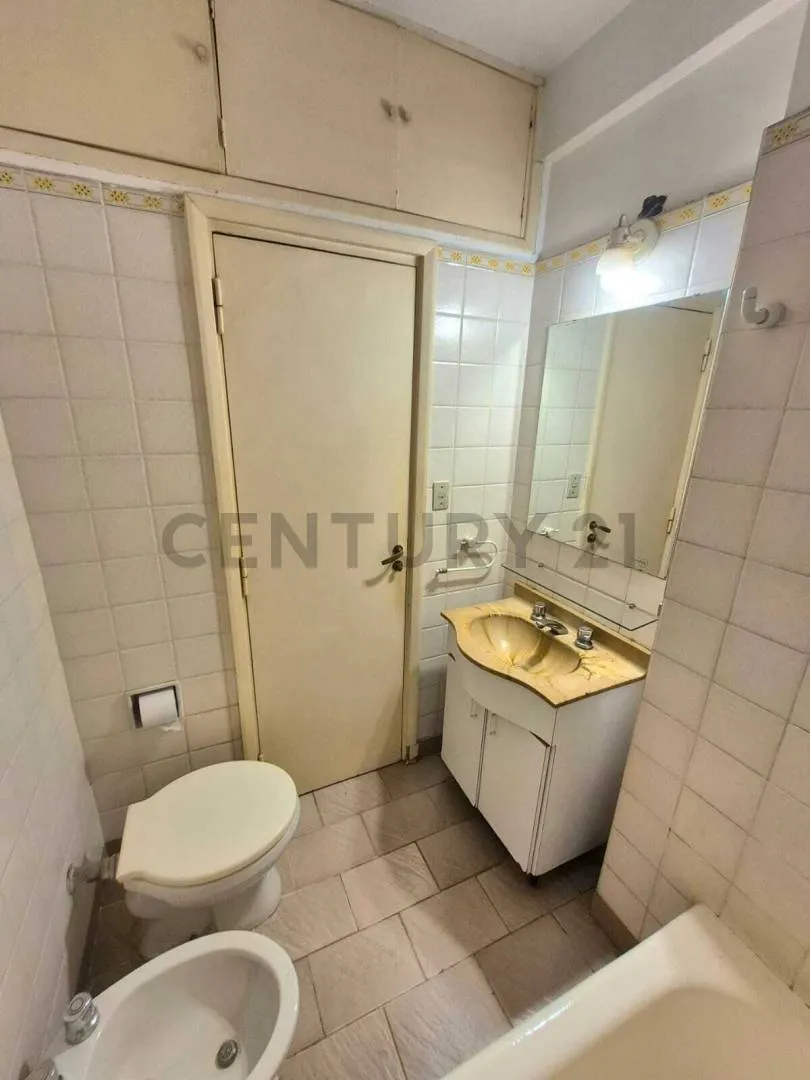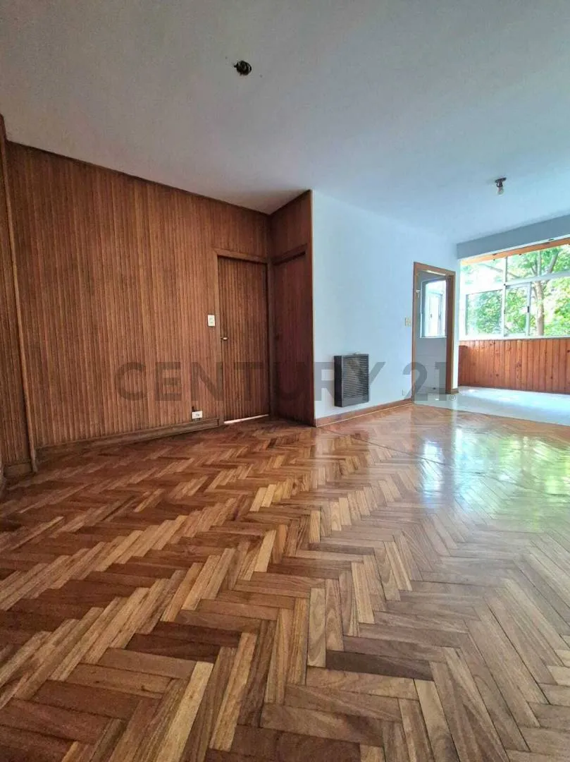Three-room apartment for rent in Núñez, with 2 bedrooms, on the 3rd floor accessed by stairs. It has a living-dining room with split air conditioning and access to a covered balcony with large windows, plus a separate kitchen with natural ventilation. The two bedrooms have built-in wardrobes and good ventilation; the main bedroom has split air conditioning. There is a full bathroom with a bathtub and a communal rooftop terrace. The listing is located at Juana Azurduy 2070.