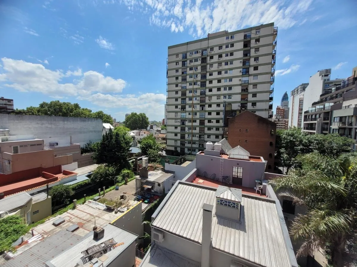 Three-room apartment in Núñez, 2 bedrooms, semipiso with open views. Refurbished and equipped, with a living-dining room that has hot-and-cold air conditioning and access to a front balcony. Independent kitchen with a refrigerator with freezer, microwave and washing machine, plus a refurbished full bathroom with a bathtub and an included laundry area. Building has 2 units per floor. Furnished rental available for a minimum 3 months at USD 1,100 per package, including building fees, internet, wat