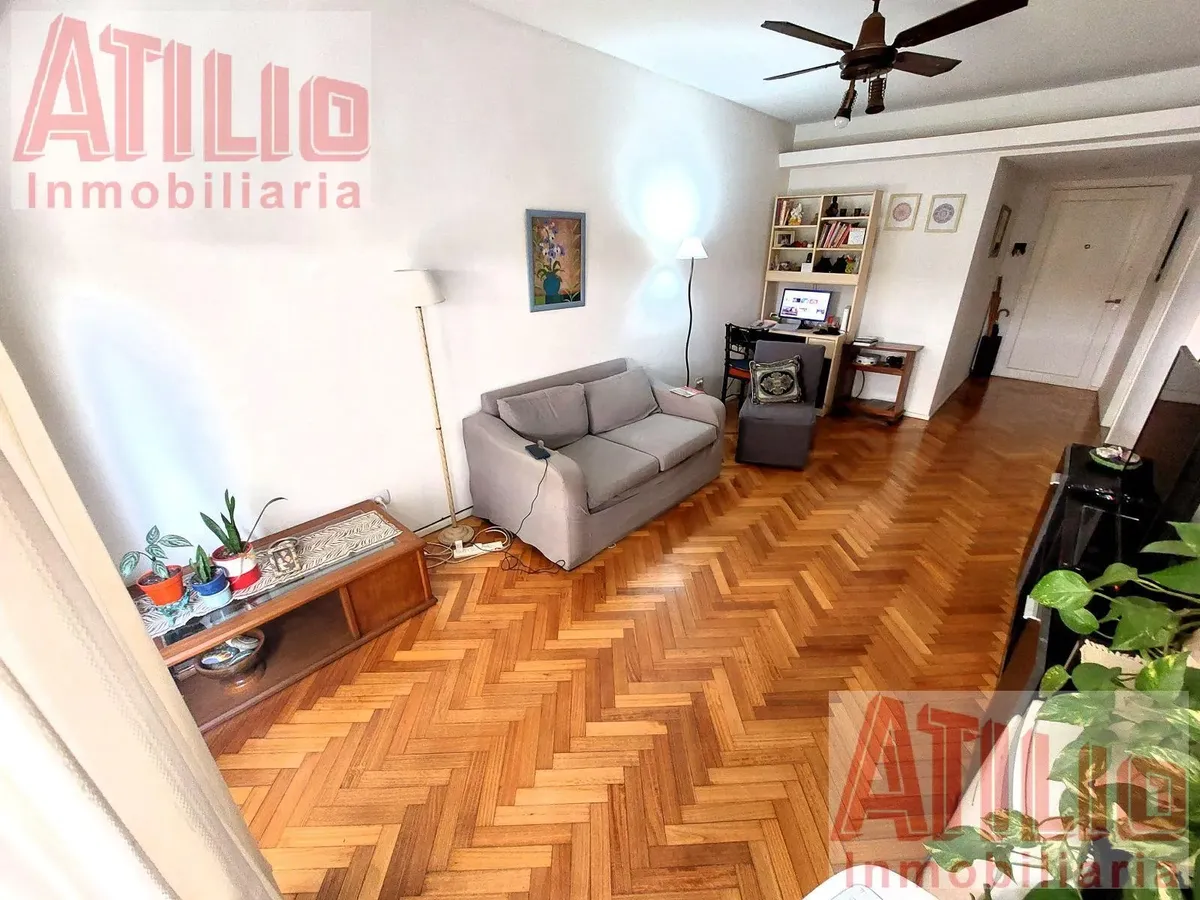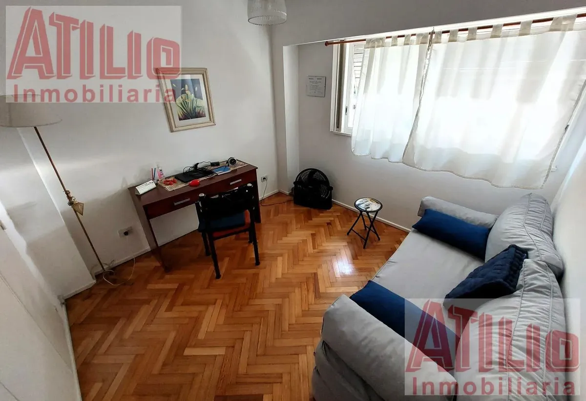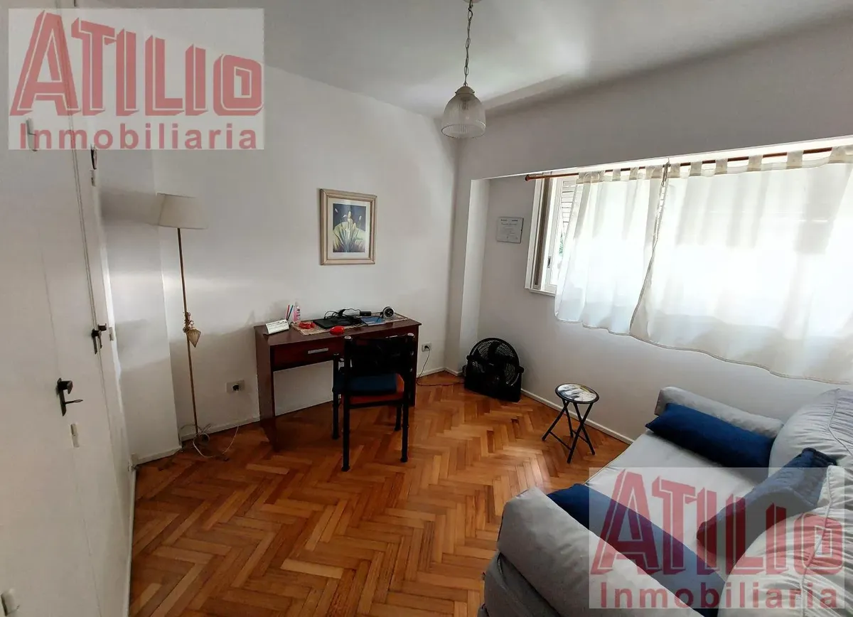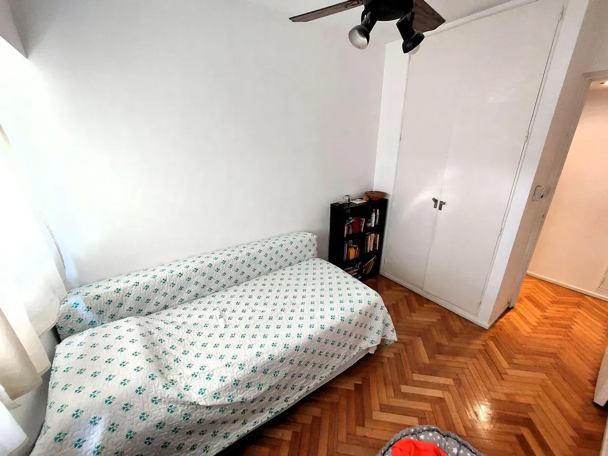 Three-room apartment with 2 bedrooms, parquet floors in the living-dining area and bedrooms, and fitted wardrobes. Full bathroom, additional storage in the distribution hall, and a well-equipped kitchen with a daily dining area. Individual heating and a courtyard-facing (contrafrente) layout, in a tower building with ramp access and 24-hour security; the complex is built on a double lot with entry from Av. Cabildo (Metrobus). Building fees, pets and rental-guarantee conditions: rental guarantee