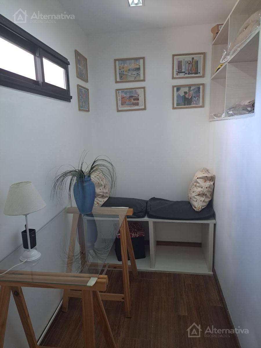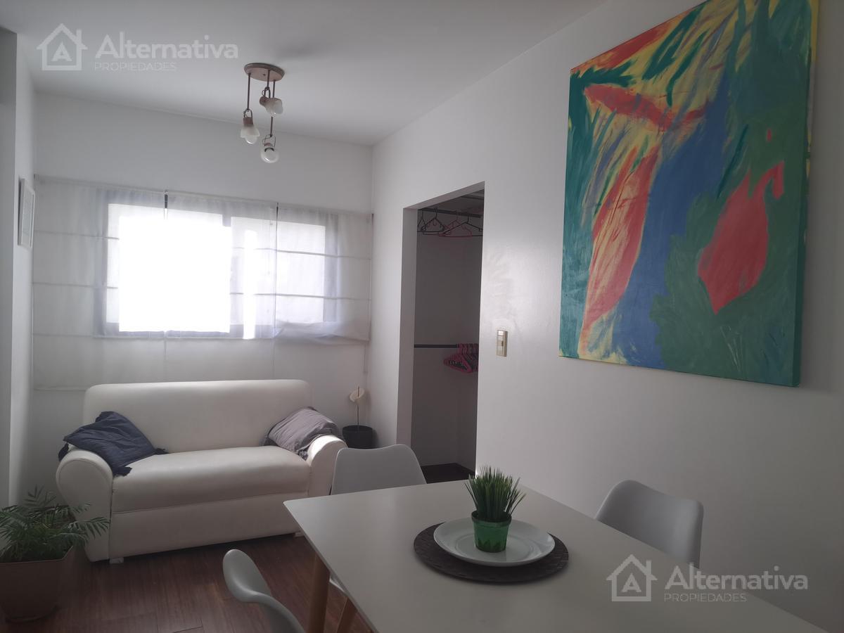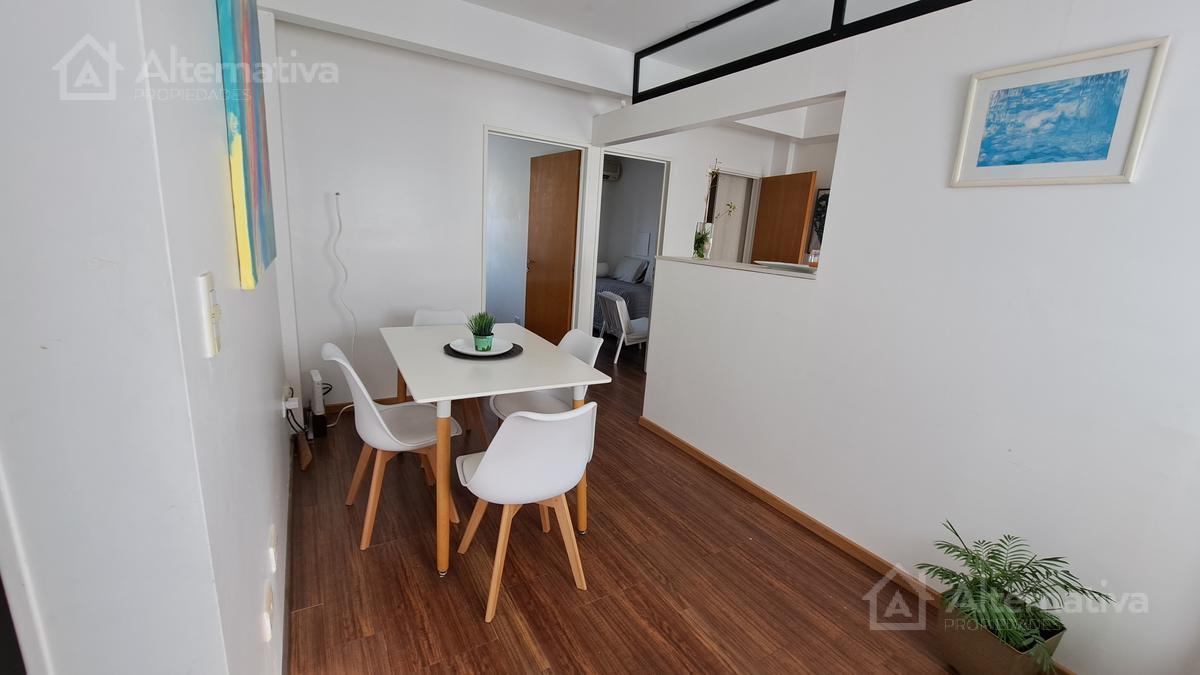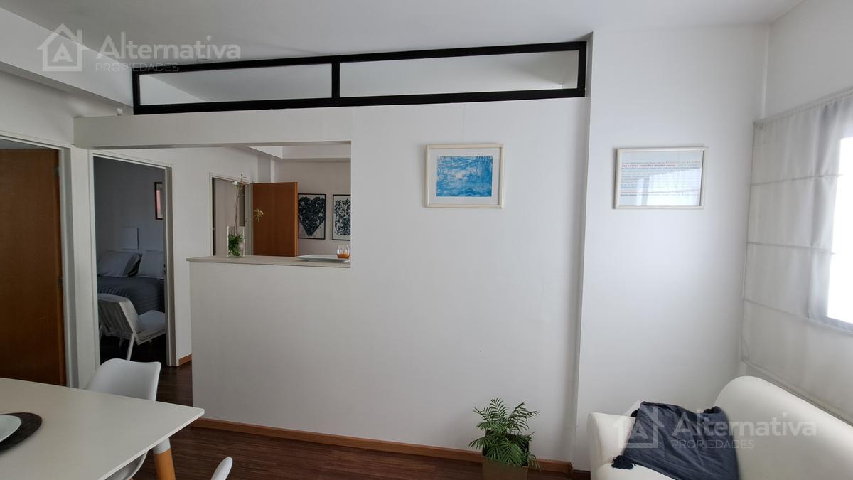 Three-room apartment with 48 m² covered area and a 1 x 1 m balcony in Núñez. Two bedrooms, with double-glazed windows (DVH) facing an interior block courtyard, plus a desk area and a walk-in closet. Furnished with sommier beds and equipped with gas stove, electric hot-water tank, microwave, washer, coffee maker and toaster; full bathroom with shower cabin and Scottish shower column with three hydromassage jets, and hot/cold air conditioning in the second bedroom. Building amenities include parki