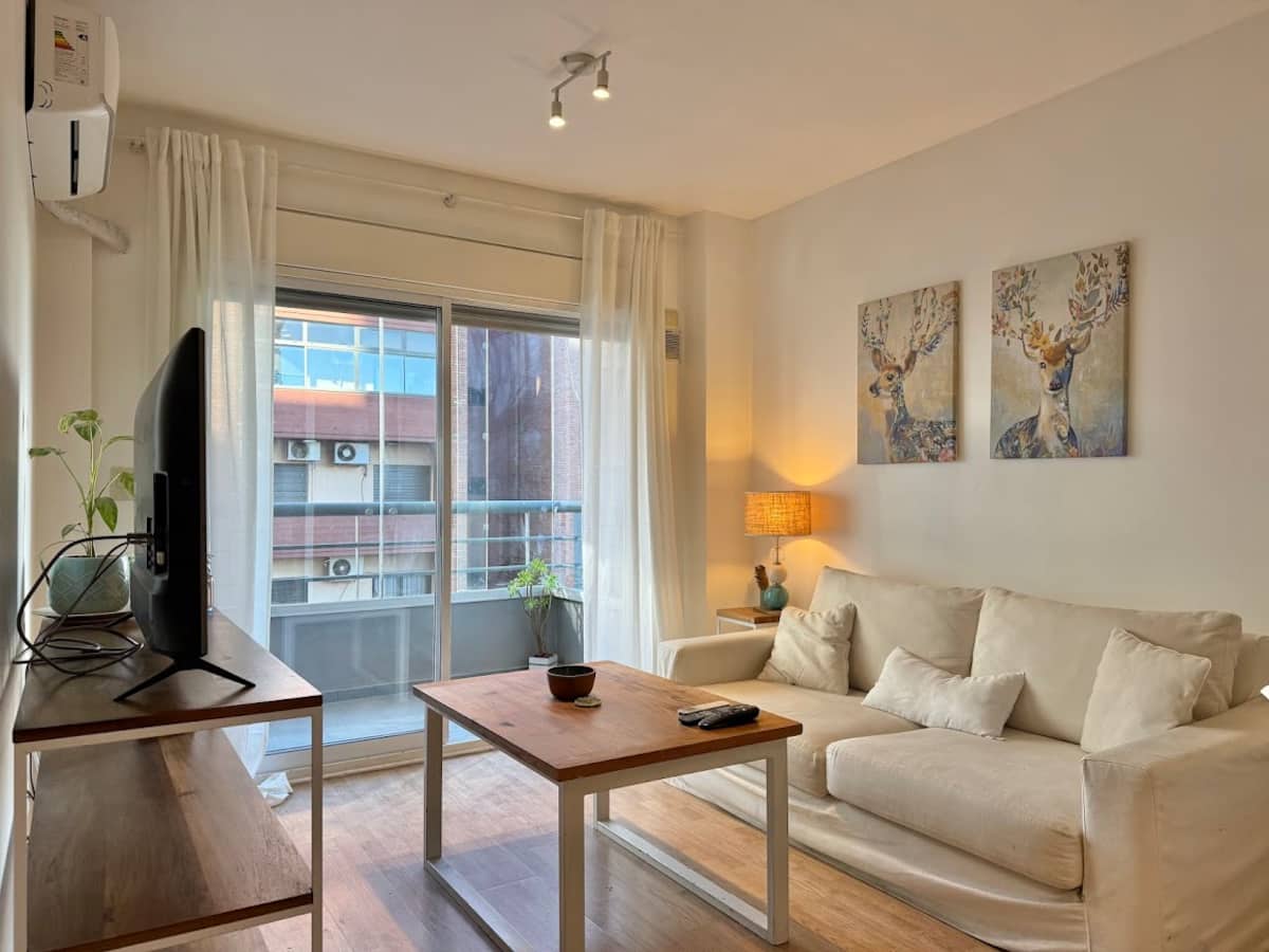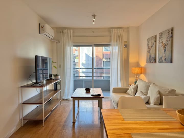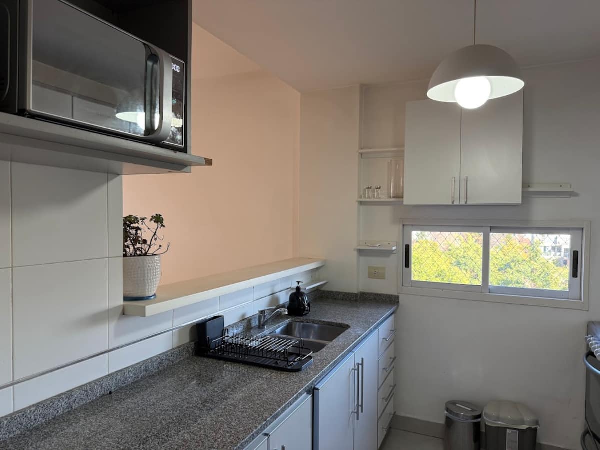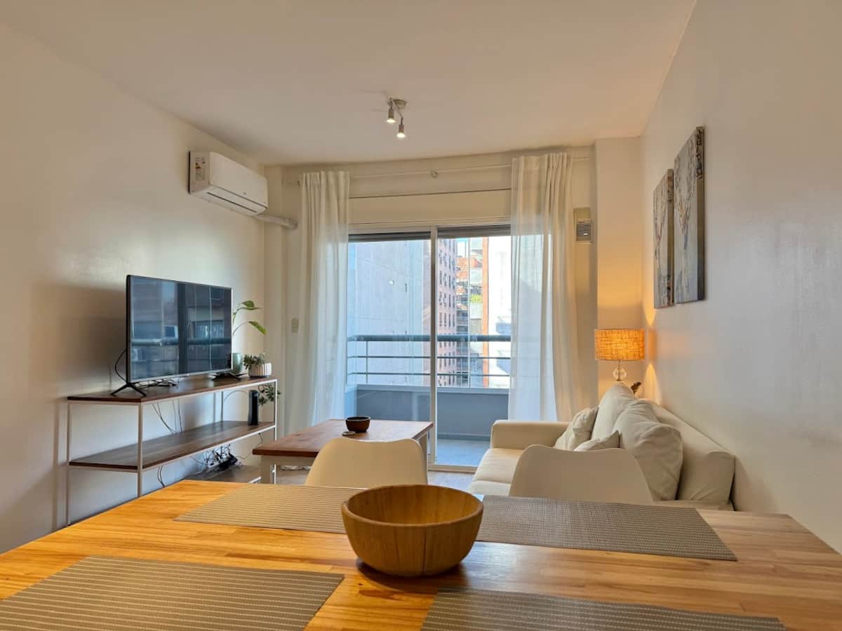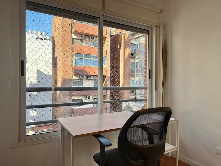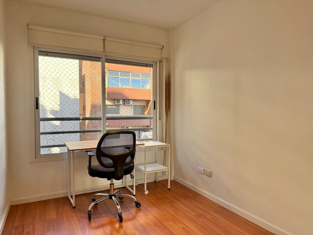 Three-room apartment in Núñez with a balcony. Suited for remote work, with a studio layout.