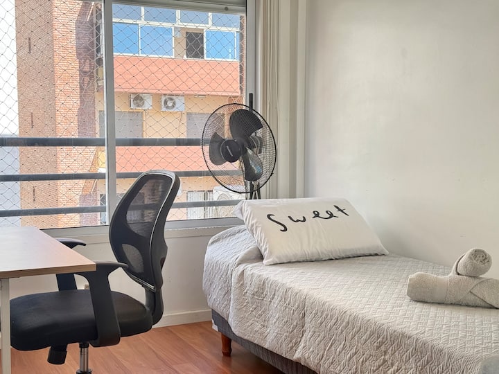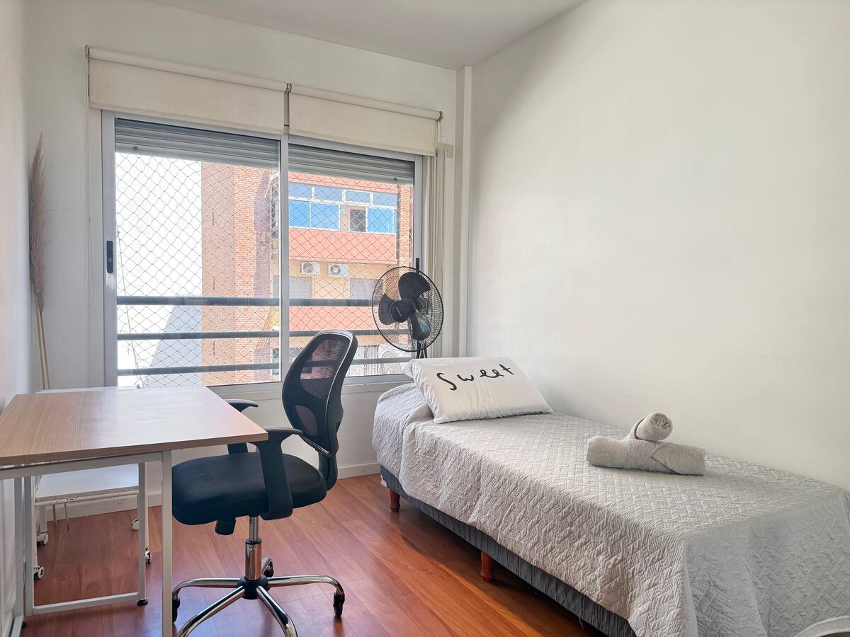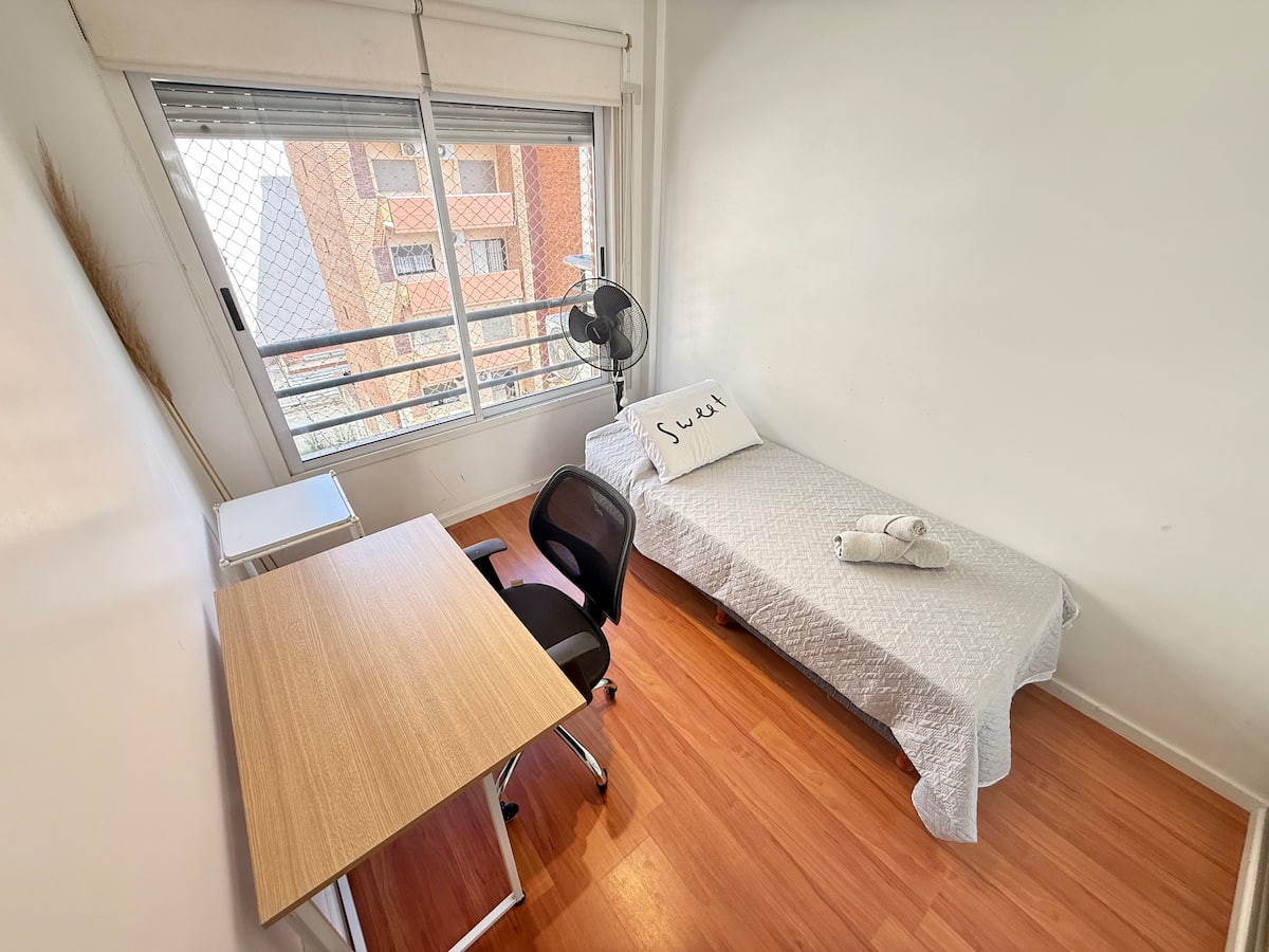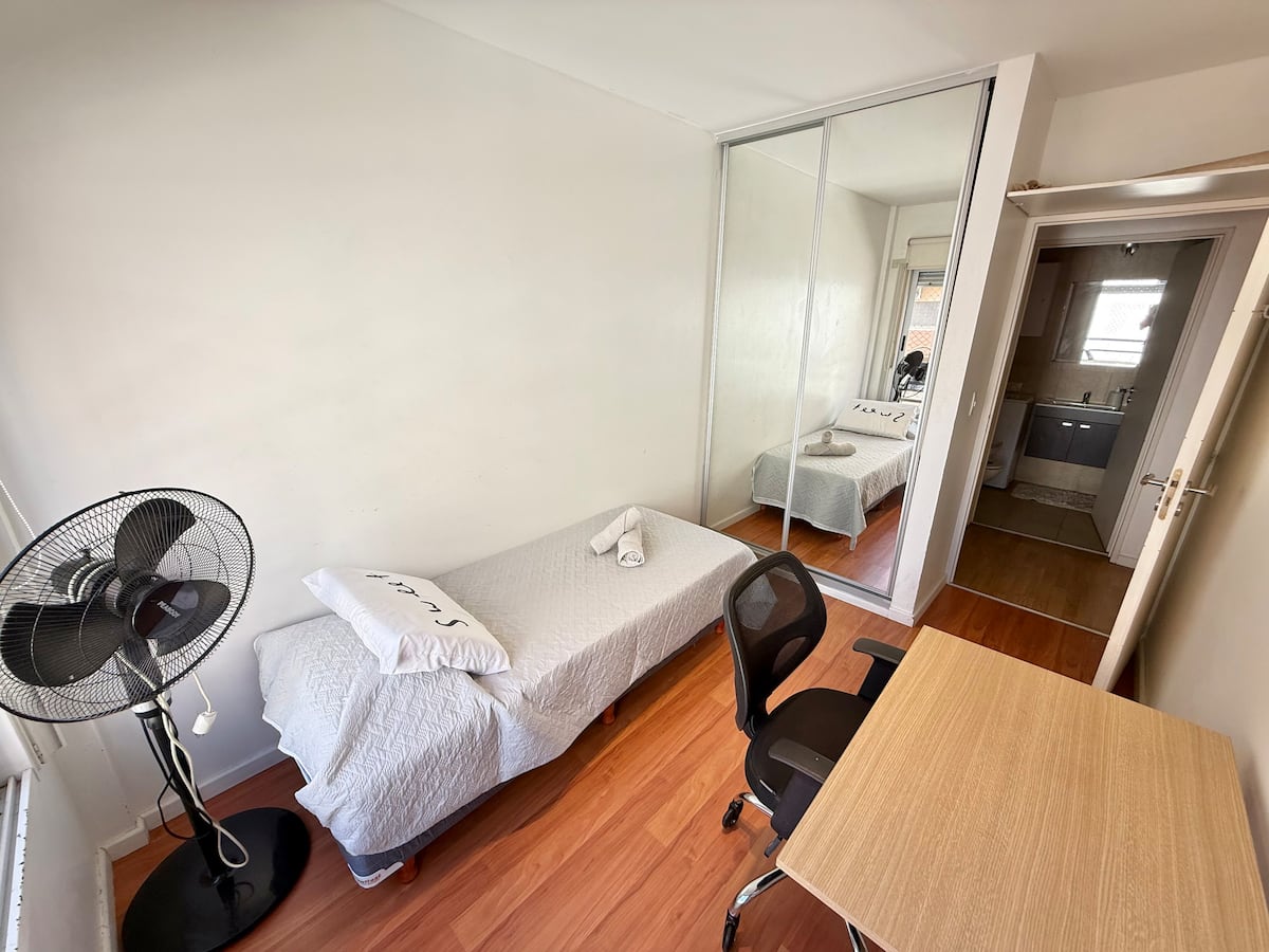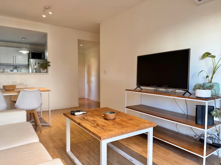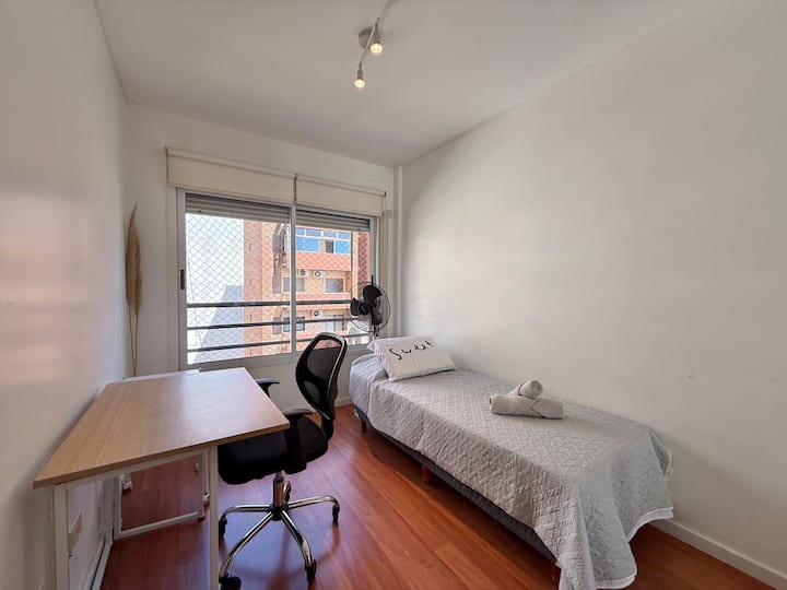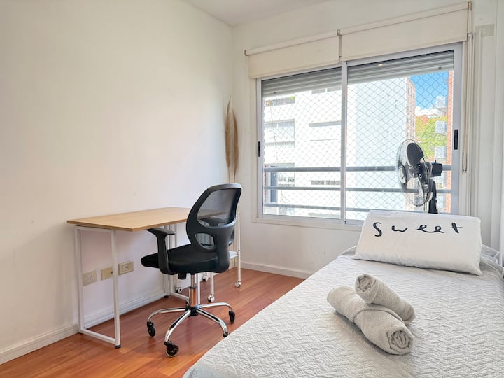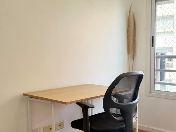 Three-room apartment in Núñez with a balcony. Suited for remote work, with a studio layout.