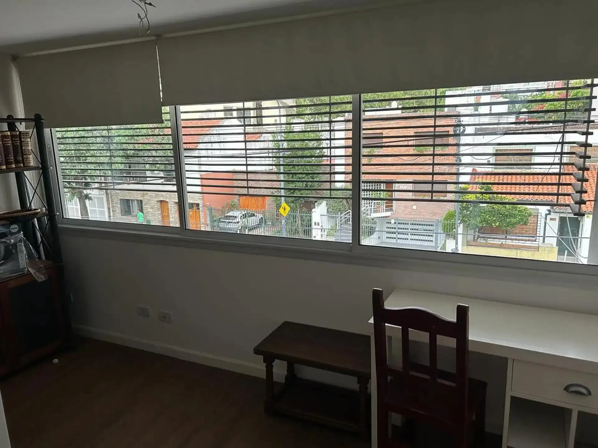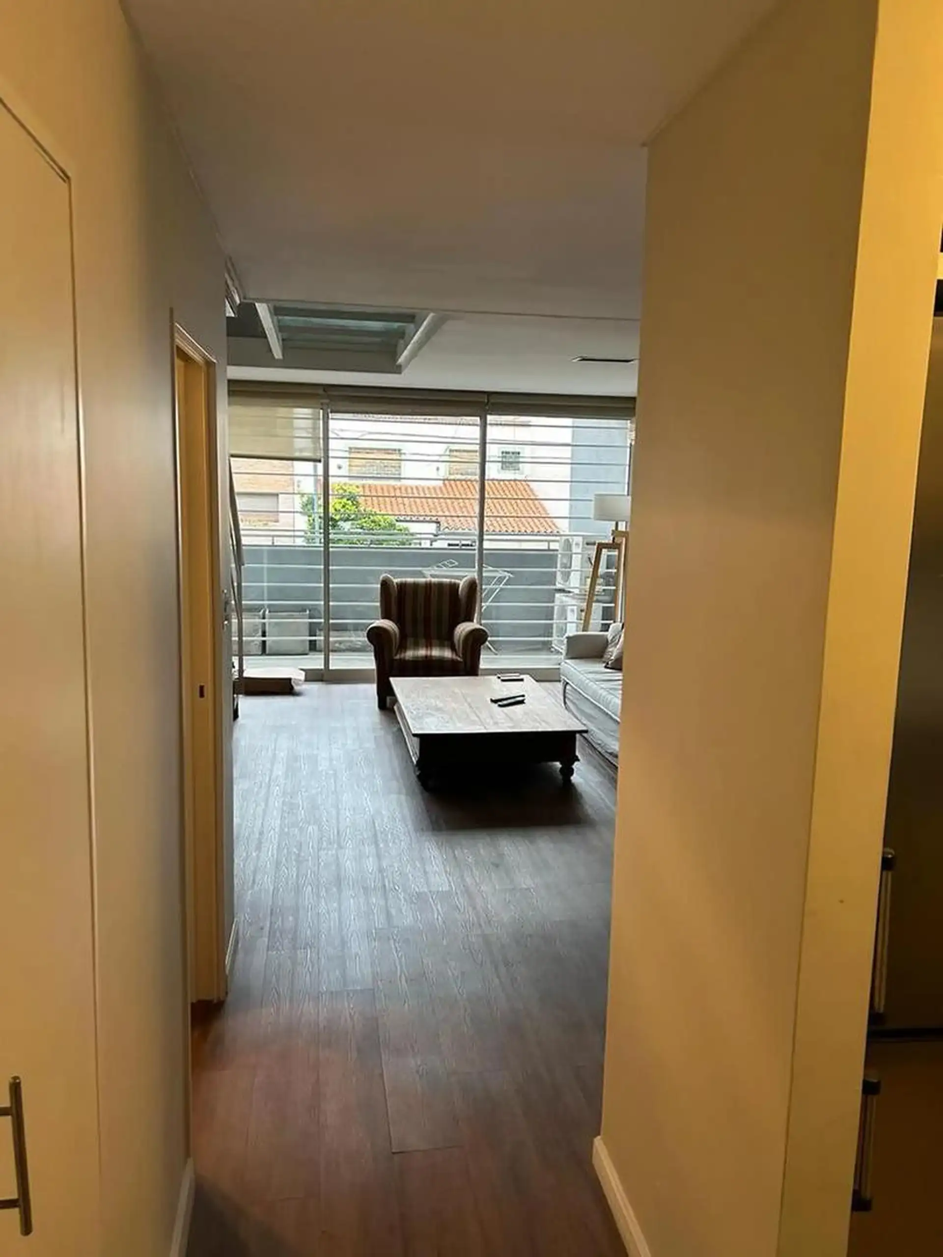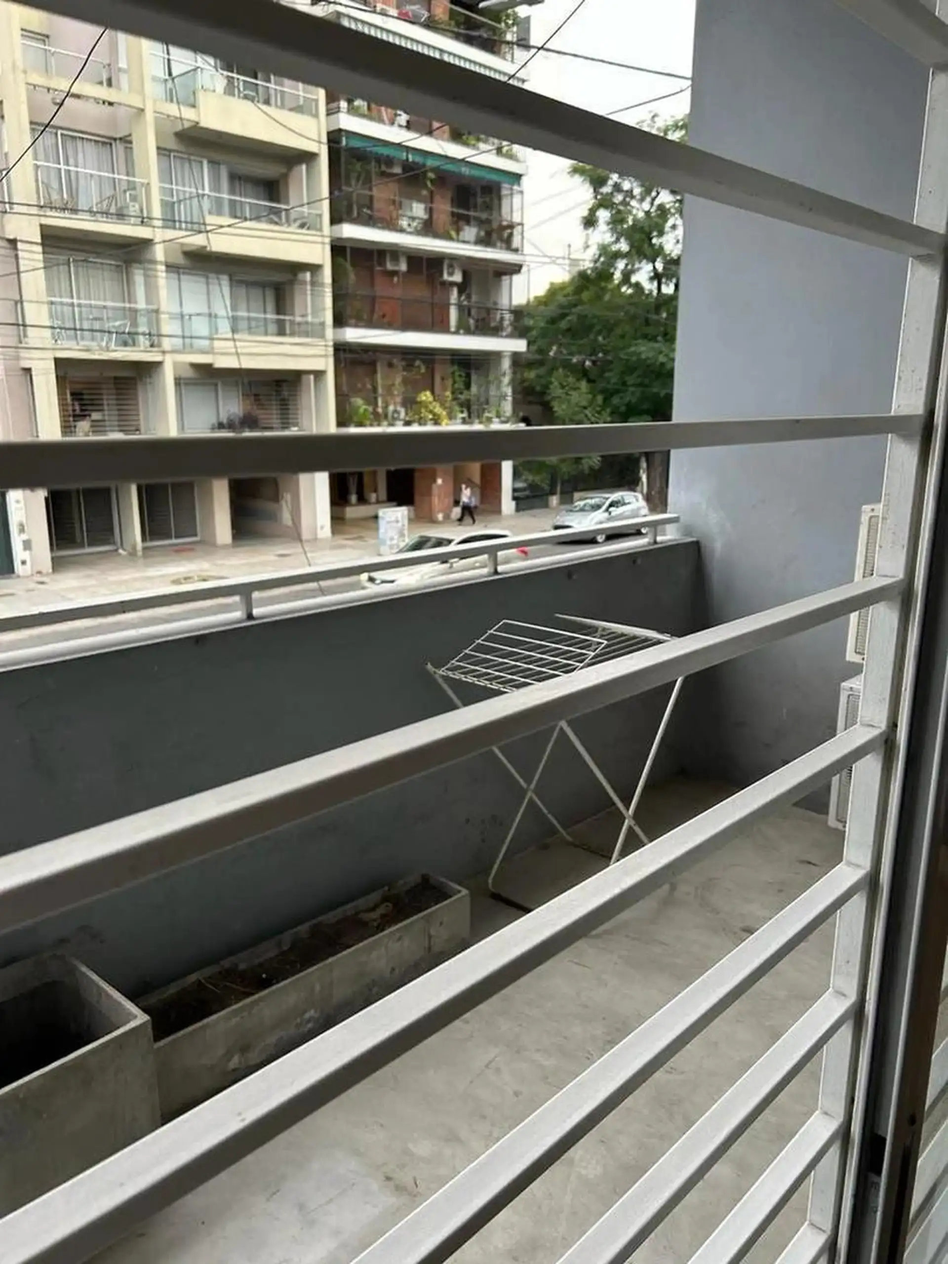 Duplex-style, street-facing apartment in Núñez with 3 rooms and 2 bedrooms, available for short-term rental. Fully furnished and equipped, with a living-dining area and a balcony. Separate kitchen with microwave, fridge with freezer and washing machine; full bathroom with bathtub plus a reception toilet. Includes 2 air-conditioning units, an individual boiler for hot water and radiator heating, and a TV. The rental includes a fixed parking space and a storage room (baulera), plus a pool with sol