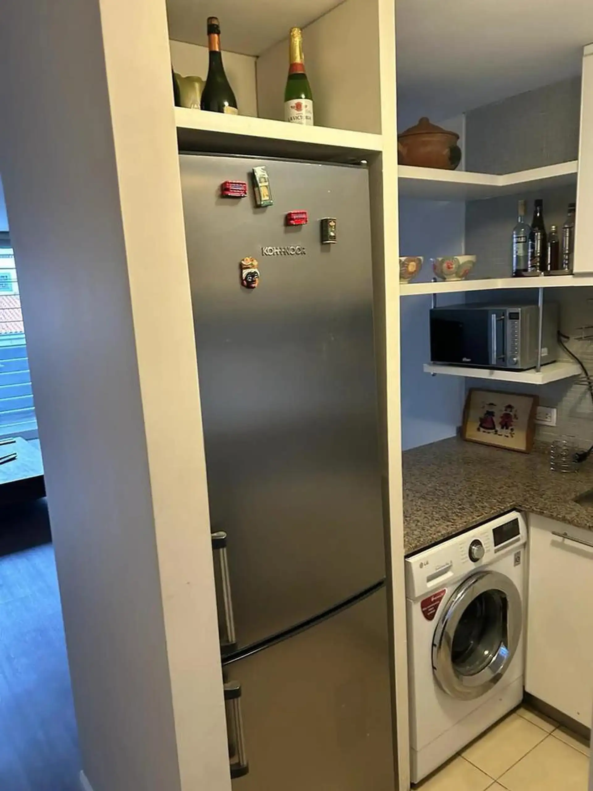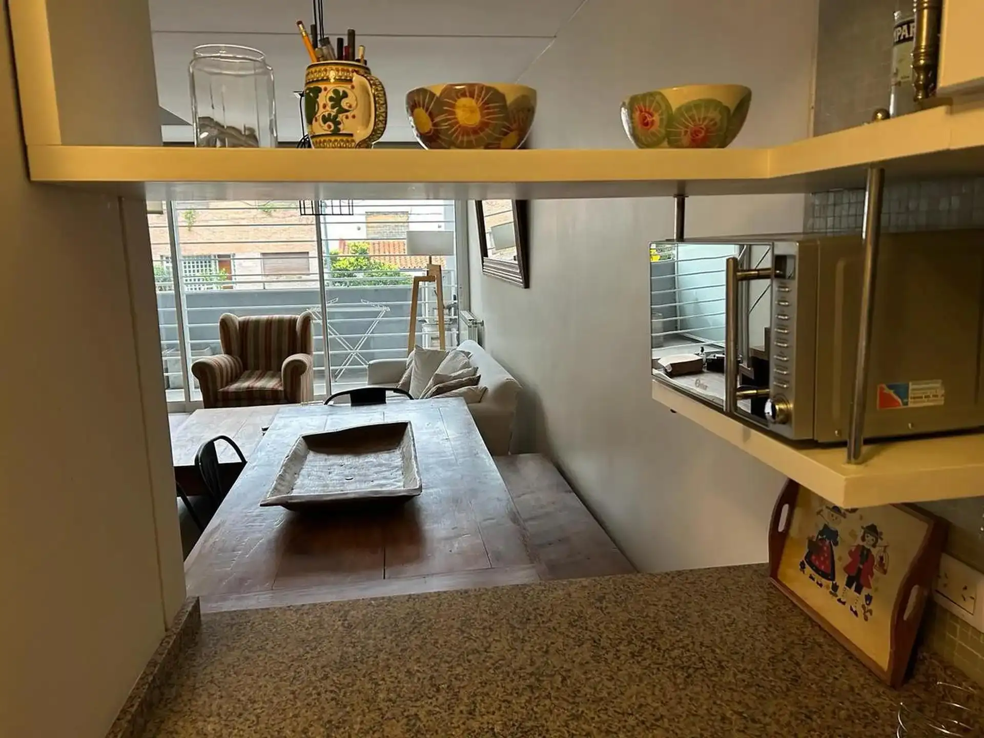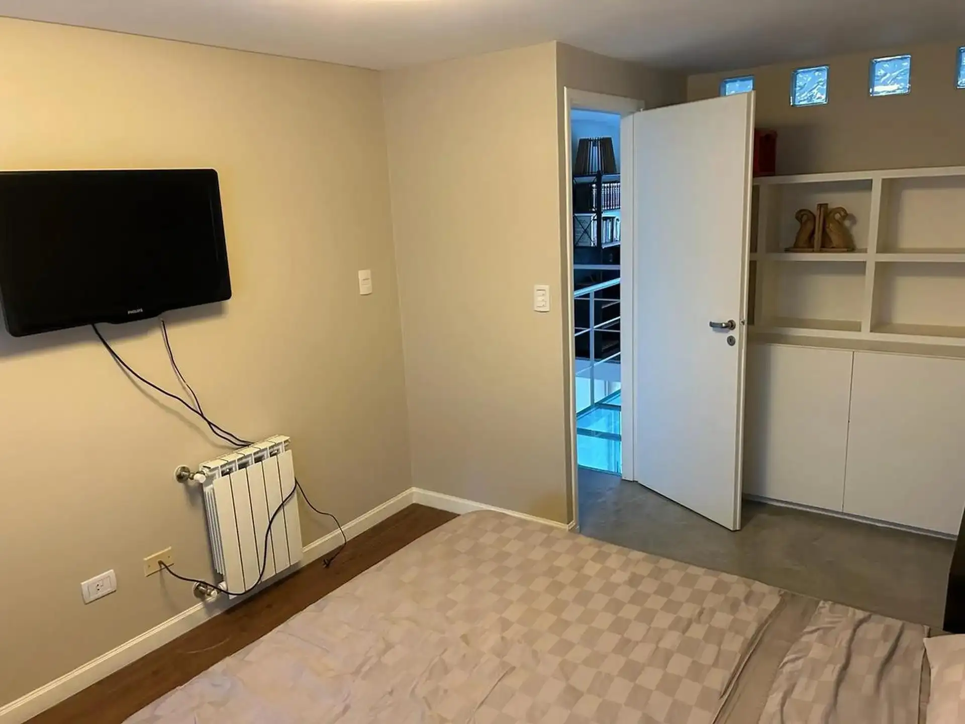 Duplex-style, street-facing apartment in Núñez with 3 rooms and 2 bedrooms, available for short-term rental. Fully furnished and equipped, with a living-dining area and a balcony. Separate kitchen with microwave, fridge with freezer and washing machine; full bathroom with bathtub plus a reception toilet. Includes 2 air-conditioning units, an individual boiler for hot water and radiator heating, and a TV. The rental includes a fixed parking space and a storage room (baulera), plus a pool with sol