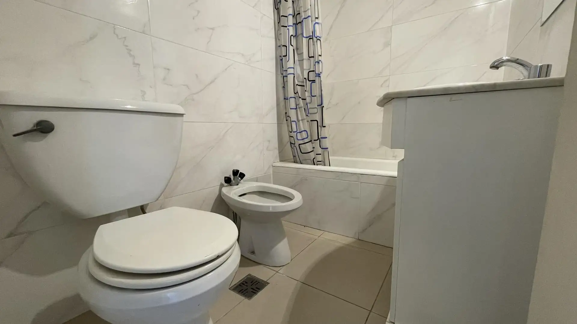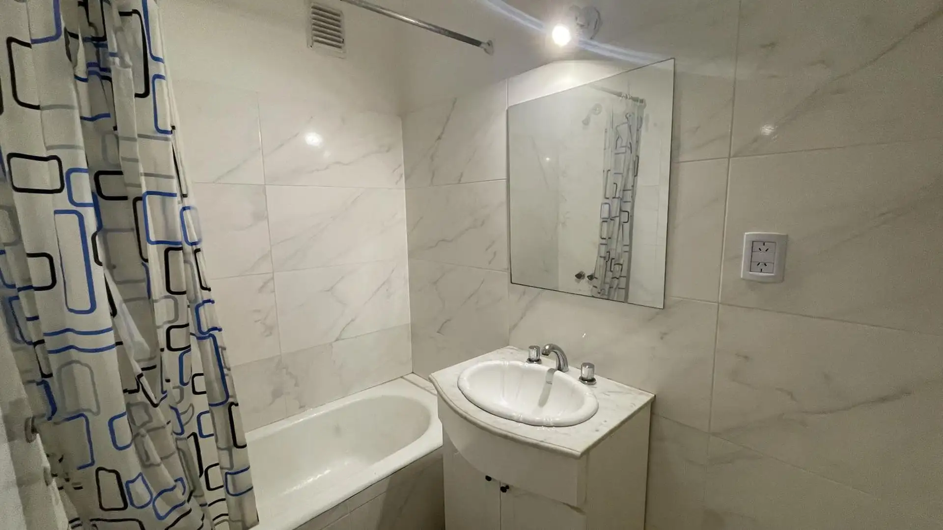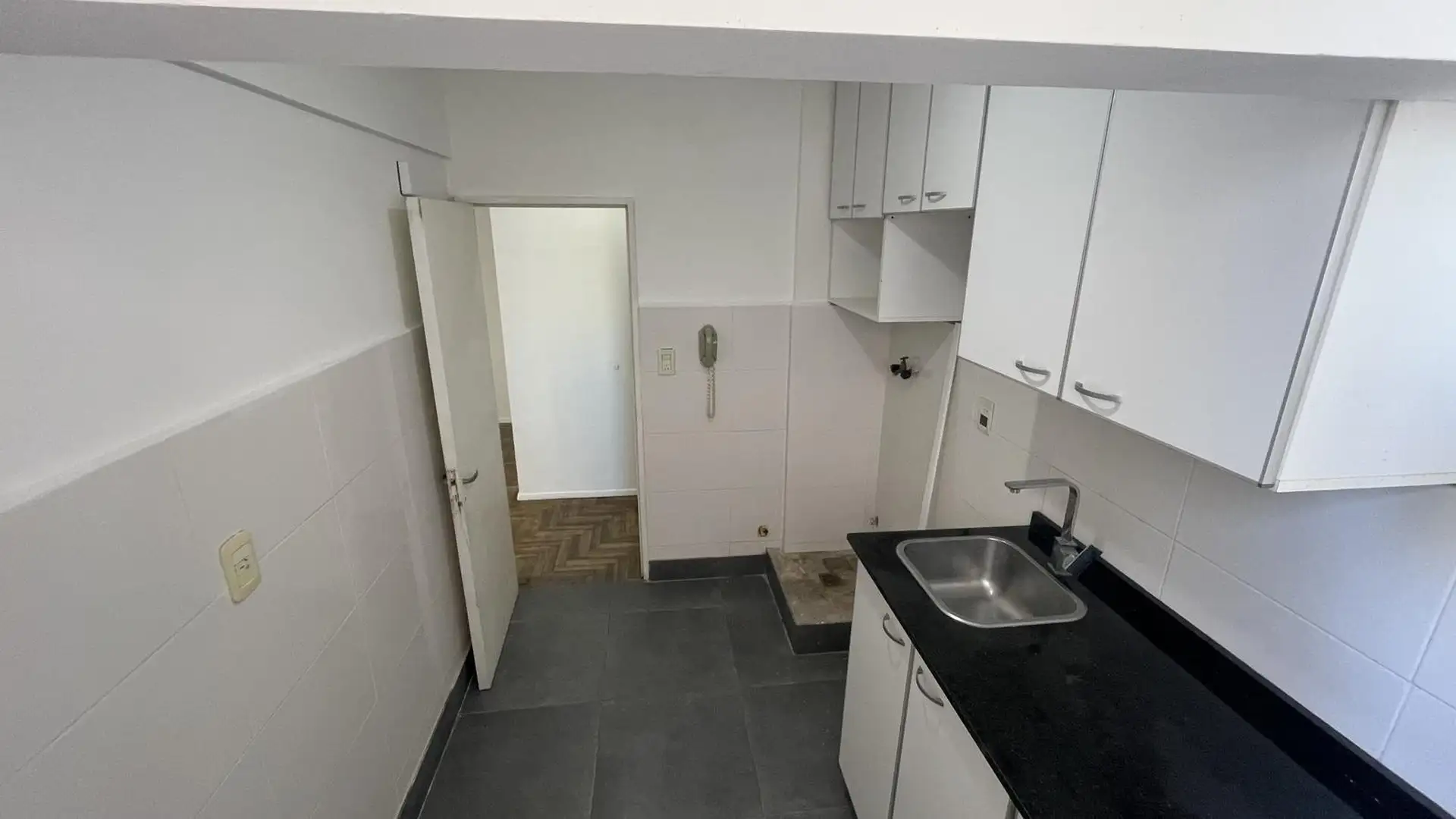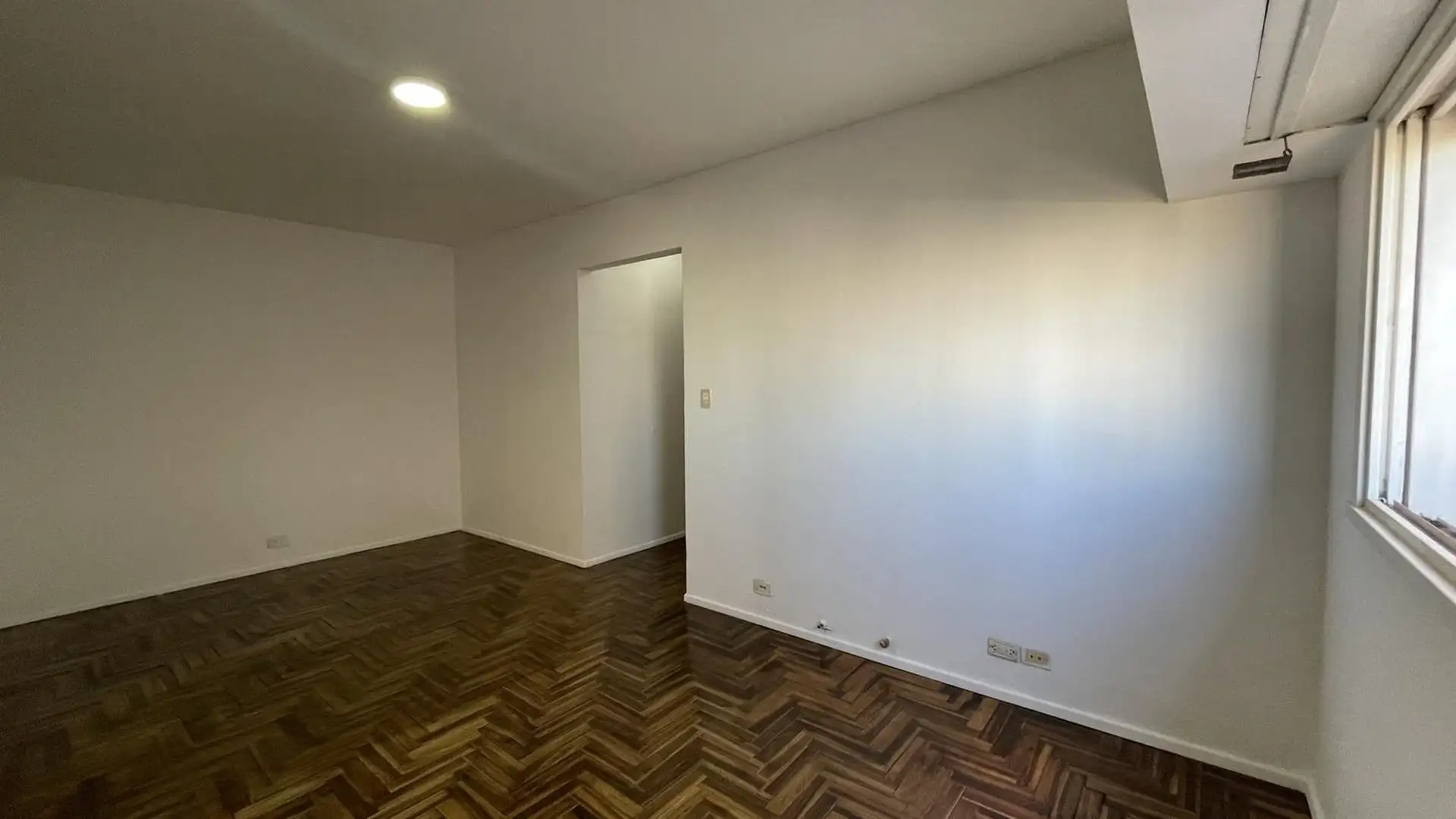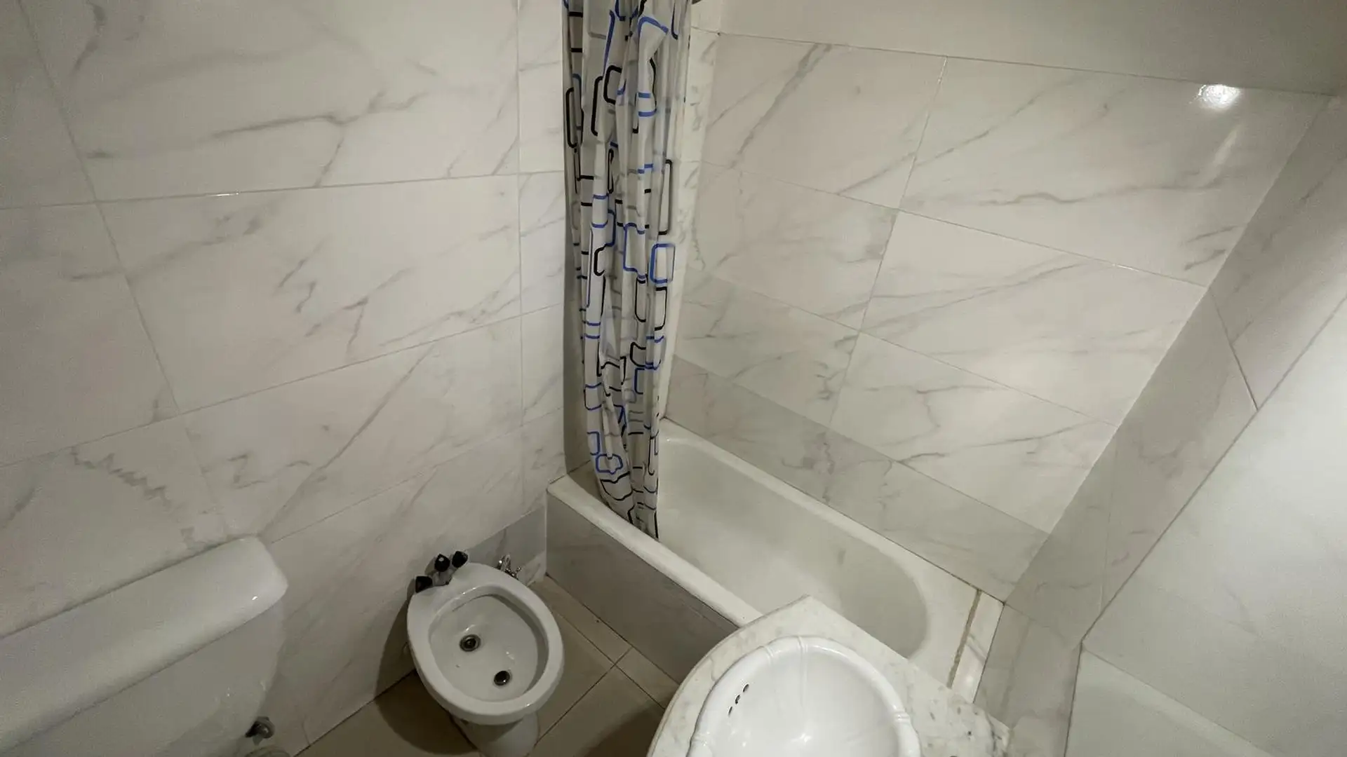 High-floor apartment in Núñez with 2 bedrooms and 3 rooms. The layout includes an entrance hall leading to a living-dining area and an independent kitchen. The kitchen is gas-powered and has a newly installed hot-water system, with space for a breakfast nook or small daily dining area; there is also space and plumbing for a washing machine and room to set up a ceiling drying rack. Living-dining room has recently refinished parquet floors, and there is a full bathroom with a vanity and bathtub. T