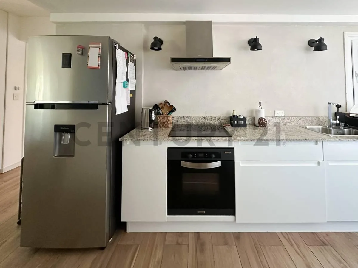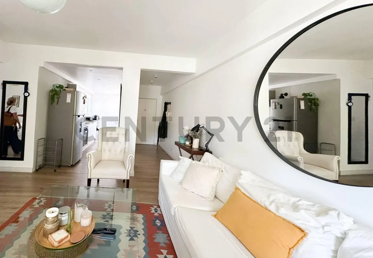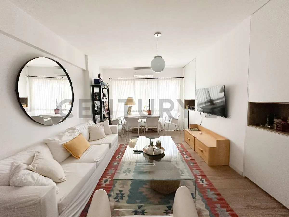 Newly refurbished three-room apartment in Olivos, completed in 2020. It has a 65 m² layout with a front-facing living-dining room with a window, a separate kitchen (Johnson brand) and a laundry area with a sink. The main bedroom and the second bedroom face the front. There is a bathroom with a shower enclosure and bidet, double-glazed windows, and heating/cooling via split-system air conditioning in all rooms. No air-conditioning units, appliances, or lighting fixtures are included in the listed
