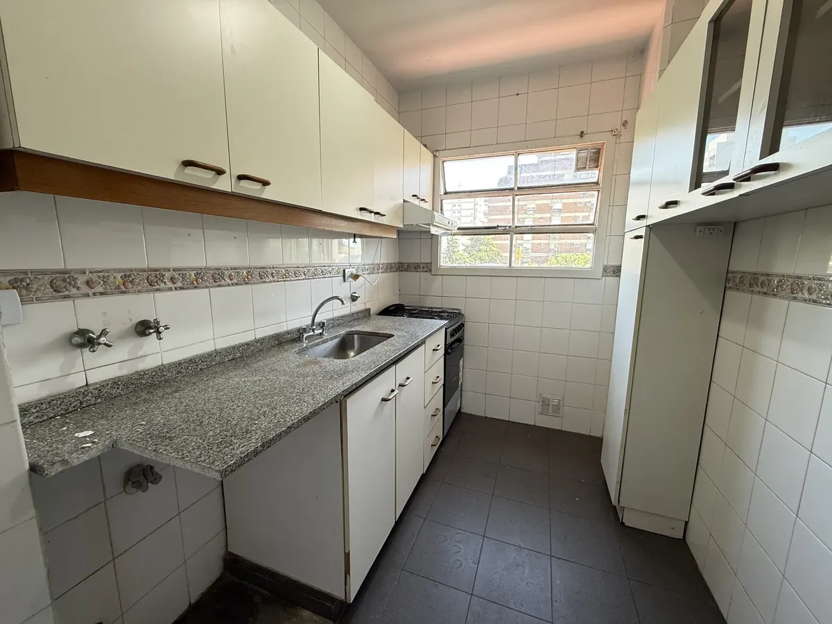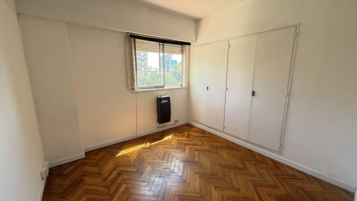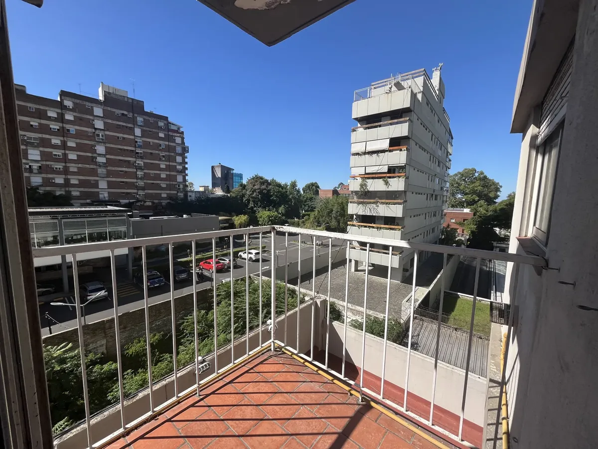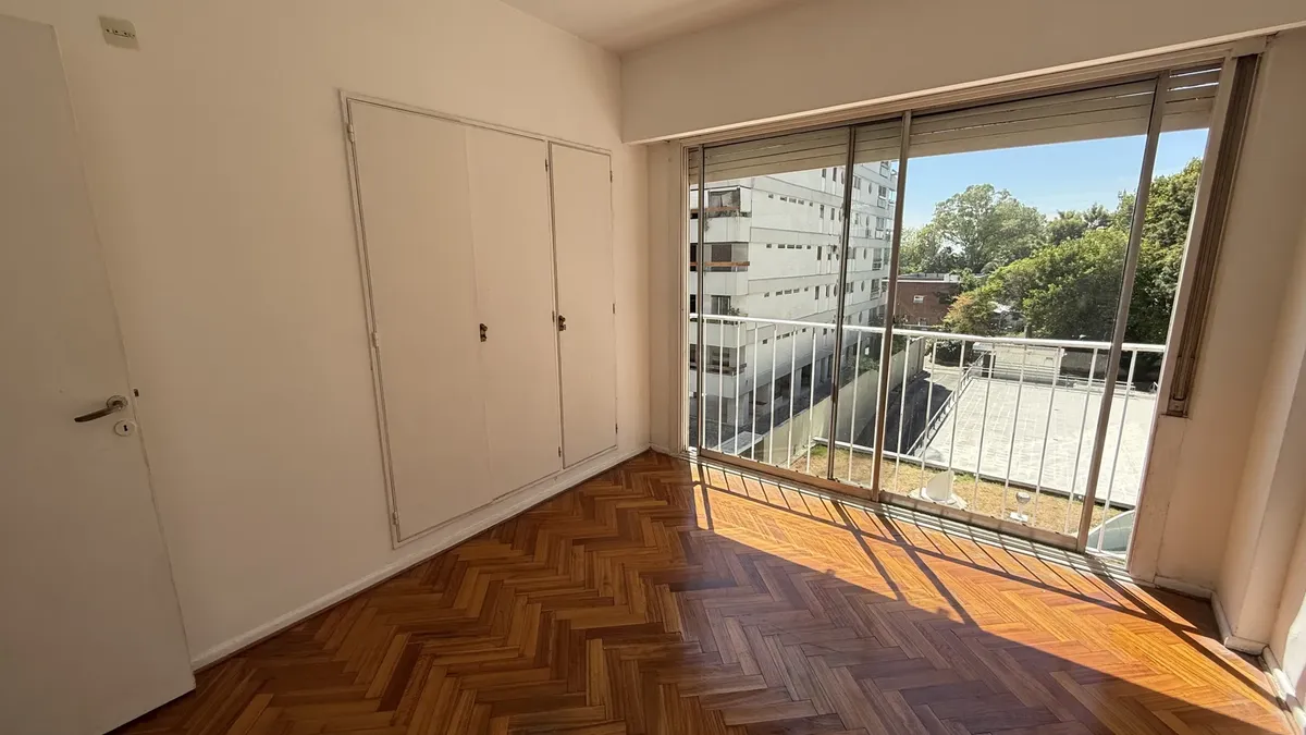 Three-room apartment for rent in Olivos. It has 2 bedrooms, 2 bathrooms and a balcony, with a living-dining room, separate kitchen with an incorporated laundry area, an entry hall and a distribution hall. The main bedroom includes a fitted wardrobe and a French balcony; the second bedroom has a fitted wardrobe. The building has security and covered (assigned) parking, plus a shared-use terrace with views of the river and the city.