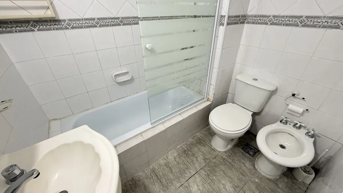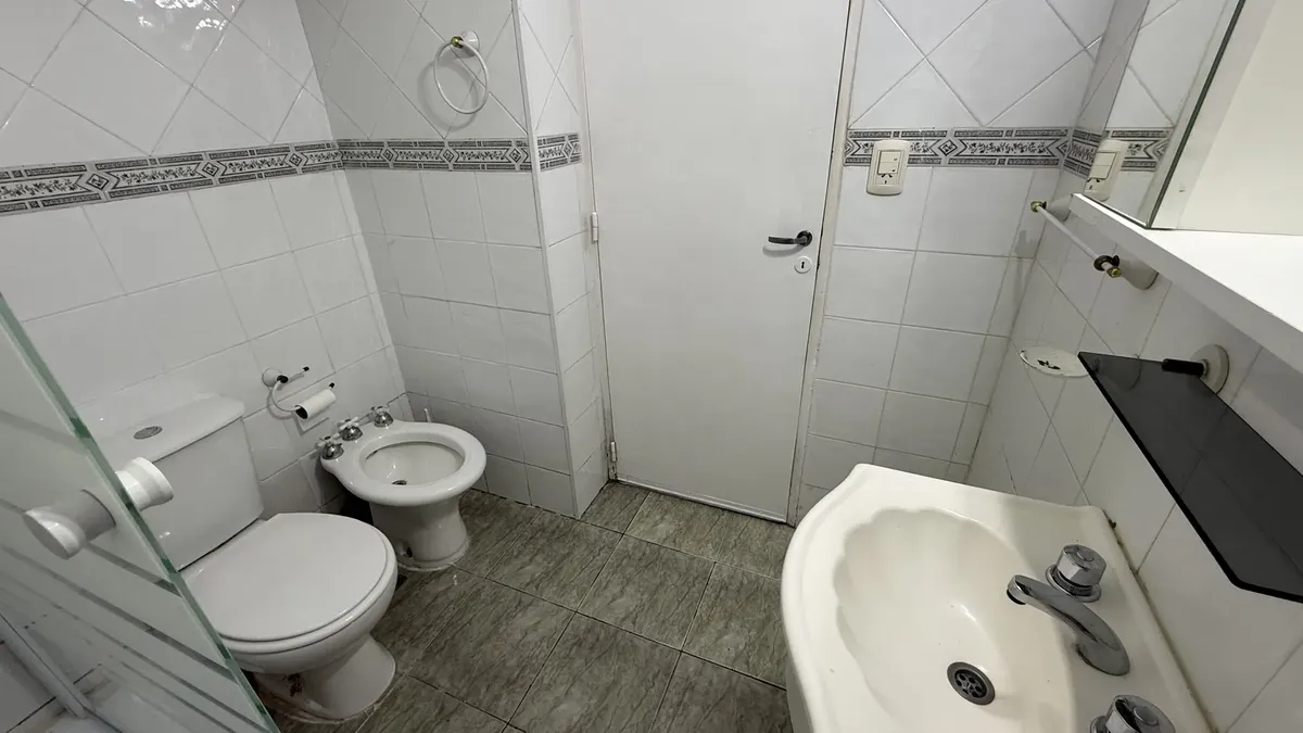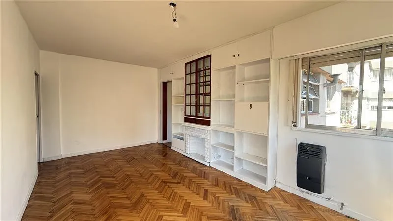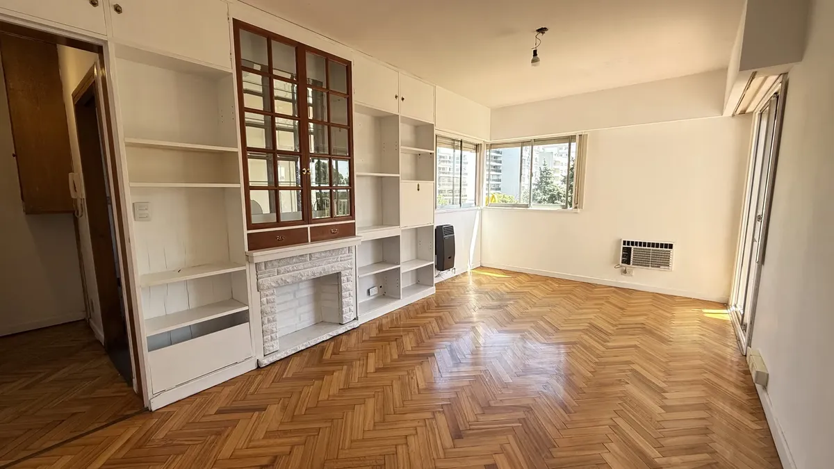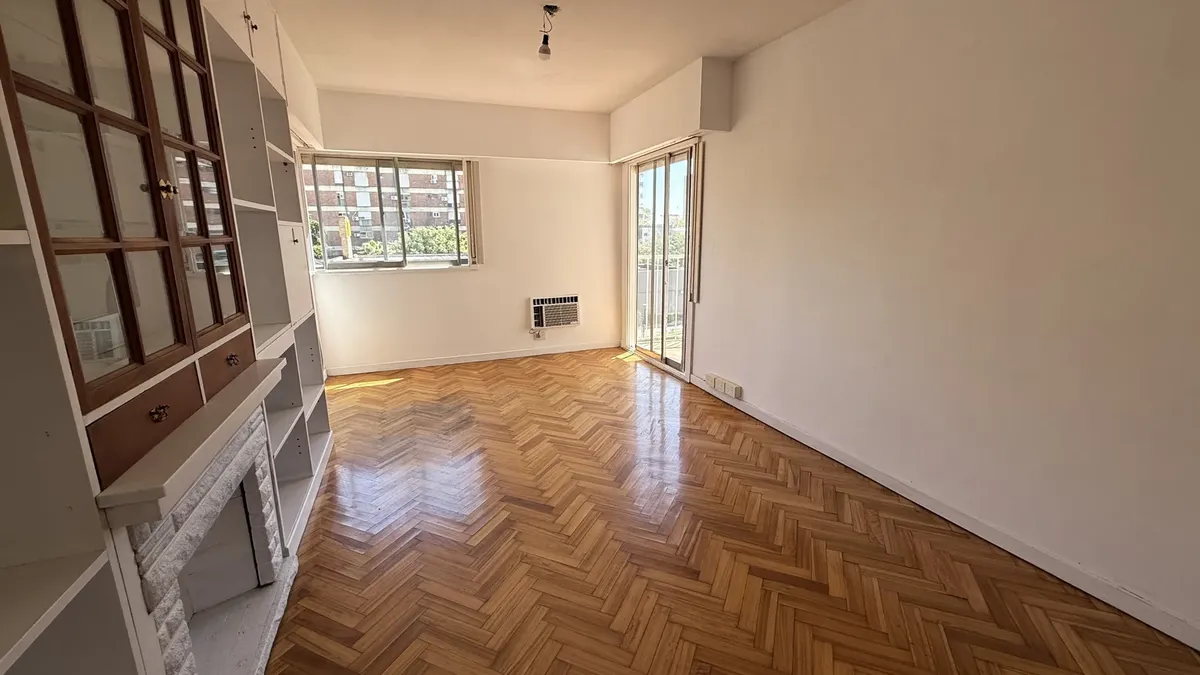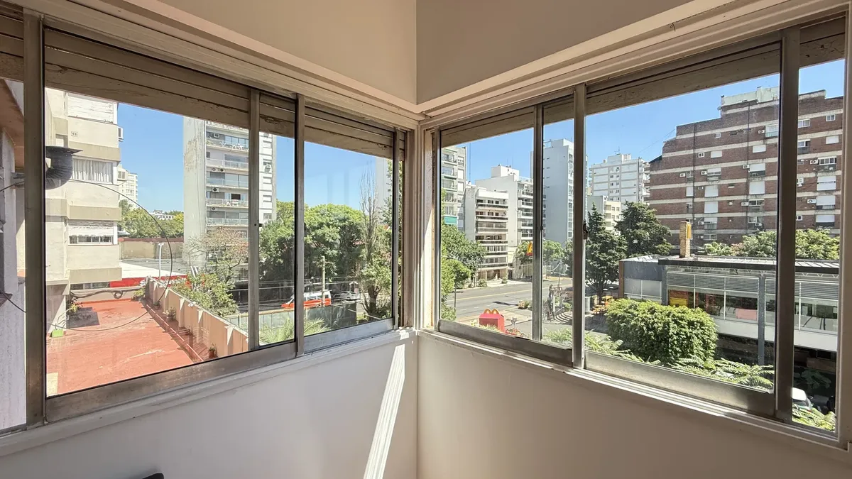 Three-room apartment for rent in Olivos. It has 2 bedrooms, 2 bathrooms and a balcony, with a living-dining room, separate kitchen with an incorporated laundry area, an entry hall and a distribution hall. The main bedroom includes a fitted wardrobe and a French balcony; the second bedroom has a fitted wardrobe. The building has security and covered (assigned) parking, plus a shared-use terrace with views of the river and the city.