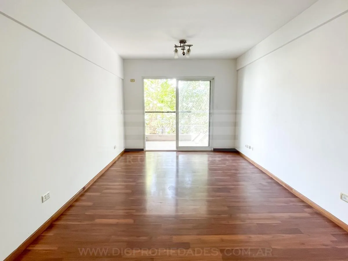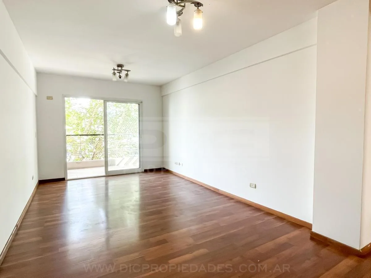 Three-room apartment in Olivos, street-facing with a balcony. It has a reception hall, a living-dining room with street view and access to the balcony, and 2 bedrooms with fitted closets, one with an en-suite bathroom. The kitchen has full cabinetry and space for a daily-meals table; individual heating is via an in-department boiler for underfloor radiant heat. Covered, basement (subsoil) parking is included. The building, 17 years old, has a full communal room (SUM), a grill, and is located in
