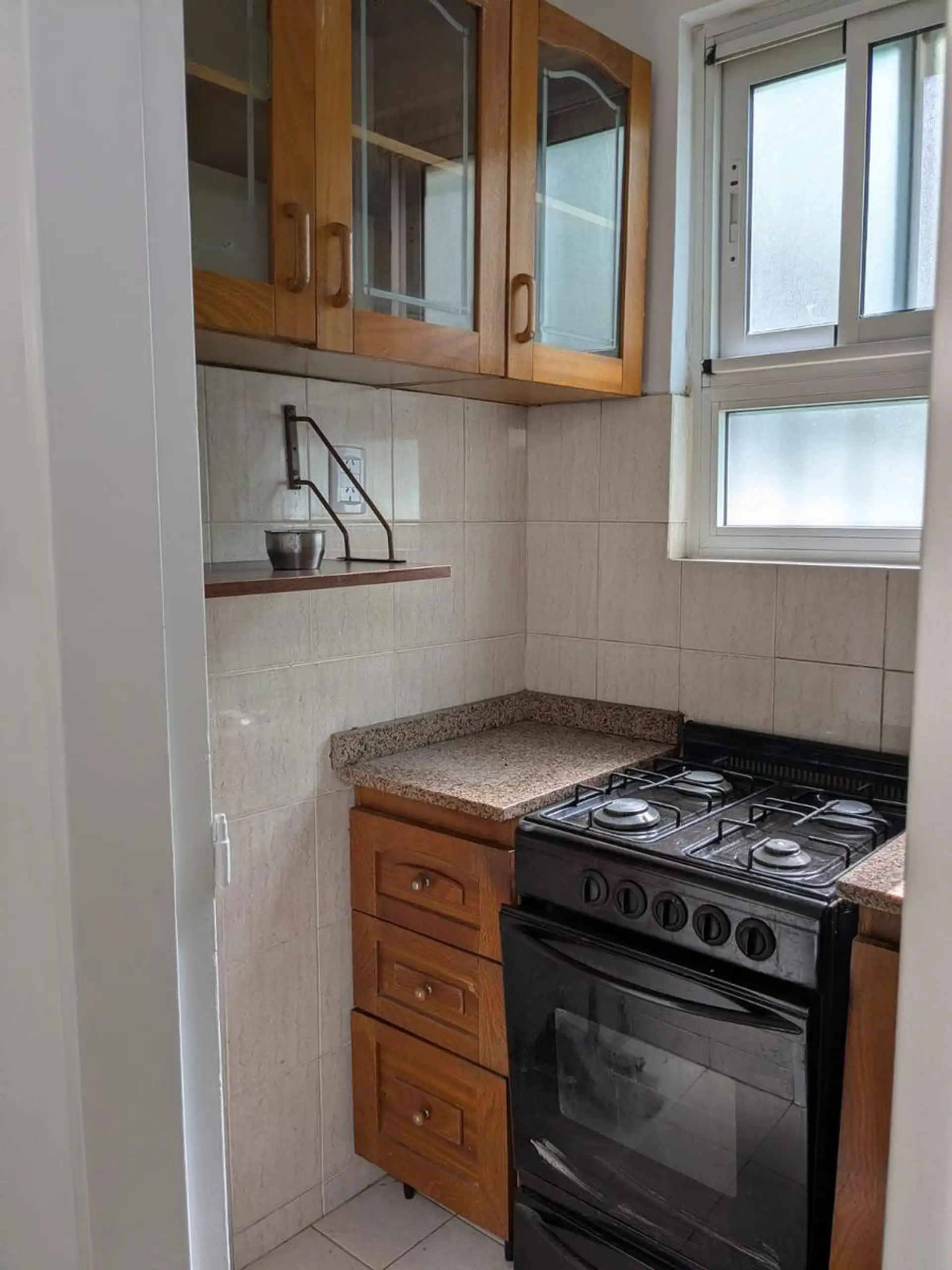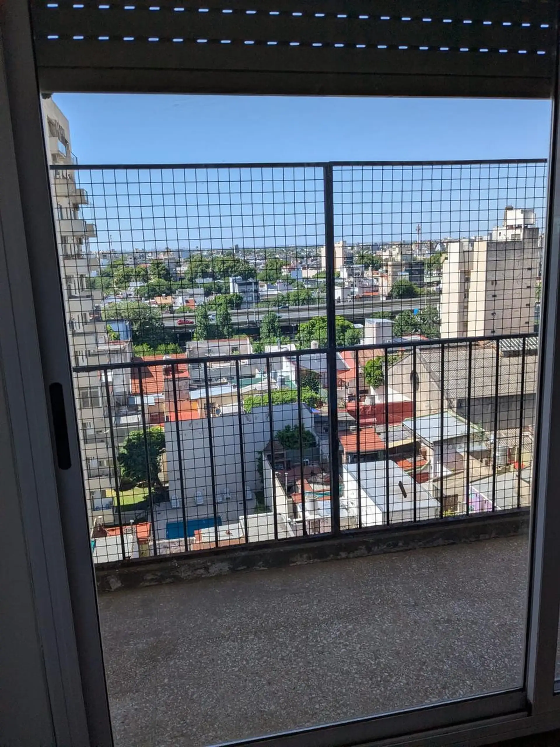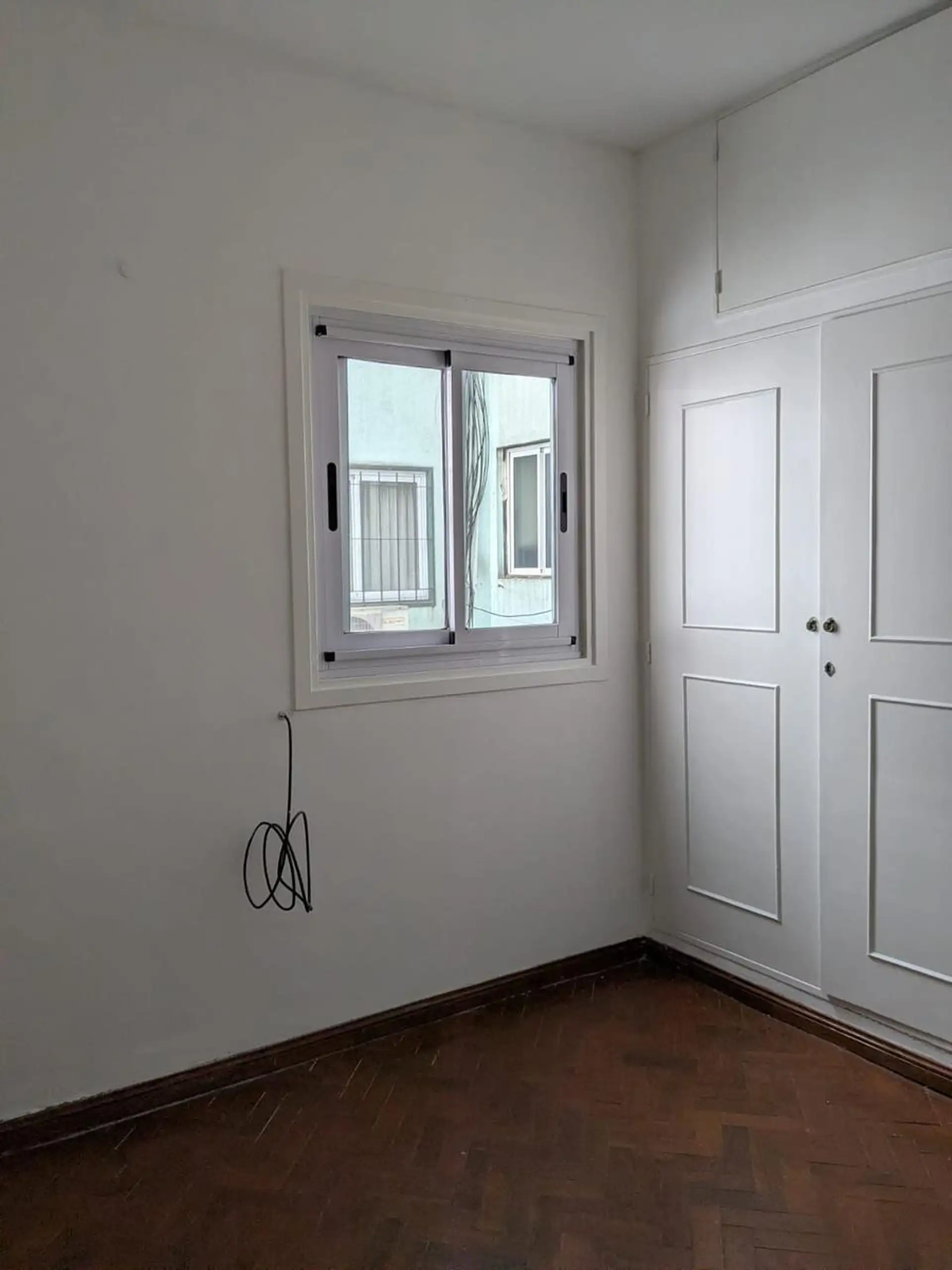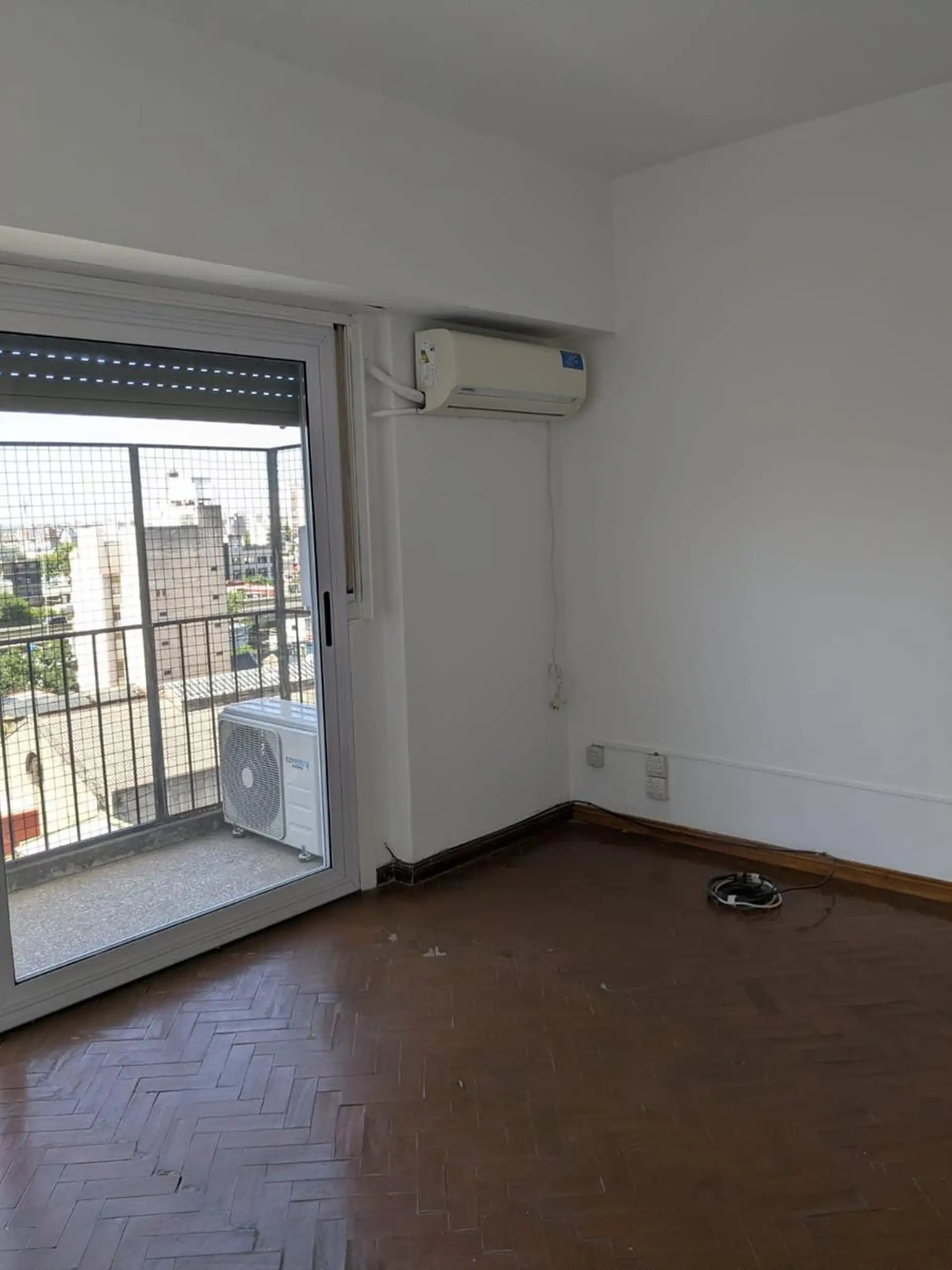 Three-room apartment on the 7th floor in very good condition. It has 2 bedrooms with fitted wardrobes; the main bedroom has a 3 x 1 balcony, and the living-dining room has a window. Bathroom and kitchen are refurbished. Building fees are ARS 170,000 and include AYSA; gas and electricity are also paid, and tenants must pay rent from the 1st to the 10th of each month. Lease term is 24 months with quarterly increases based on IPC; housing use only, not suitable for professional use. Pets require co