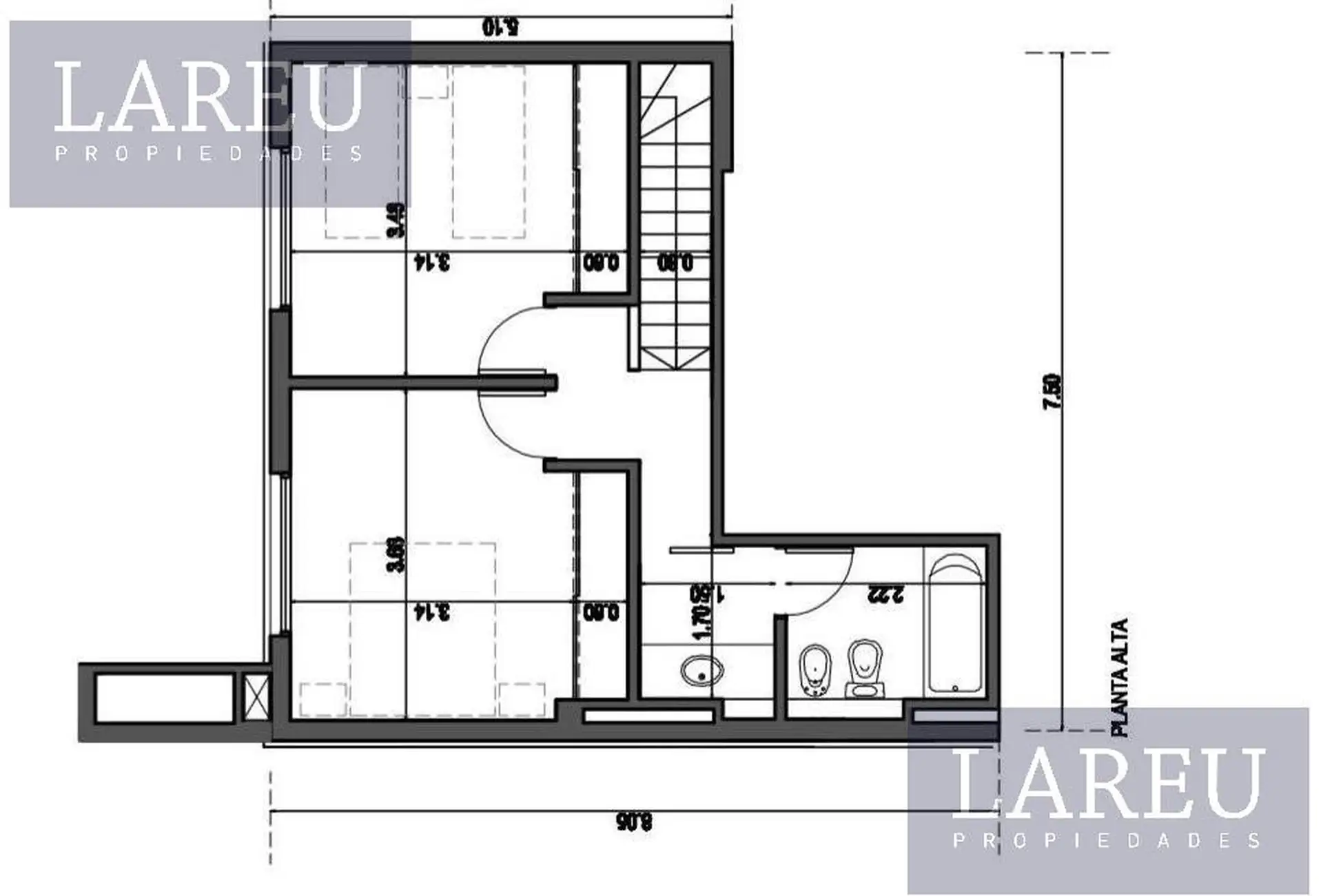 Three-room duplex apartment on the ground floor accessed by stairs, overlooking the pool in Bosque Alto. The ground level has a living and dining area with access to a balcony (2 x 8) with safety nets, a covered BBQ area, a guest toilet, and a kitchen with full base cabinets and upper cupboards with a connection for a washing machine. Upstairs has 2 bedrooms with large closets, a full bathroom and a washbasin in the anteroom with space for a large vanity; porcelain tile floors, underfloor heatin