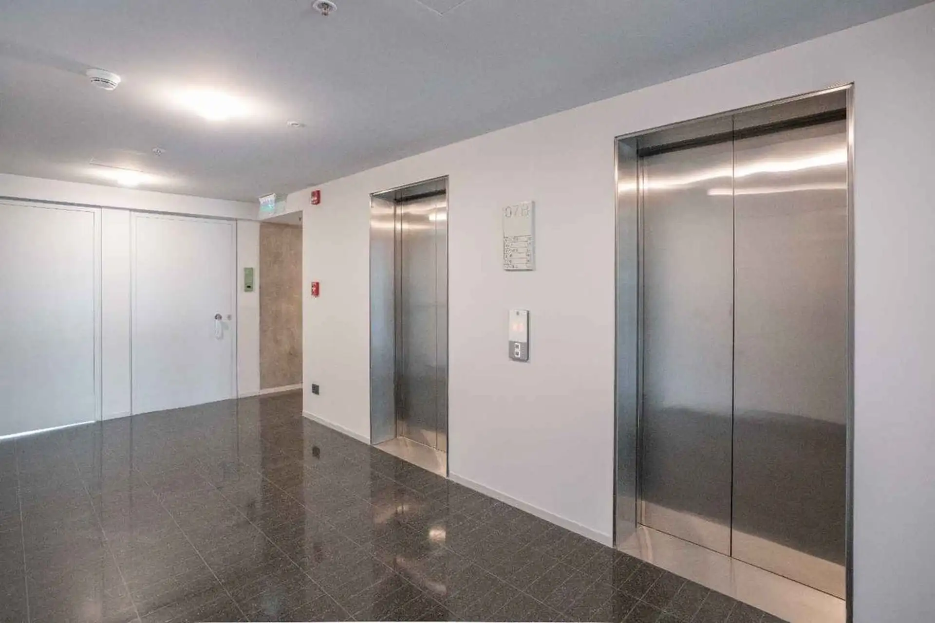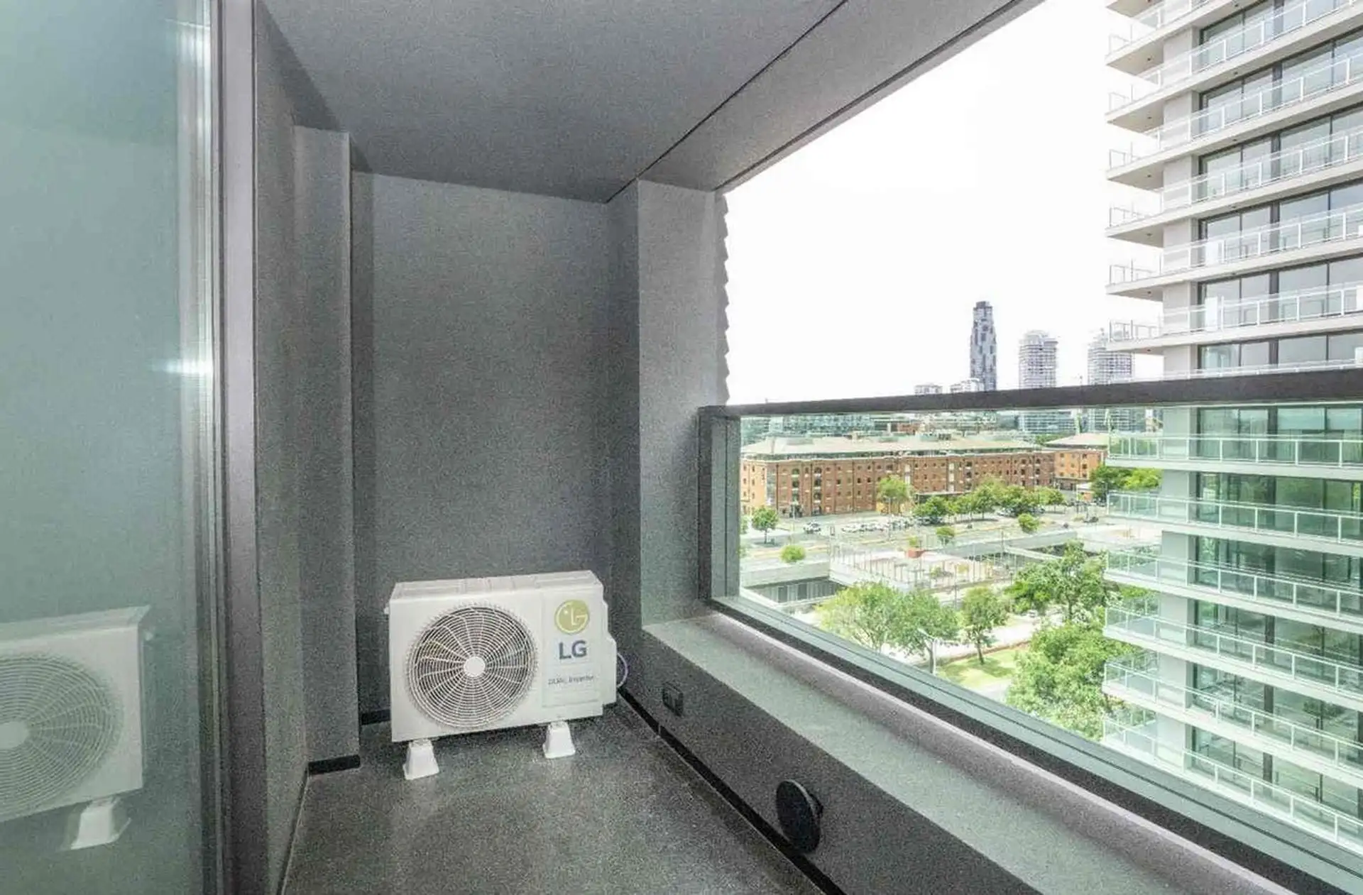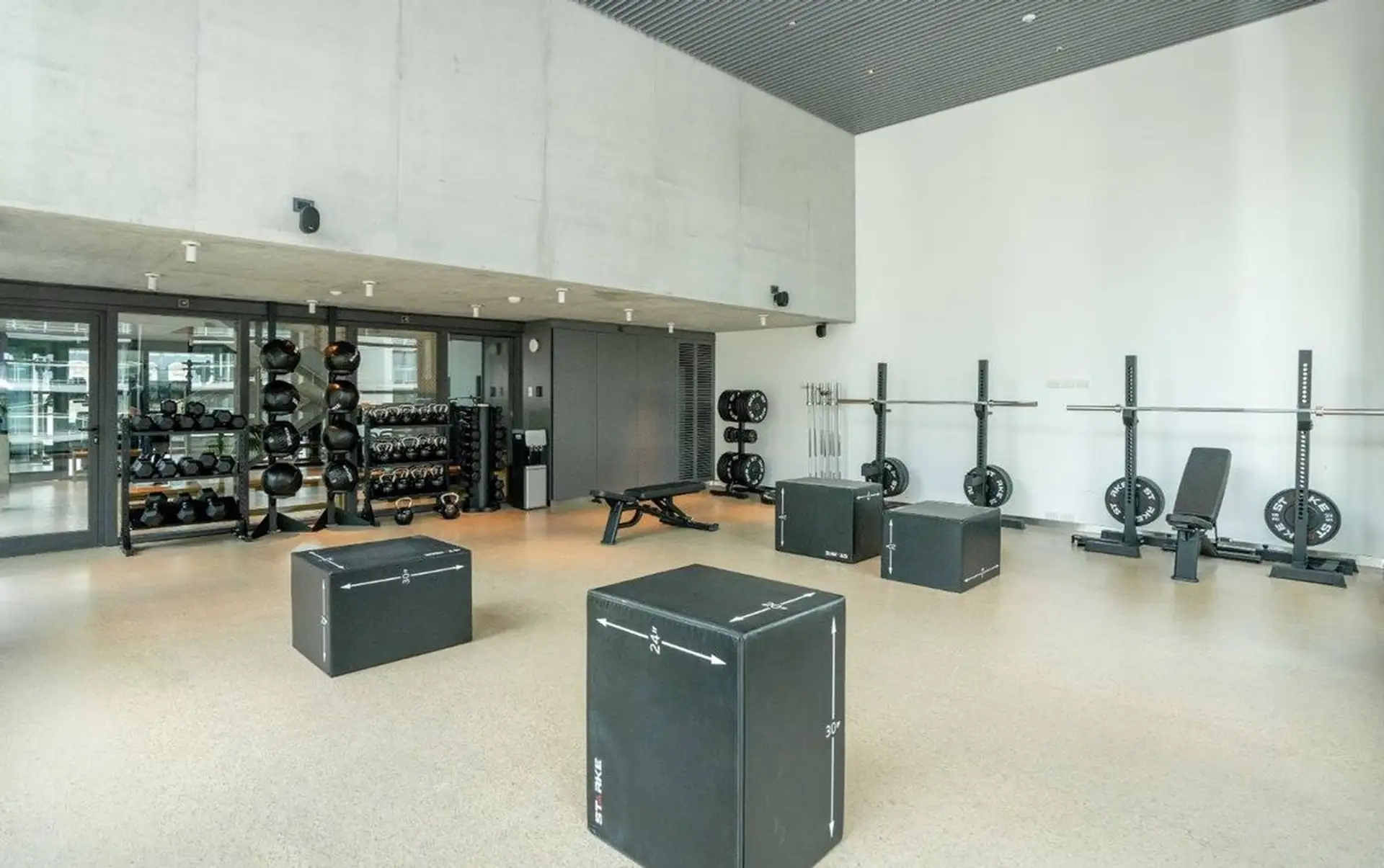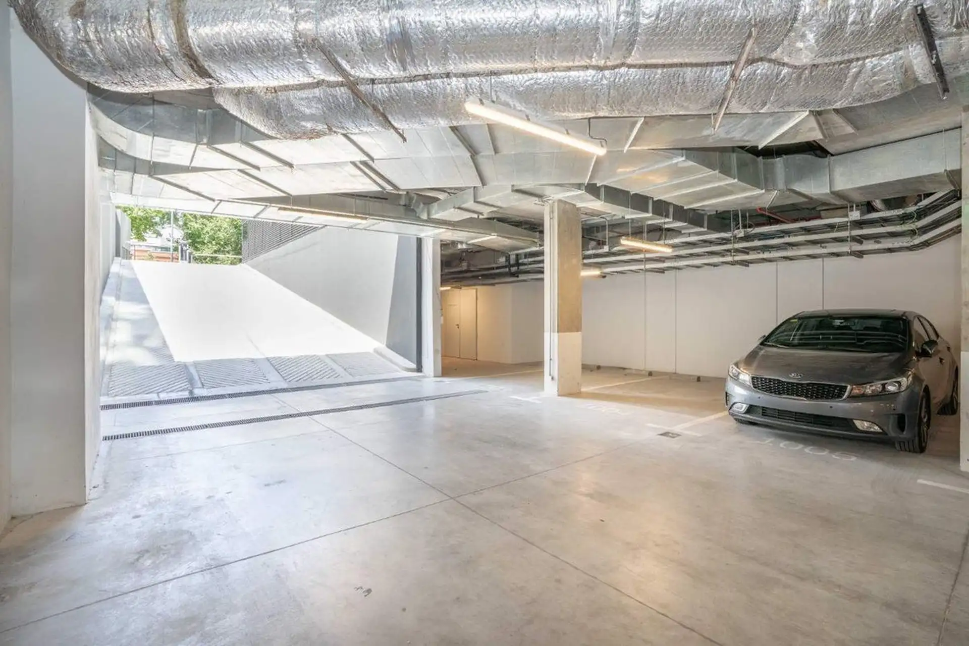 Two-bedroom apartment on the 7th floor with 37.17 m² covered area and a 3.47 m² balcony. The layout is described as prioritising light and flexibility, with open views towards the port and the city. (Assigned) parking space is located at the access ramp in the 1st basement.