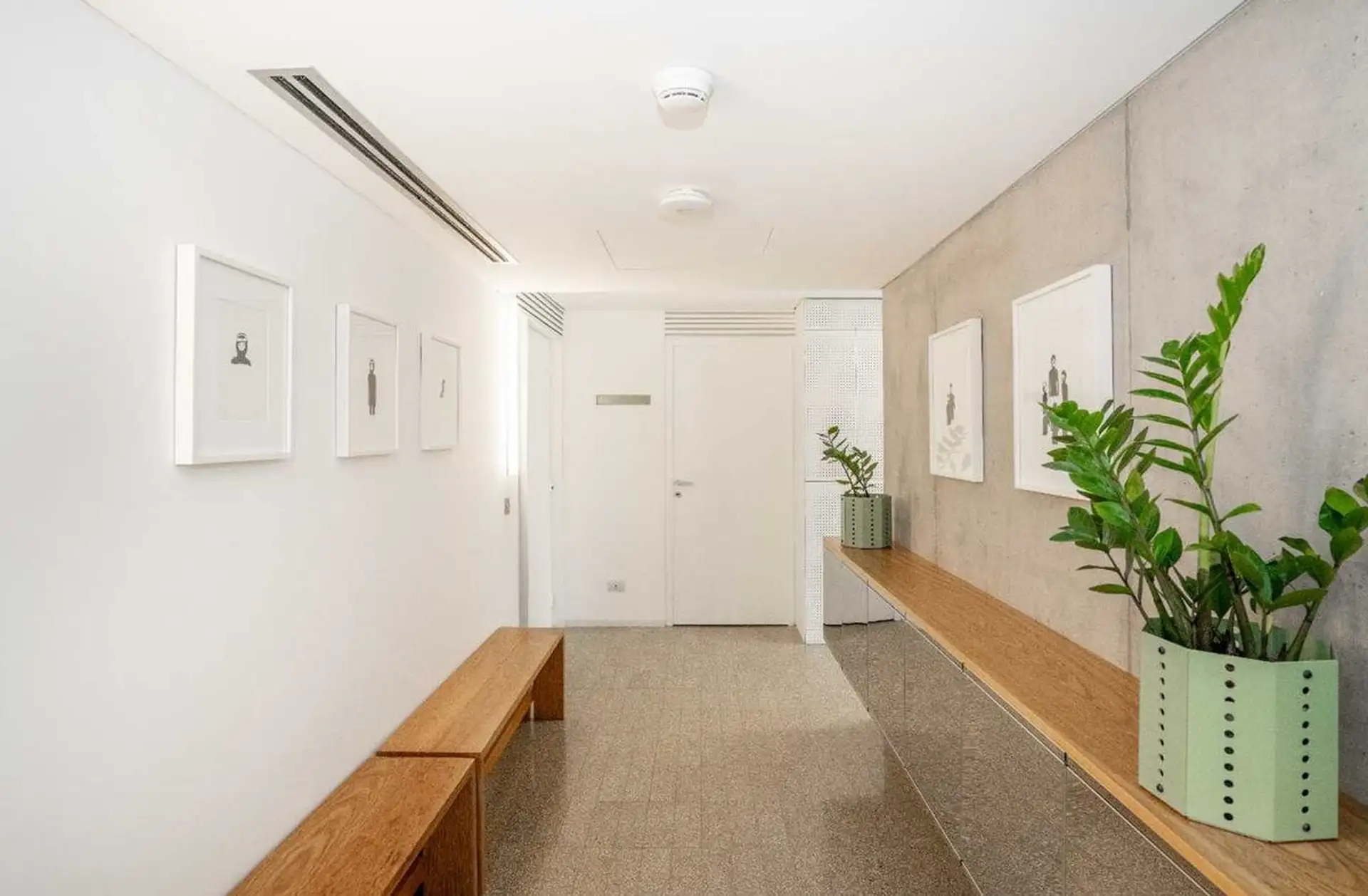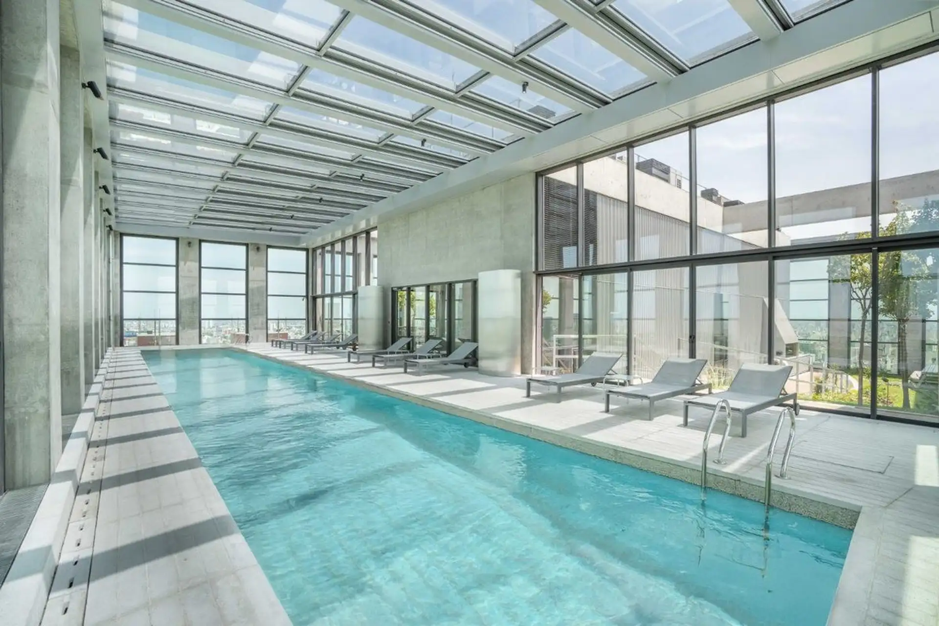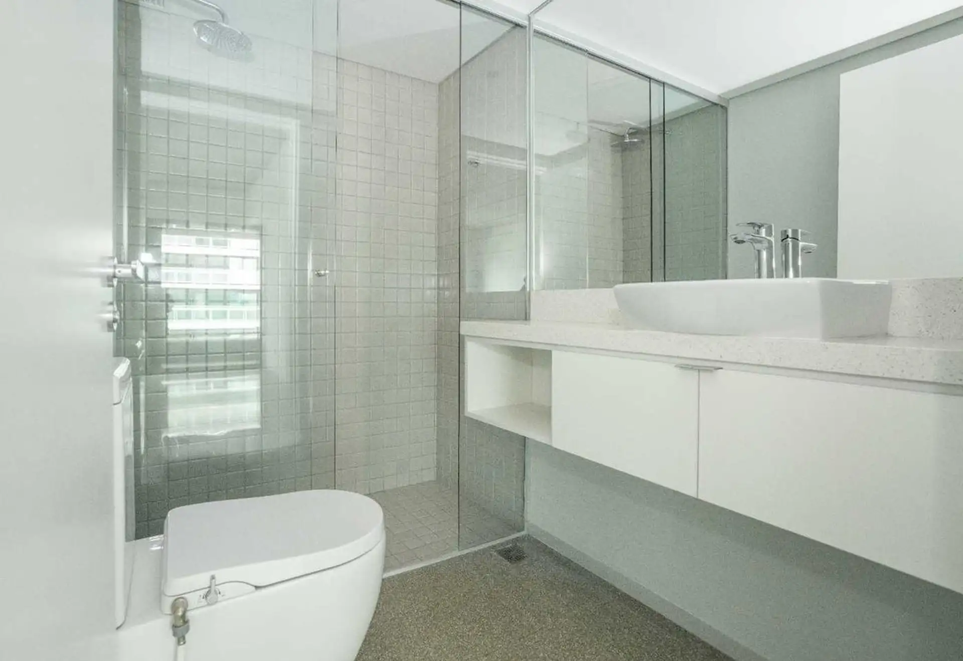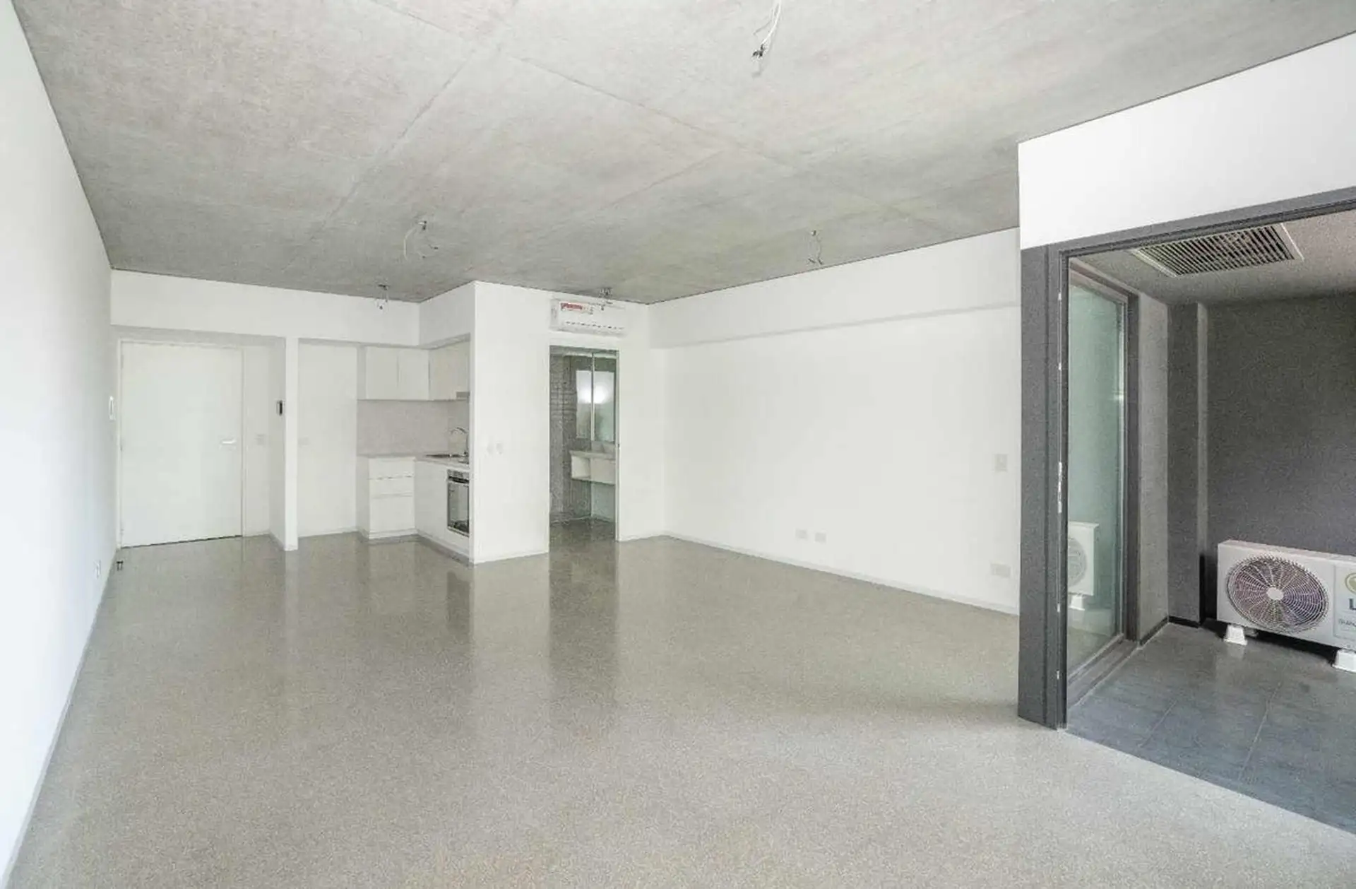 Two-bedroom apartment on the 7th floor with 37.17 m² covered area and a 3.47 m² balcony. The layout is described as prioritising light and flexibility, with open views towards the port and the city. (Assigned) parking space is located at the access ramp in the 1st basement.