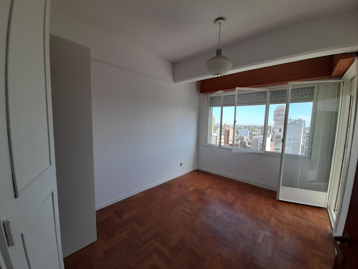 Three-room apartment in Quilmes Centro with 90 m² covered area on the 10th floor, street-facing. It has a living-dining room, separate kitchen, toilet, full bathroom, and a service room. Two bedrooms with built-in closets and balcony access from both bedrooms. No assigned parking space; pets are not accepted.