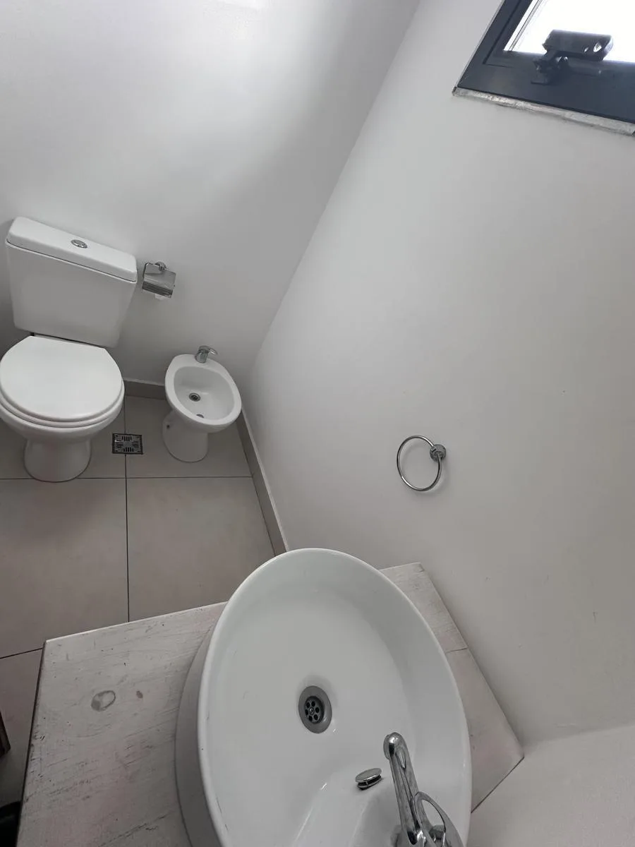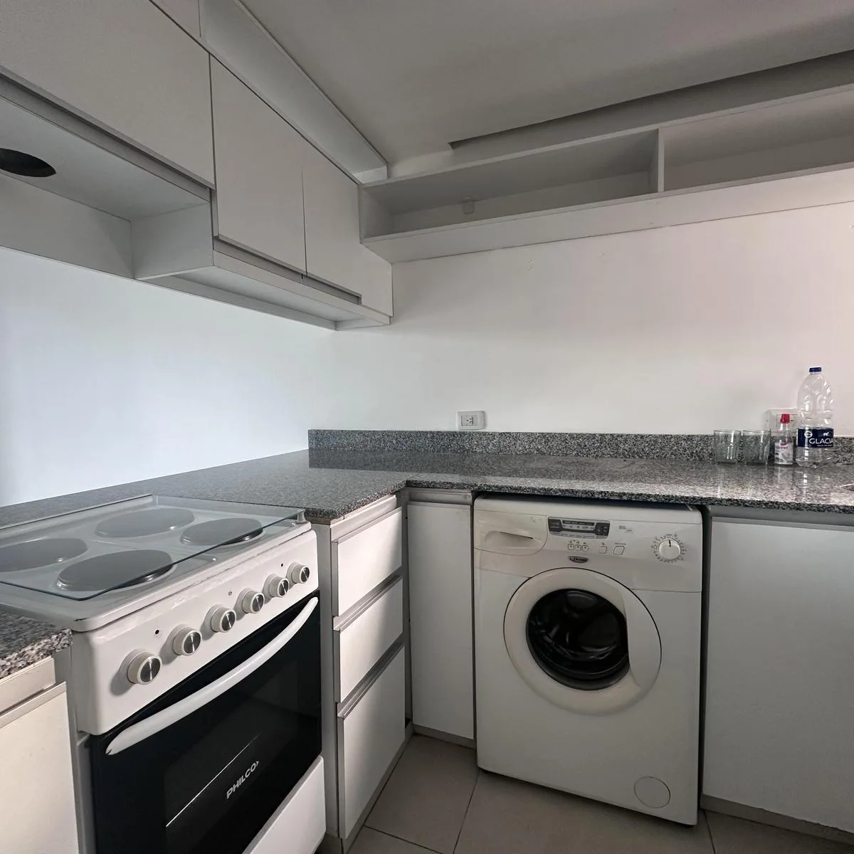 Three-room apartment on the 3rd floor, street-facing in Quilmes. It includes a living area with a front balcony with railings, air conditioning (cold/hot), a full kitchen with upper and lower cabinets, an extractor hood, and space for a washing machine. There are 2 bedrooms with large windows and air conditioning (cold/hot), plus 1 bathroom with a shower. The building has a equipped communal room (SUM) and a grill. Building fees are about ARS 120,000 per month; parking is optional at ARS 100,000