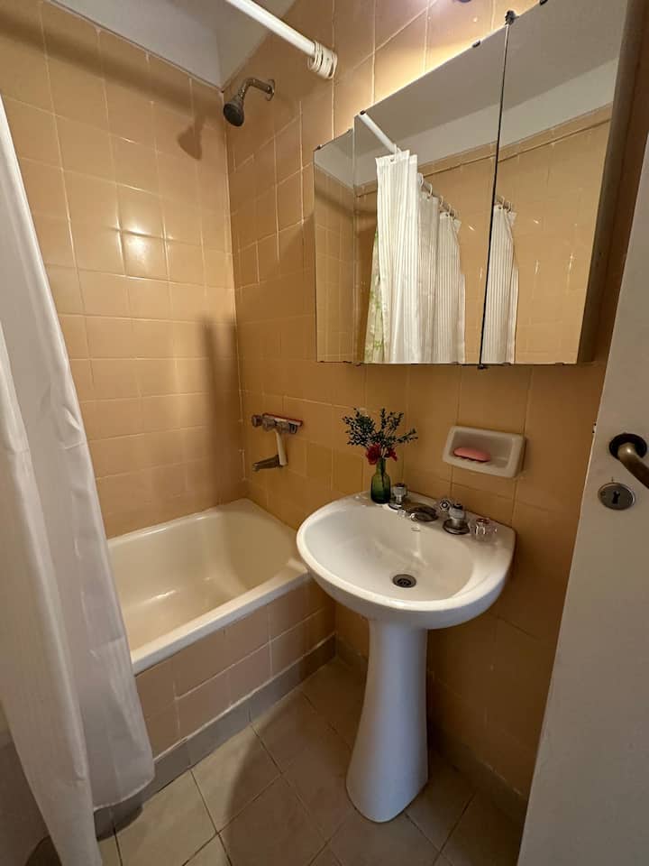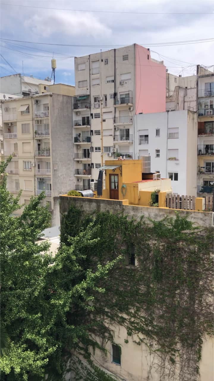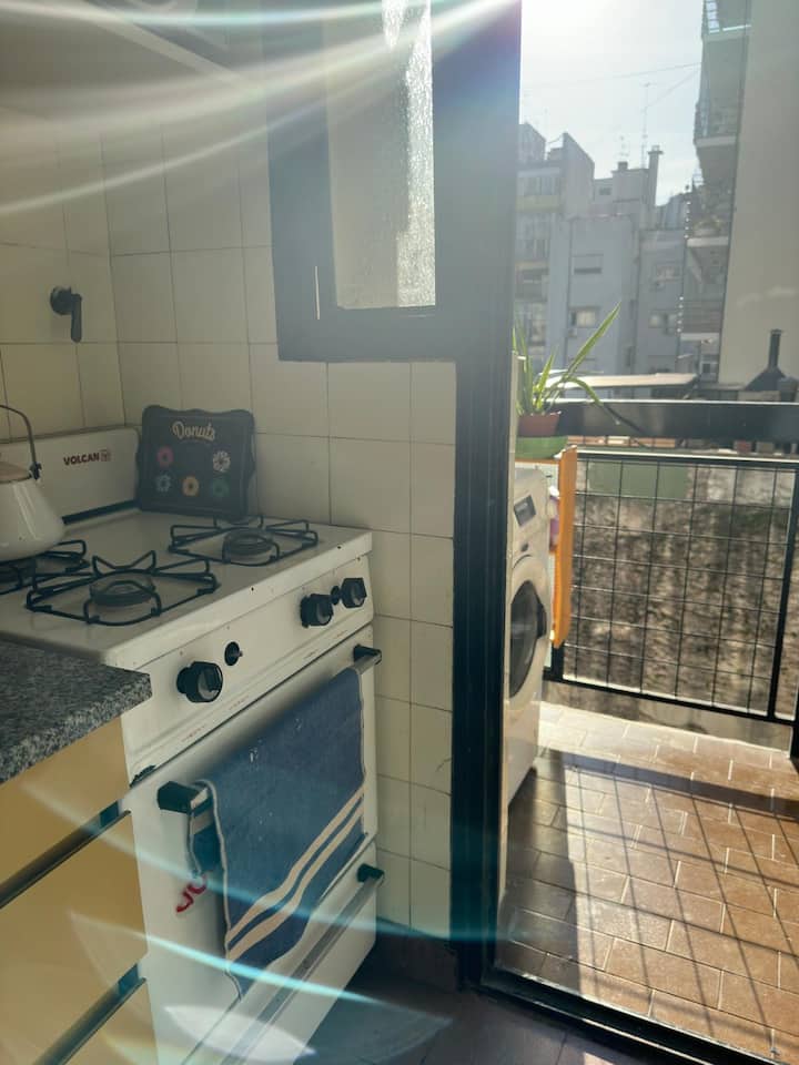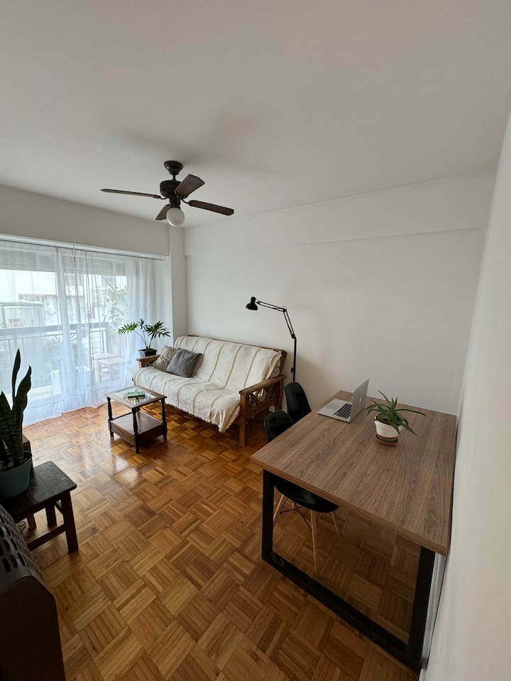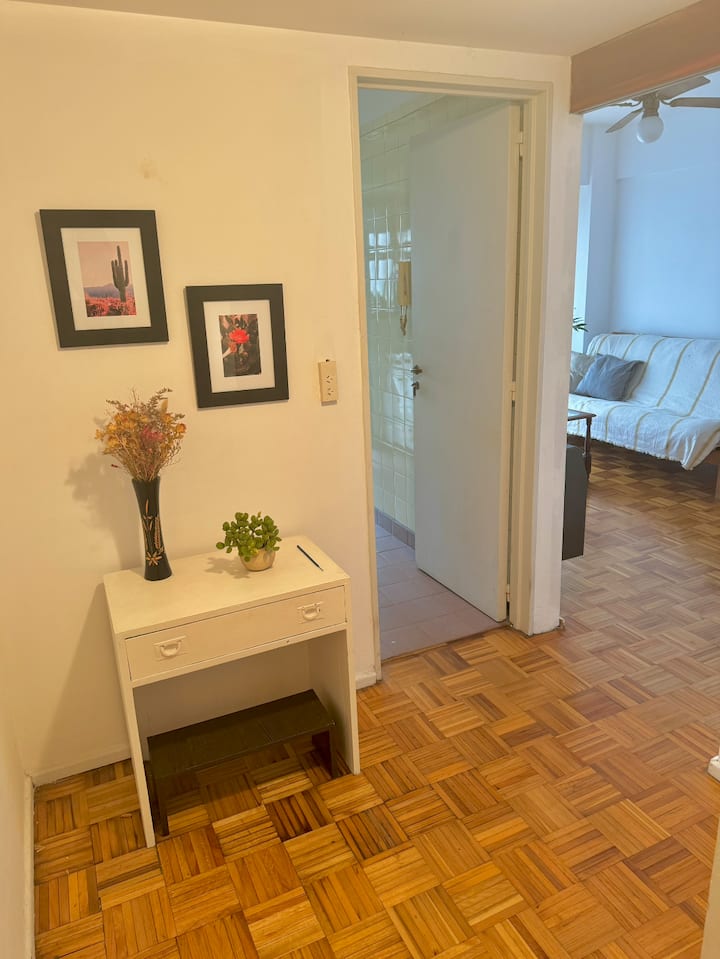 Apartment on the 5th floor in Recoleta. It has 2 bedrooms, a living room with a double sofa bed, a separate kitchen, a separate bathroom, and a small balcony. The apartment has cooking utensils and is equipped for short stays, with a doorman available during the day and at night. It is about a 5-minute walk from Cementerio de la Recoleta and a few blocks from Plaza Francia, Facultad de Derecho, and Floralis Genérica.