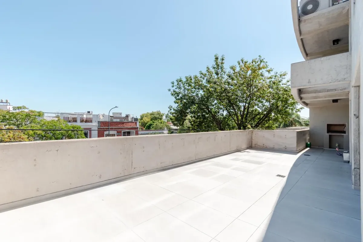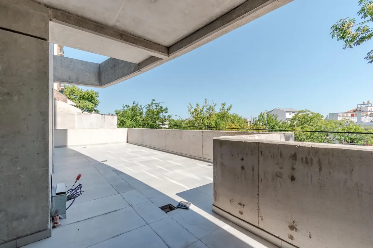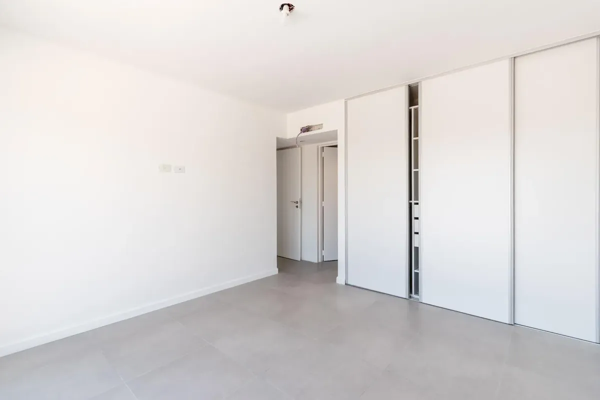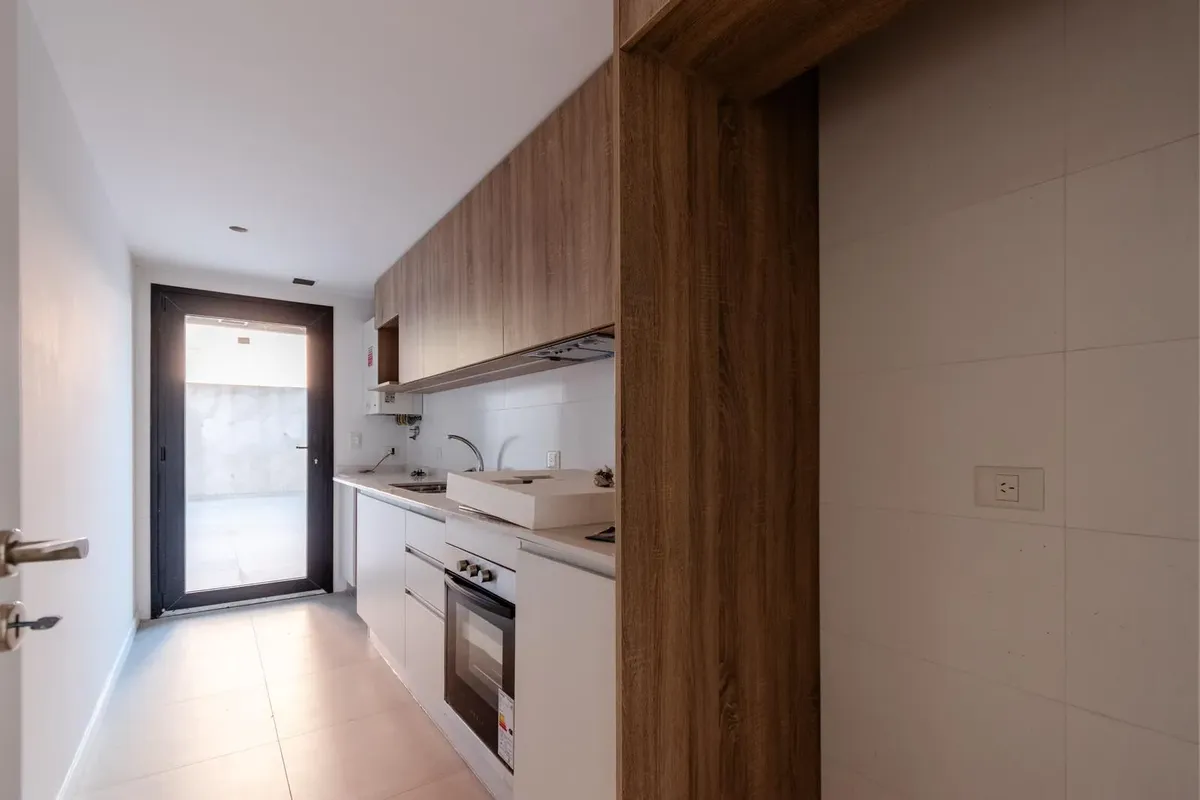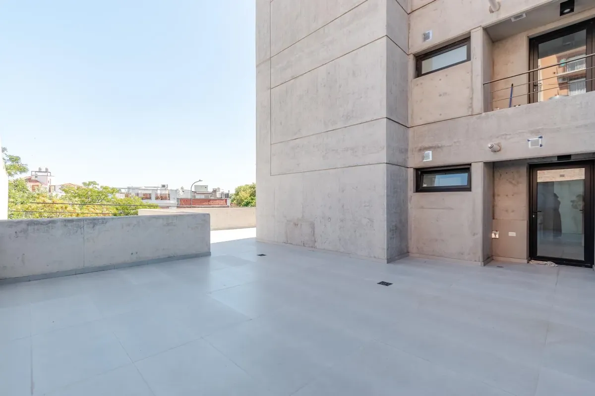 Three-room apartment with 76 m² covered area and a private patio of 101 m², for a total of 177 m². It is a two-bedroom unit that faces the street with open views of the avenue. The living and dining area is paired with a separate modern kitchen with built-in cabinetry and space for a washer and dishwasher. The master bedroom is en suite, and the second bedroom uses a full bathroom that also serves as a guest toilet; both rooms have access to the patio. The building is in a 9-storey tower with a