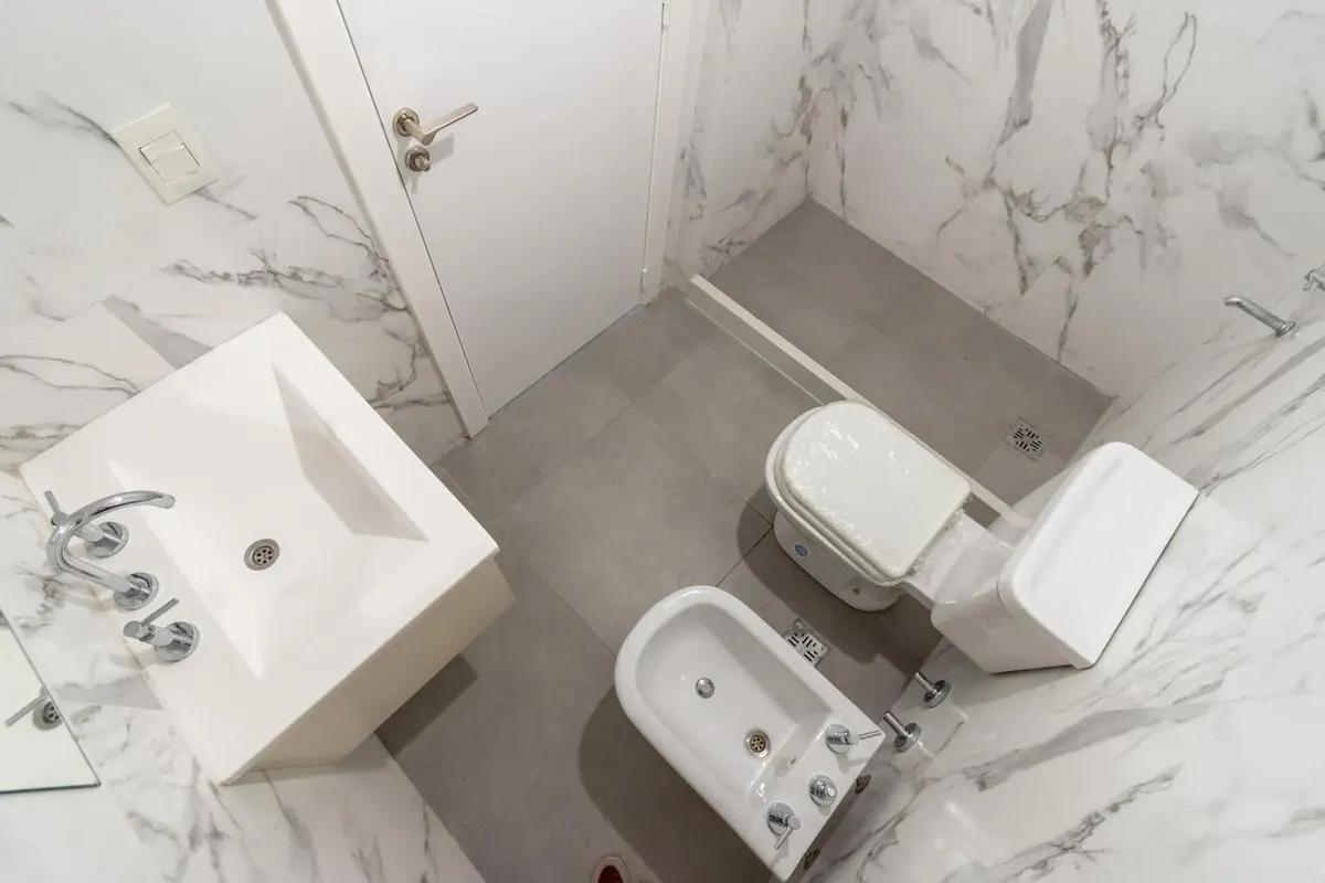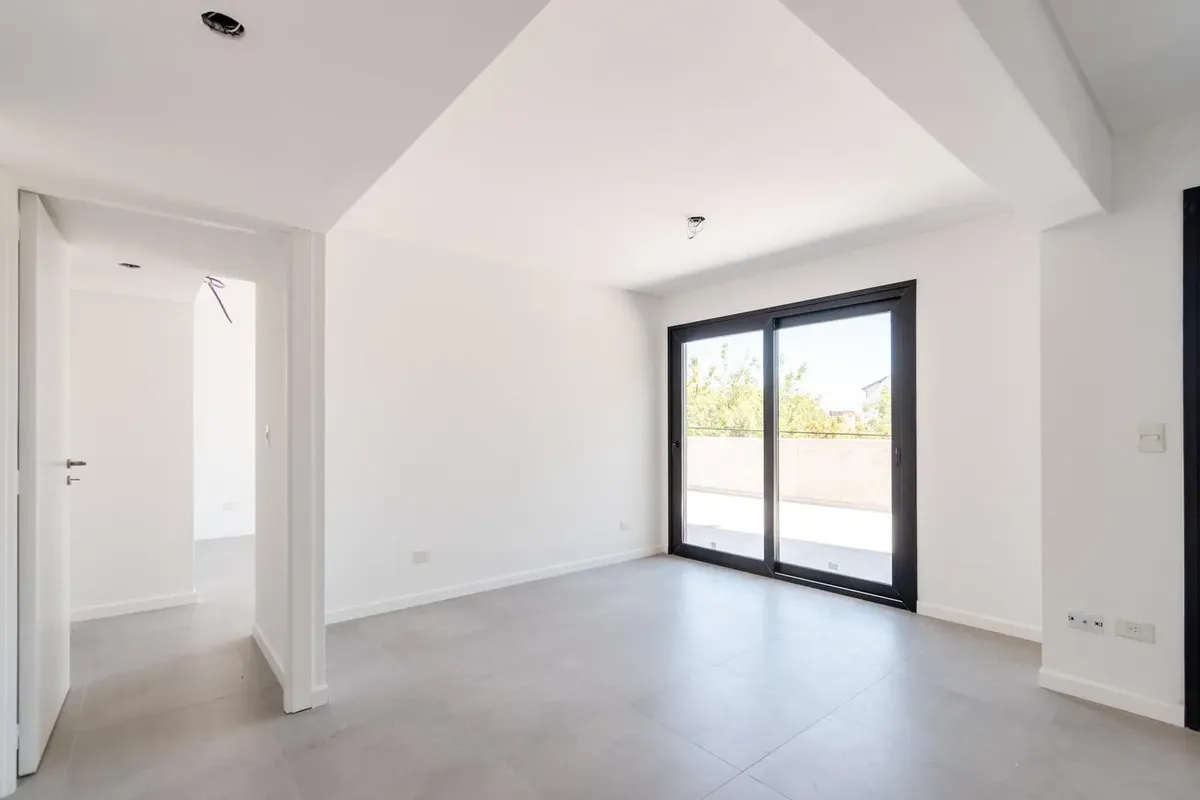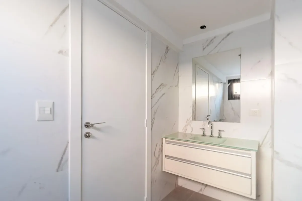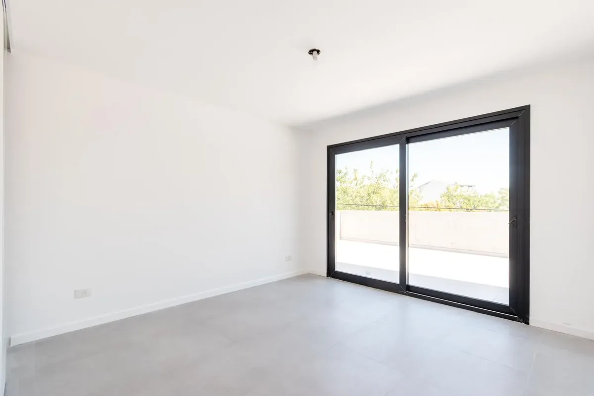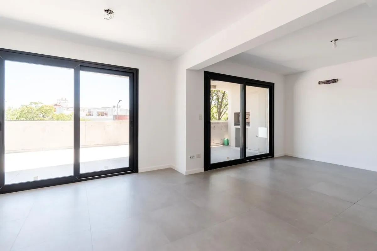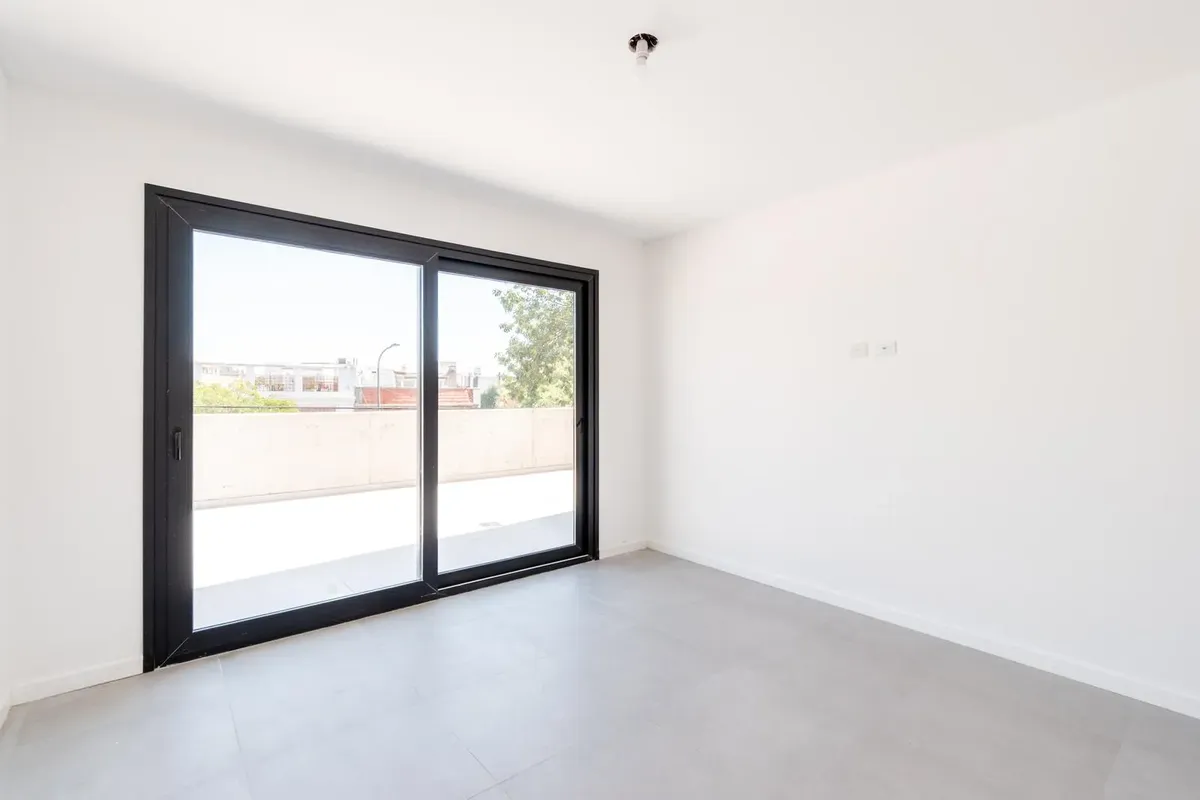 Three-room apartment with 76 m² covered area and a private patio of 101 m², for a total of 177 m². It is a two-bedroom unit that faces the street with open views of the avenue. The living and dining area is paired with a separate modern kitchen with built-in cabinetry and space for a washer and dishwasher. The master bedroom is en suite, and the second bedroom uses a full bathroom that also serves as a guest toilet; both rooms have access to the patio. The building is in a 9-storey tower with a