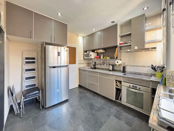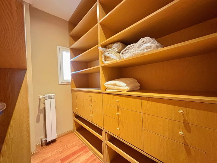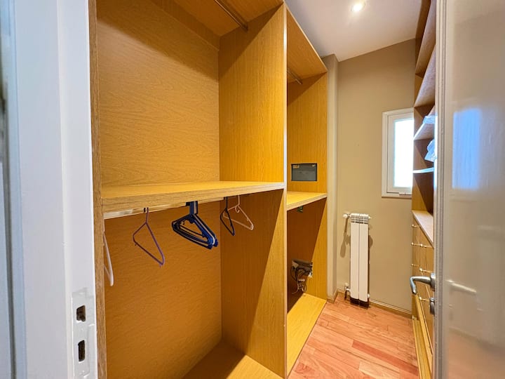 Apartment with 4 rooms, including a main bedroom with a double bed and dressing room, and a second bedroom with 2 single beds. Suitable for up to 4 people, with the option to add 1 more guest using an armchair bed. Full bathroom plus a reception toilet. Fully equipped kitchen with a laundry room and a balcony.