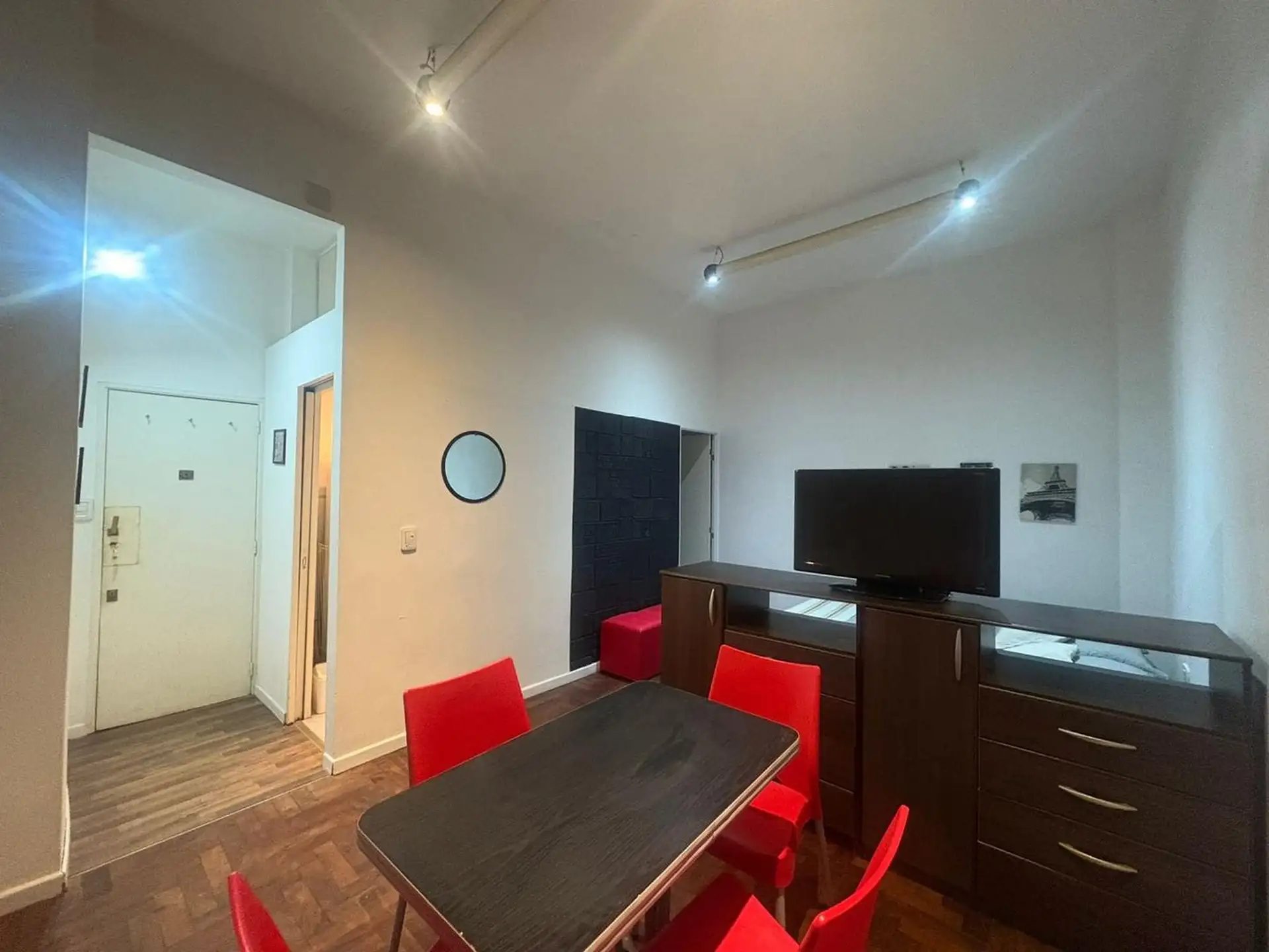 Studio apartment of 23 m² in San Nicolás, fully furnished and equipped. The layout has separate kitchen and bathroom. The rental package includes building fees (expensas), ABL, water and internet, with an electricity cap of $30,000. The unit is available from 27/03, at Paraná 572.