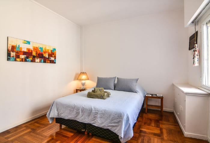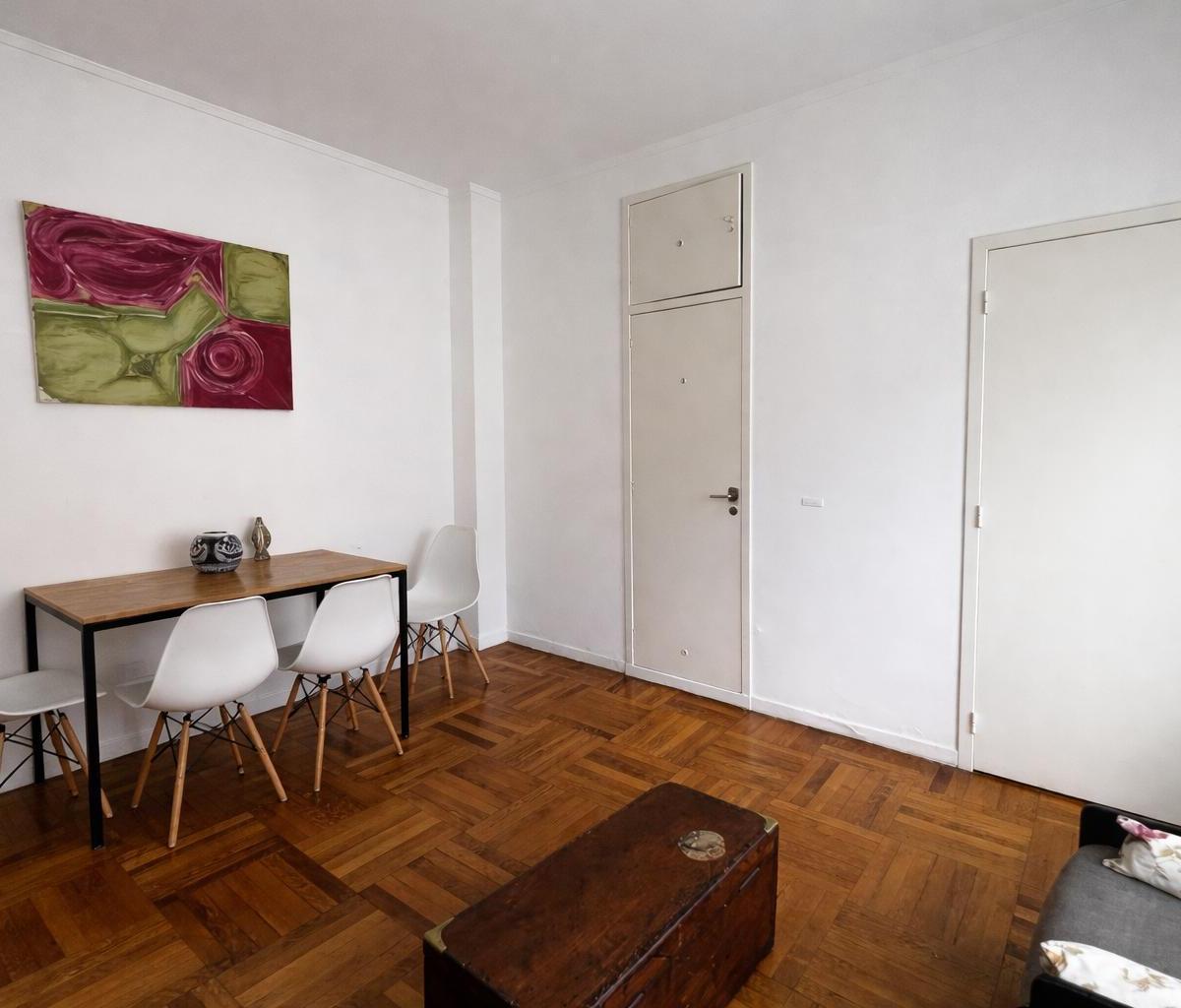 Three-room apartment on the 4th floor in Retiro–San Nicolás. Interior unit with high ceilings, parquet floors in the living-dining room, separate kitchen, and air conditioning. It has 1 bedroom and a second smaller room that can serve as a service room, bedroom, or office, with the option to rent furnished. Building fees, electricity, gas, ABL and internet are paid by the tenant.