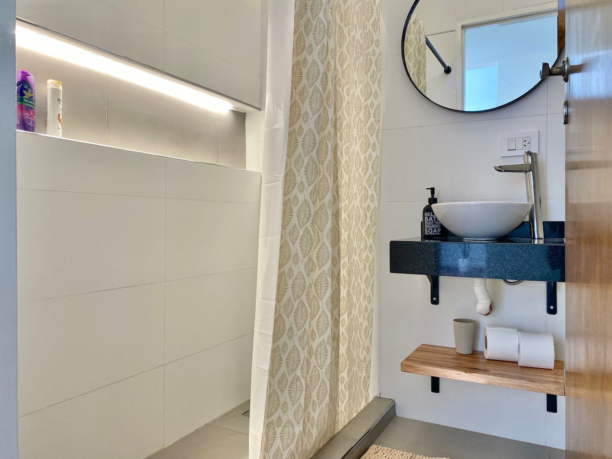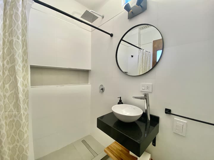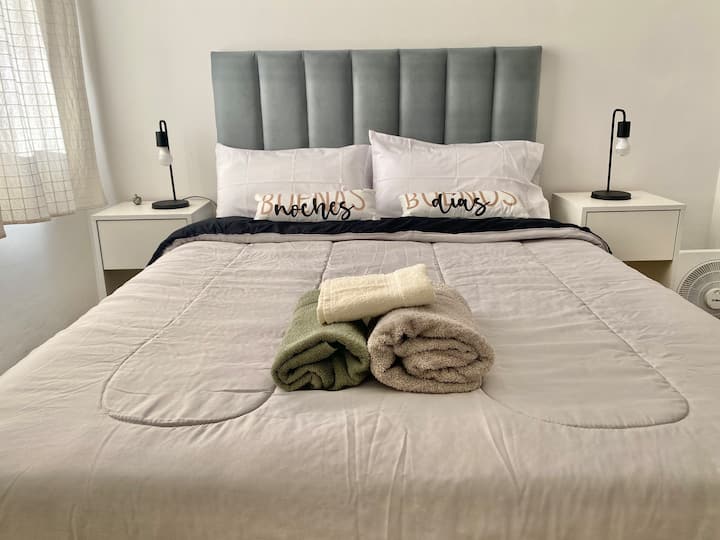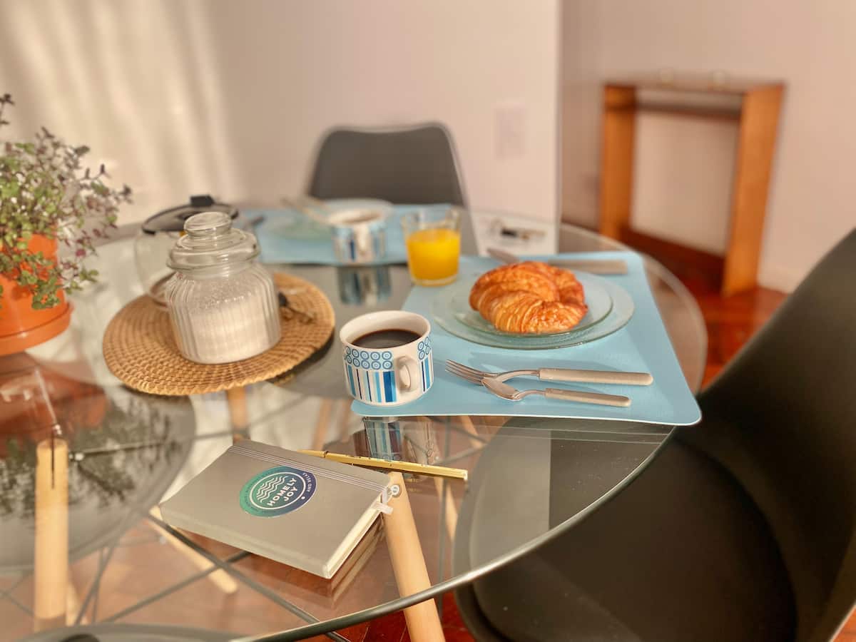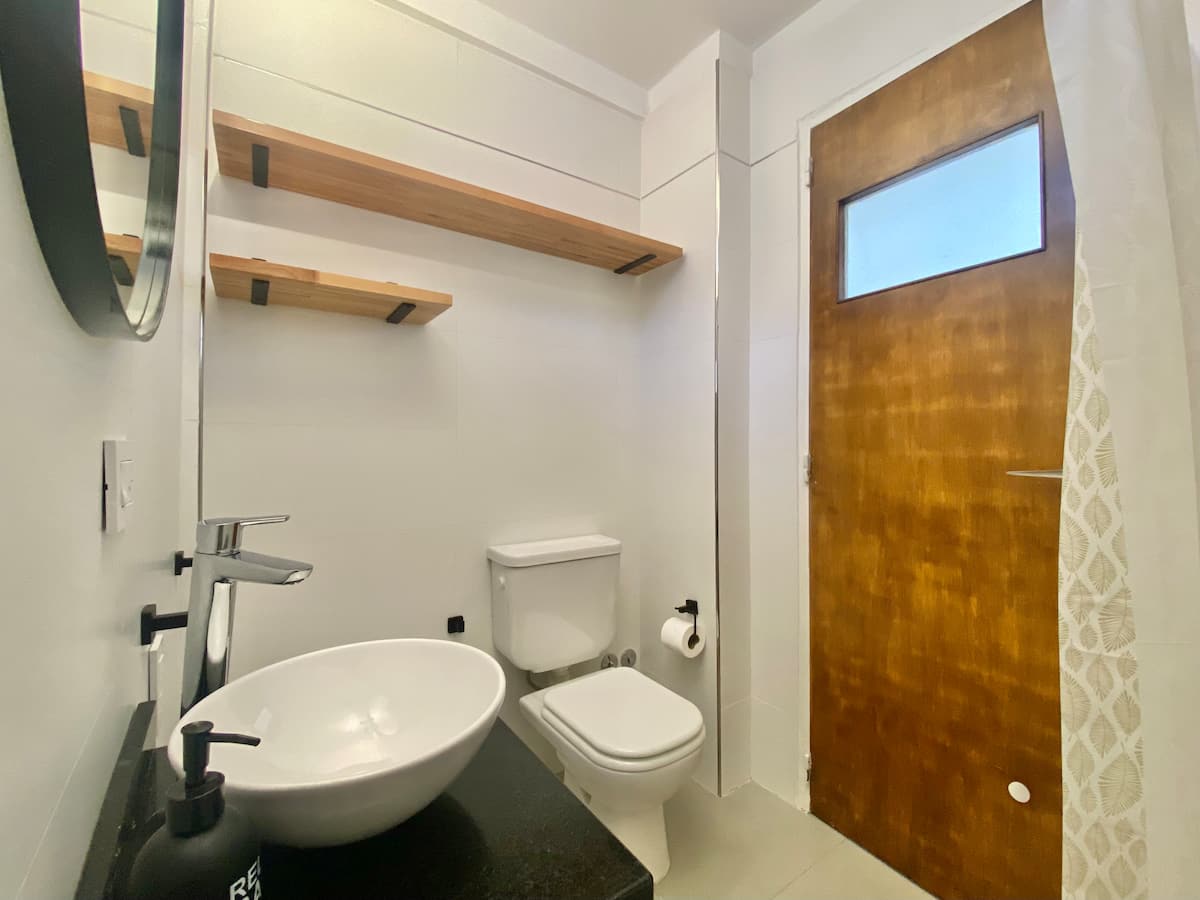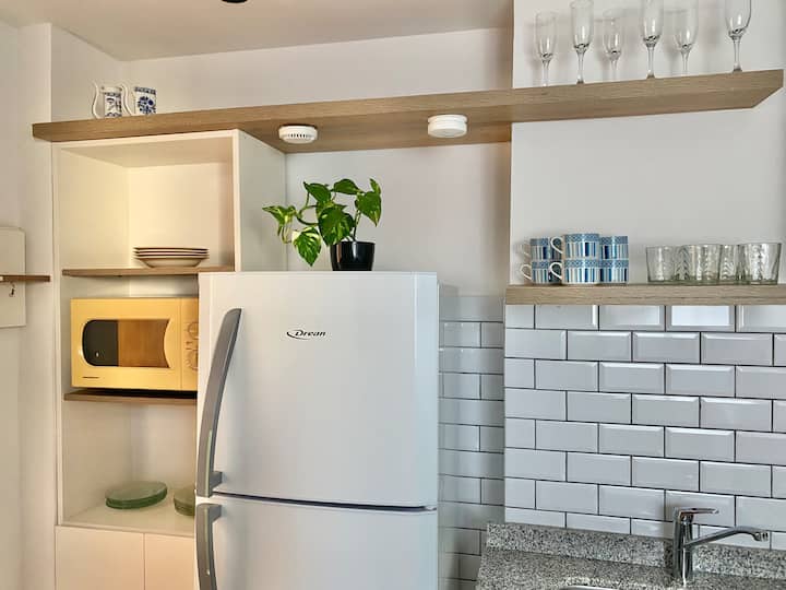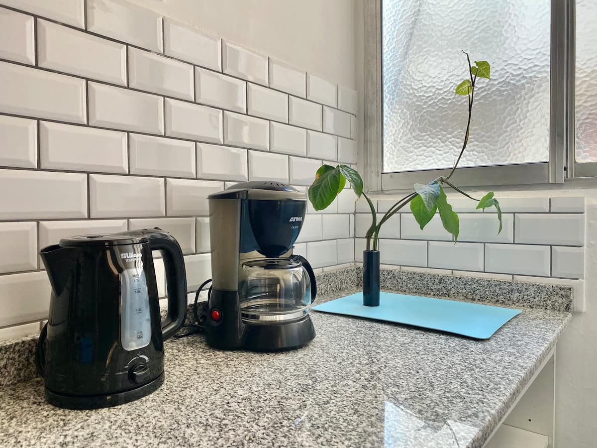 Two-bedroom apartment in San Telmo, furnished and equipped for stays. The kitchen and rooms are fully equipped, and complimentary supplies are provided during the stay. Guests have access to the building’s common areas shown in the photos.