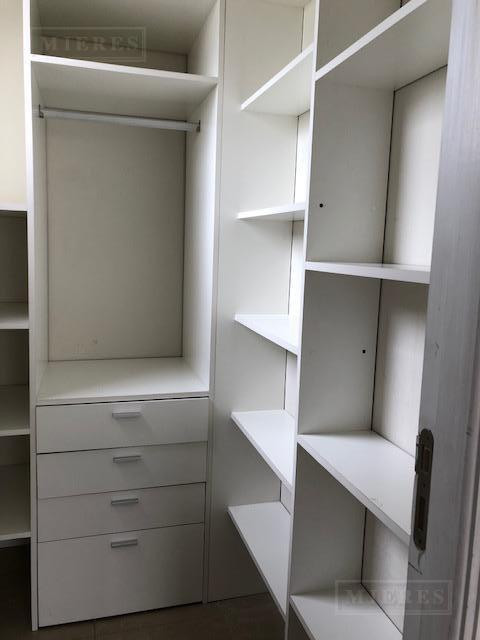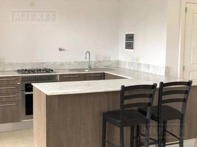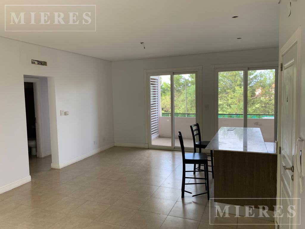Two-bedroom, single-level apartment for rent in Chateau del Palmar, Tigre. The unit has a living-dining room, a guest toilet, and an open-plan kitchen with a breakfast bar and access to a balcony with a grill. The two bedrooms include a dressing area and a full bathroom. Includes (assigned) parking space and a storage room. Radiant floor heating; air conditioning in the living-dining room and one bedroom. Available from May 2026.
