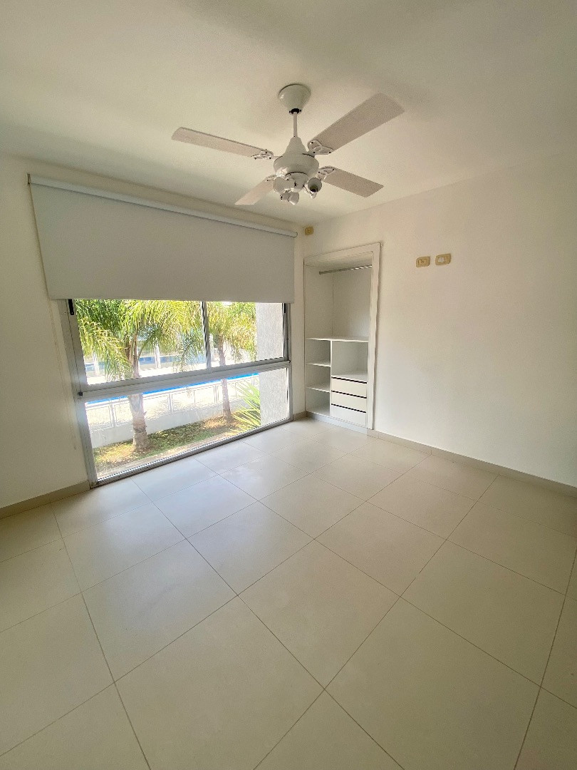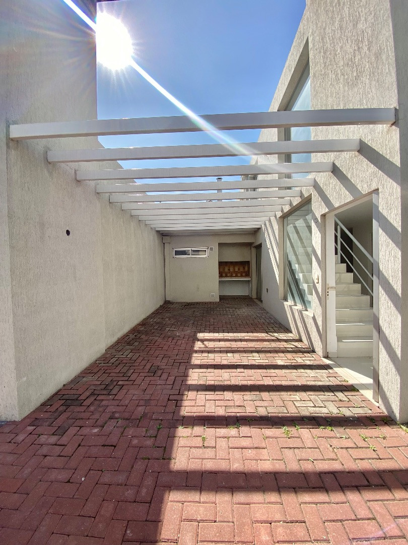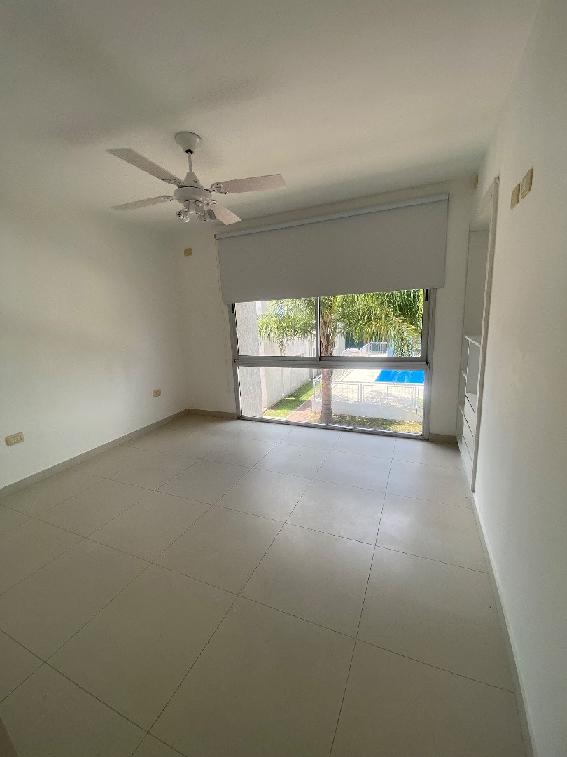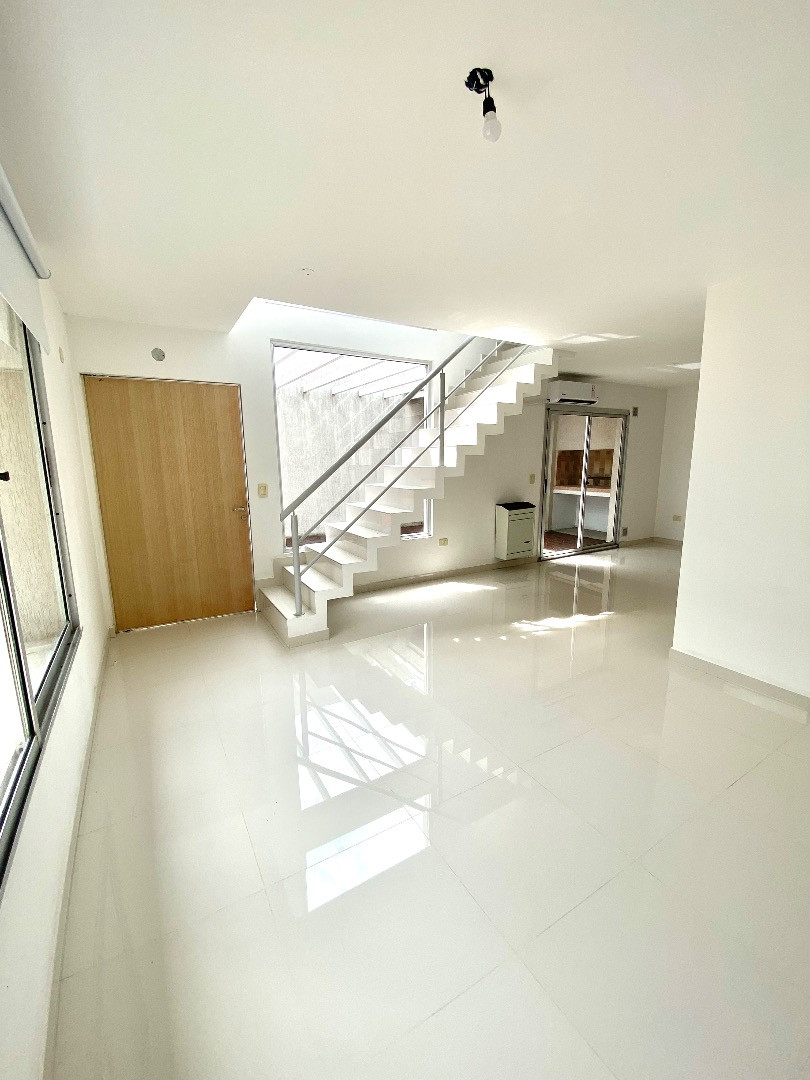 Duplex apartment within a gated complex in El Talar, Tigre. On the ground floor, it has a living-dining area with an integrated kitchen, air conditioning, a balanced flue heater, a half bathroom, and direct access to a grill area. Upstairs there are 2 bedrooms with built-in wardrobes, one with a ceiling fan and the other with access to a balcony, plus a full bathroom, a laundry area and a (assigned) parking space. The complex includes a pool and a gym, and allows one small pet. Building fees and