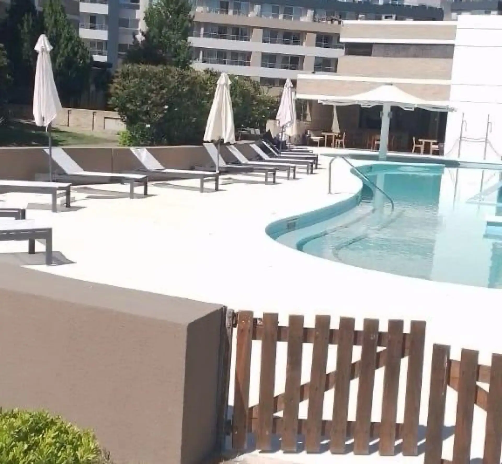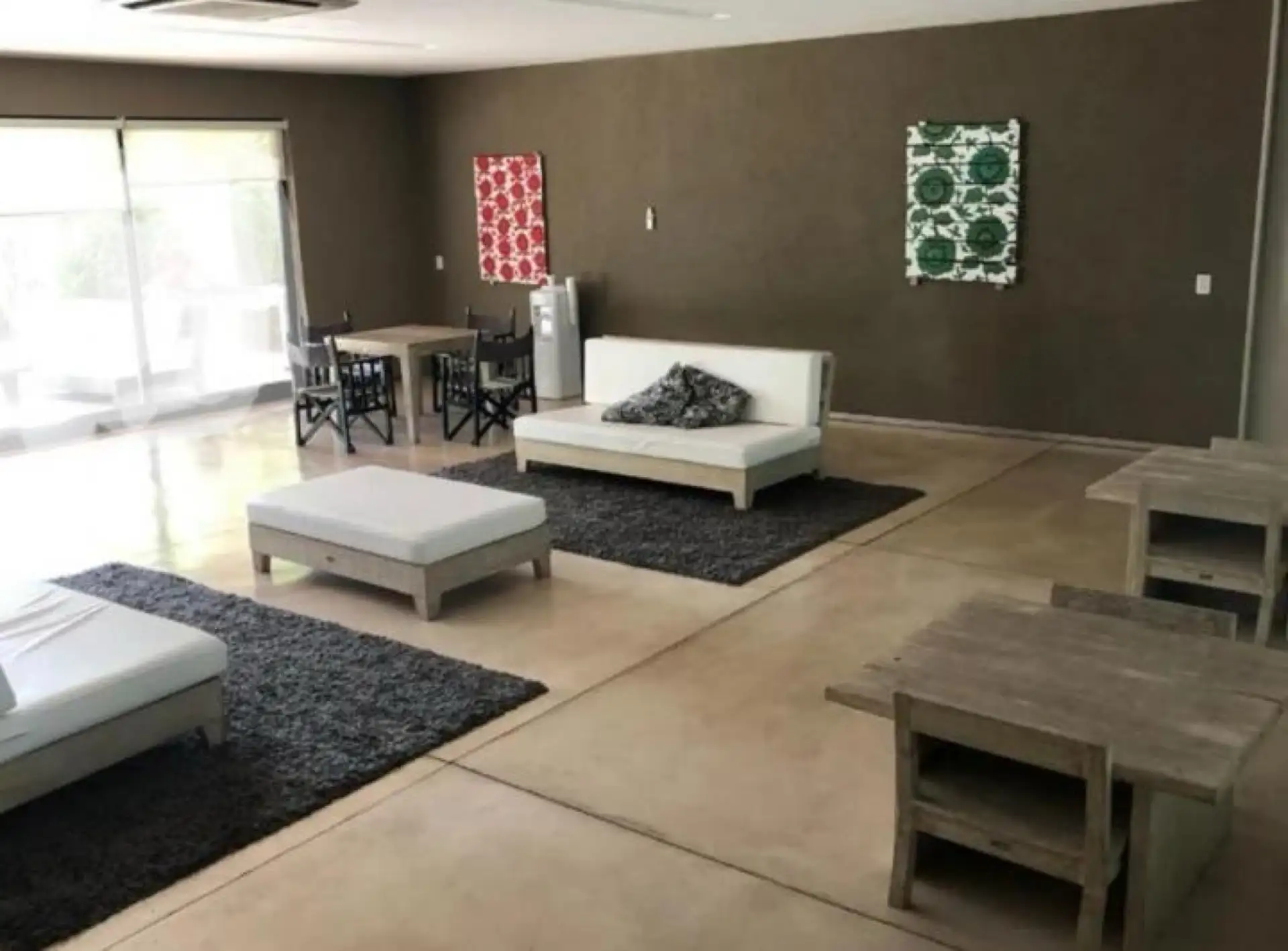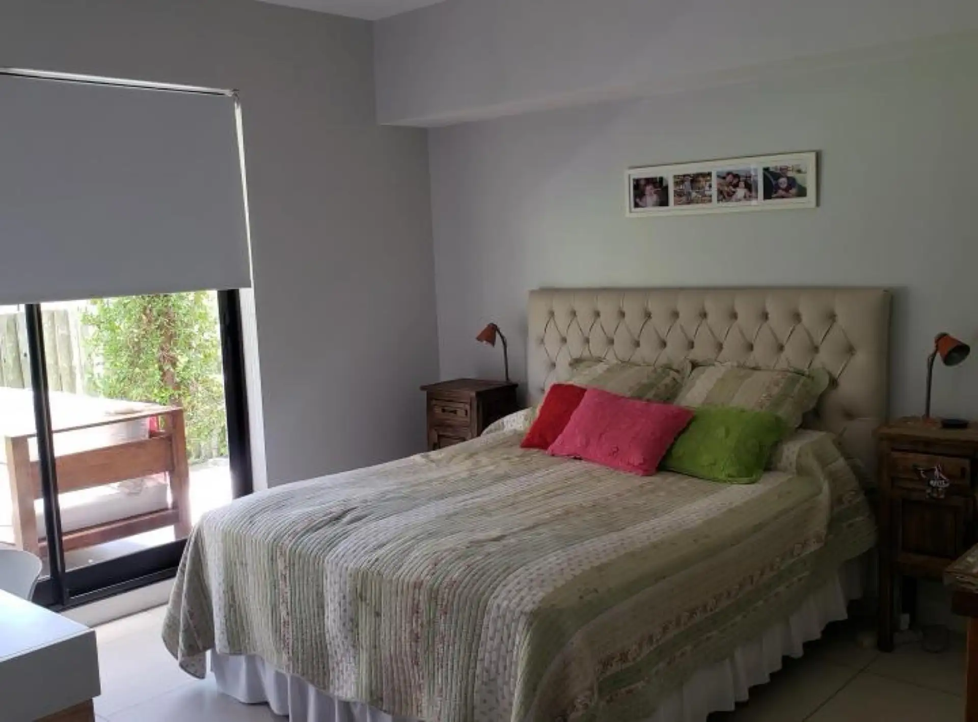 Ground-floor apartment with private garden in Quartier Nordelta, Tigre. Three rooms, furnished and fully equipped, with two bedrooms and two full bathrooms, the main bedroom with an en-suite bathroom. Living area with integrated kitchen and breakfast bar, air conditioning (heating and cooling) in all rooms, and an electric grill in the garden. The building includes 24-hour security, pool, sauna, communal room (SUM), BBQ area (quincho) with grill, gym, changing rooms, reading room and TV room, ch
