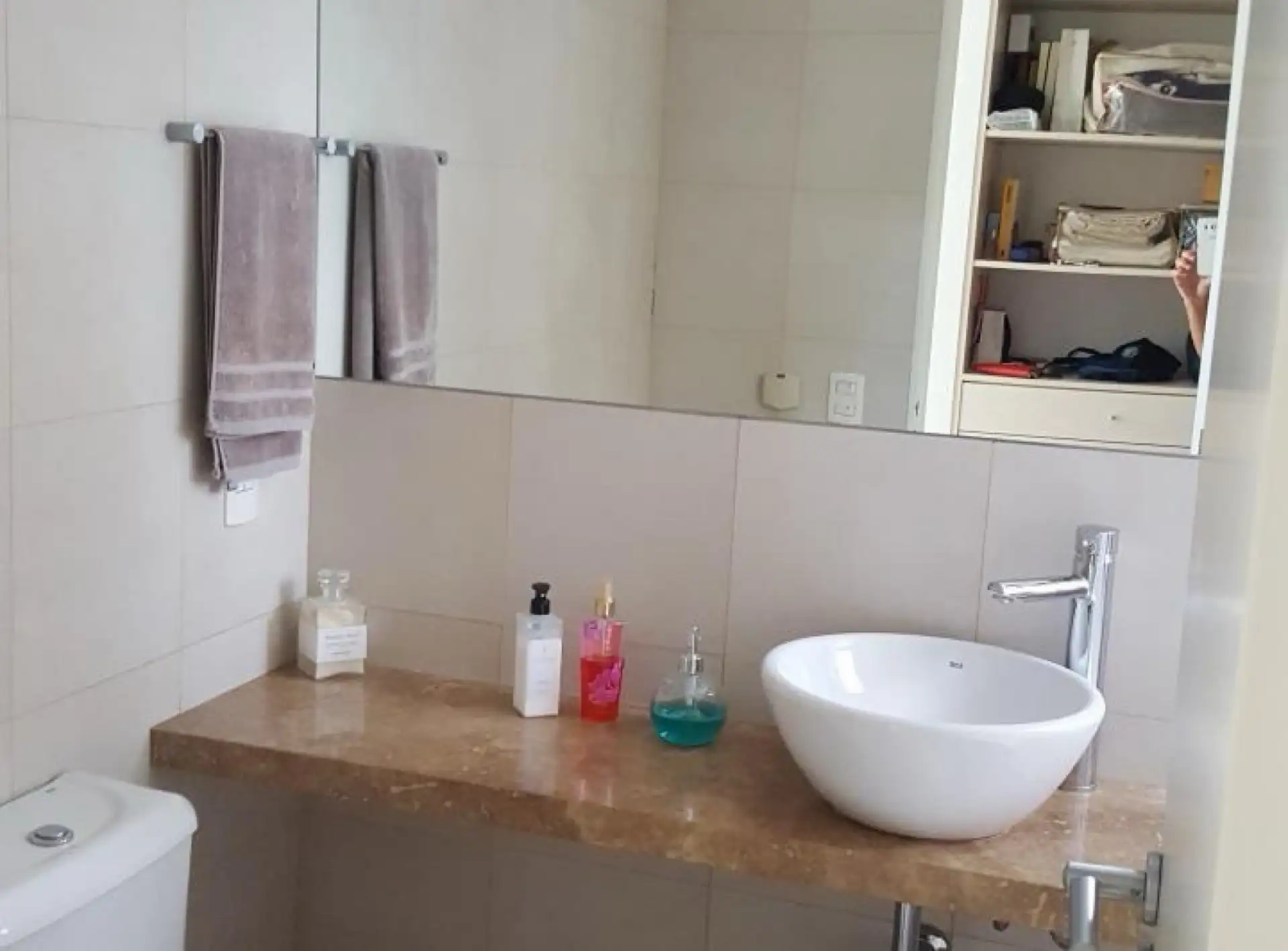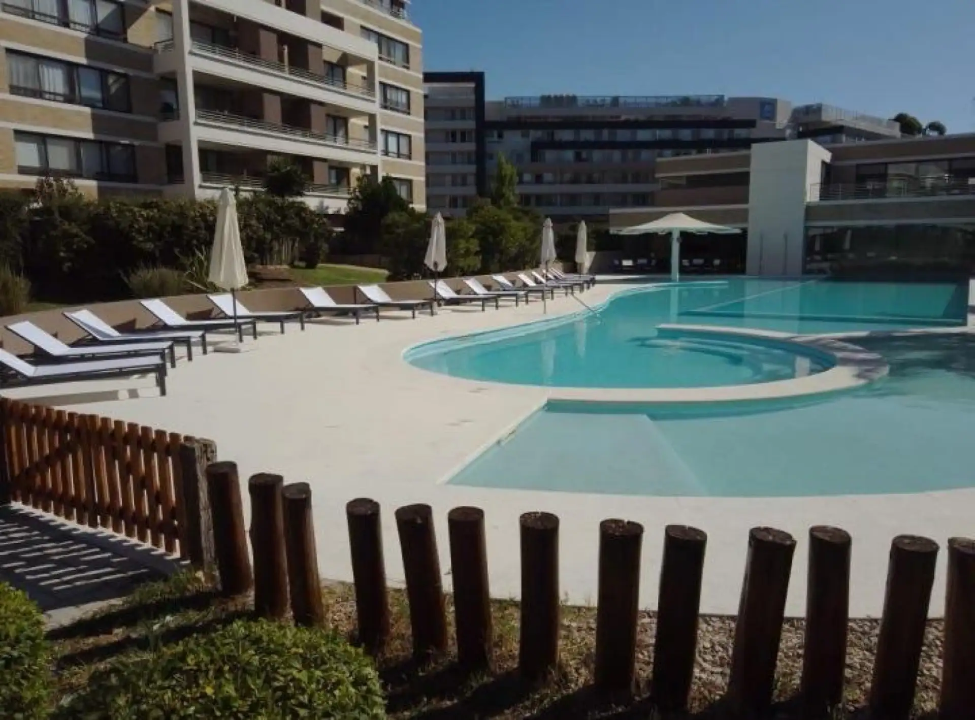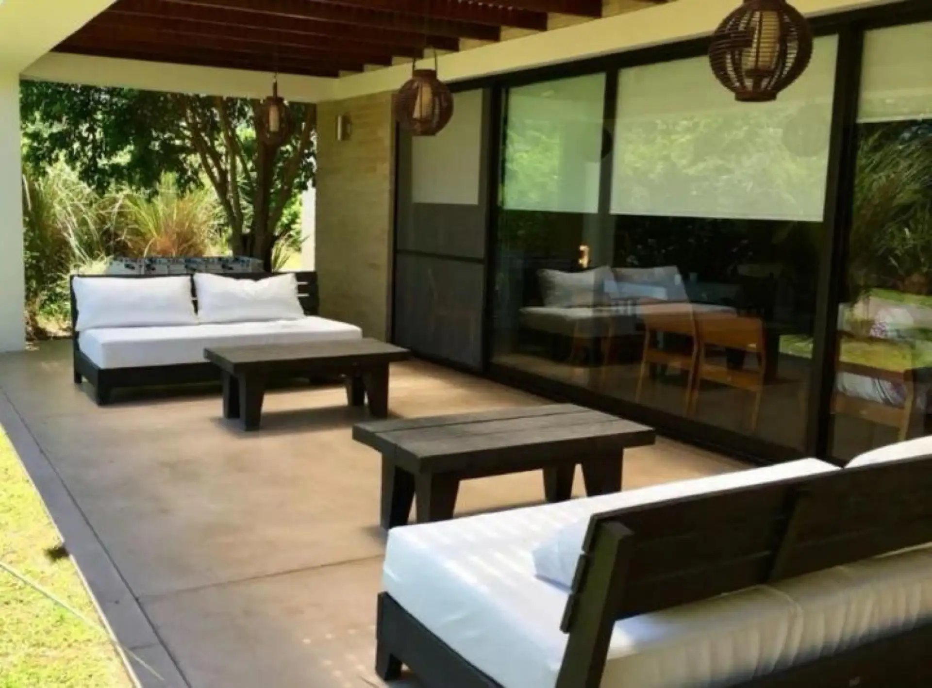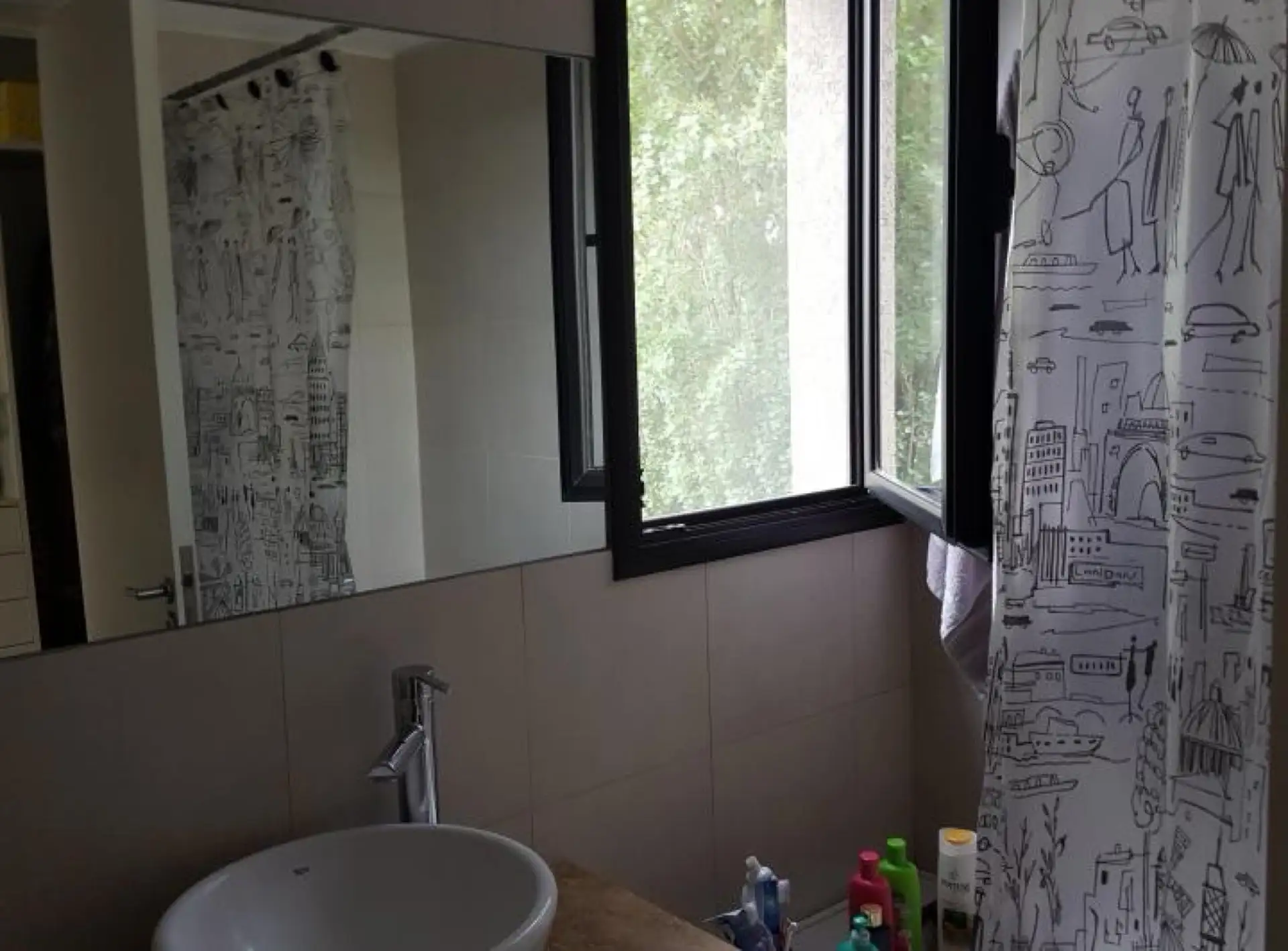 Ground-floor apartment with private garden in Quartier Nordelta, Tigre. Three rooms, furnished and fully equipped, with two bedrooms and two full bathrooms, the main bedroom with an en-suite bathroom. Living area with integrated kitchen and breakfast bar, air conditioning (heating and cooling) in all rooms, and an electric grill in the garden. The building includes 24-hour security, pool, sauna, communal room (SUM), BBQ area (quincho) with grill, gym, changing rooms, reading room and TV room, ch