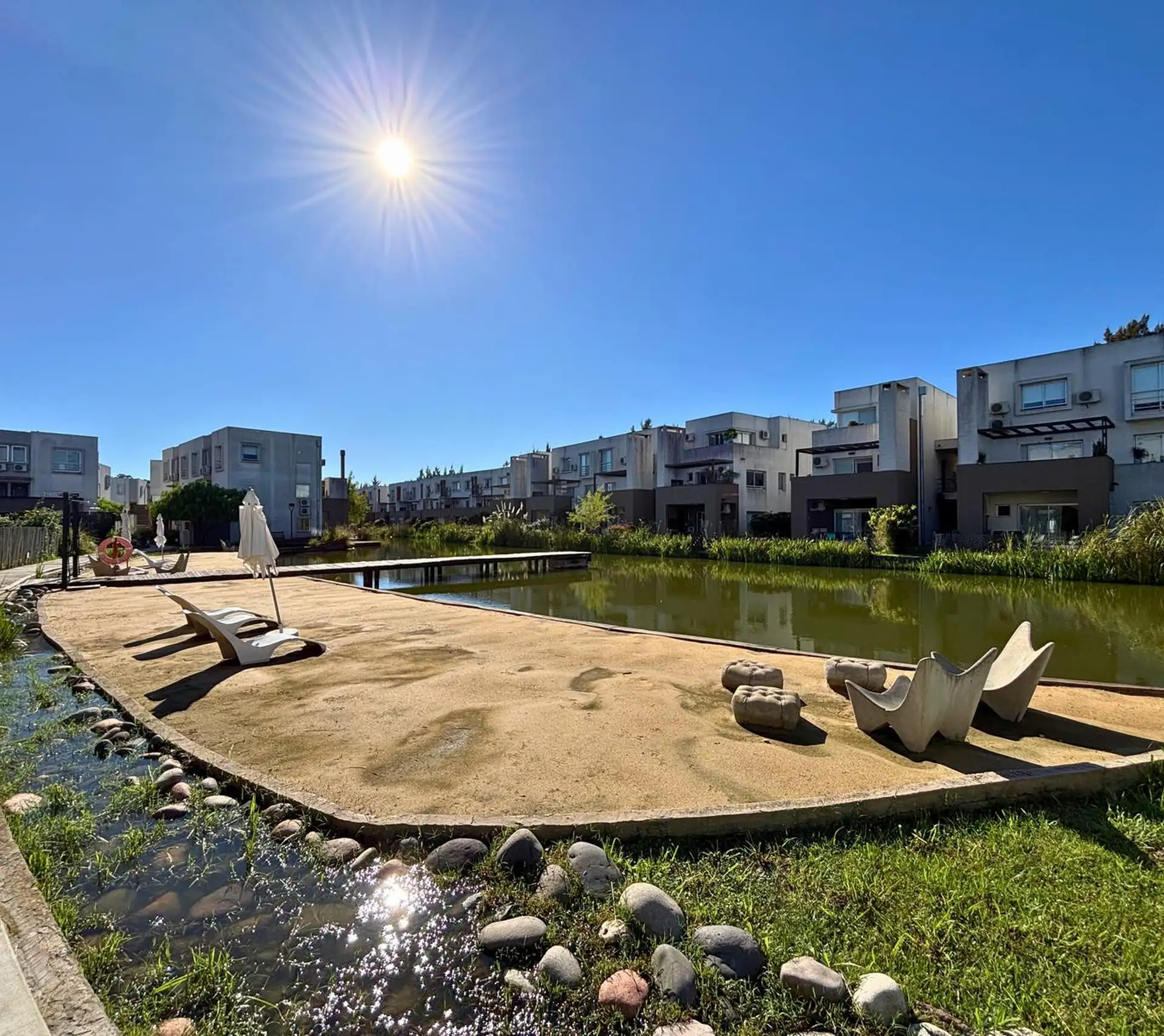 Two-room duplex apartment with lagoon view and parking in Nordelta