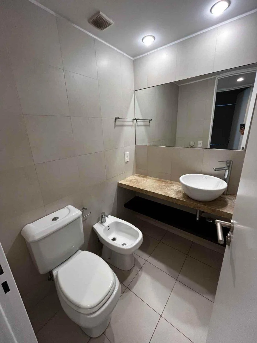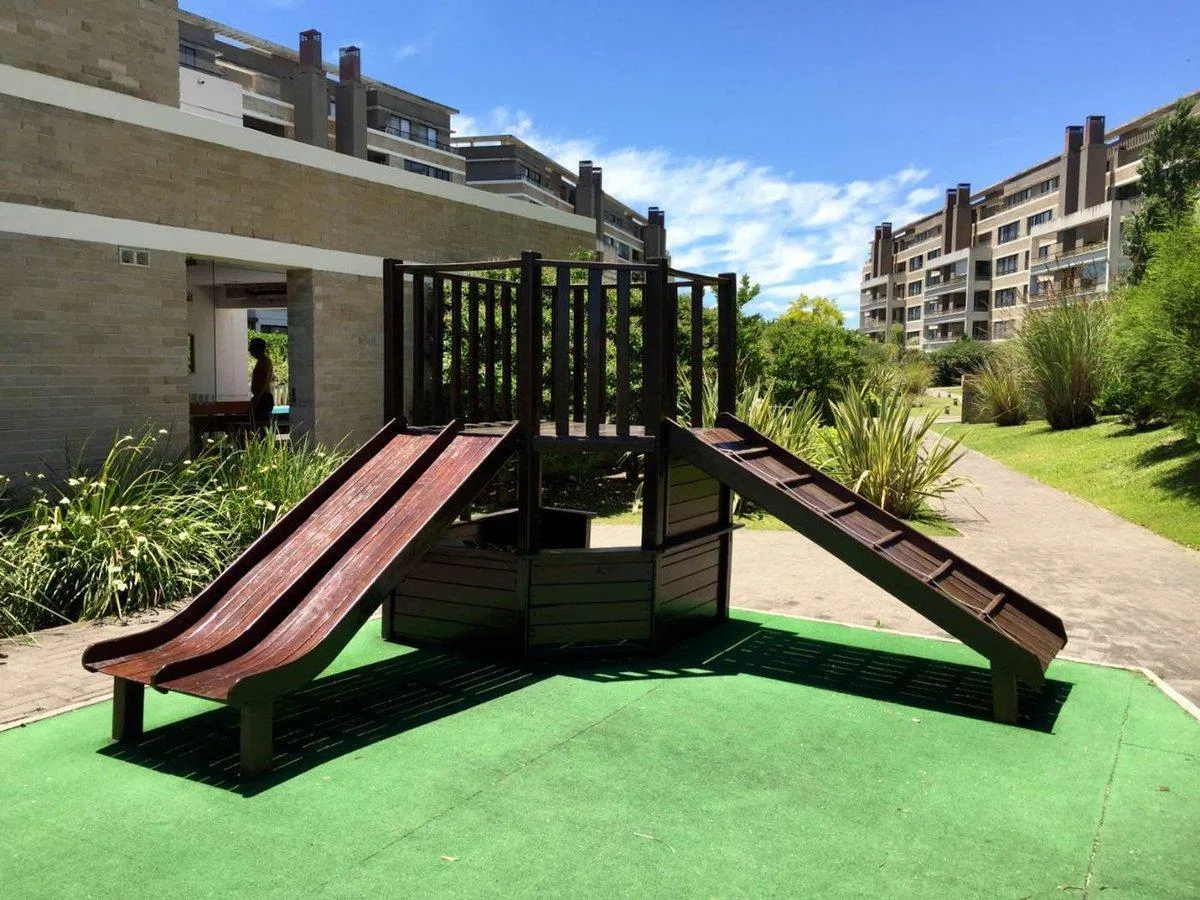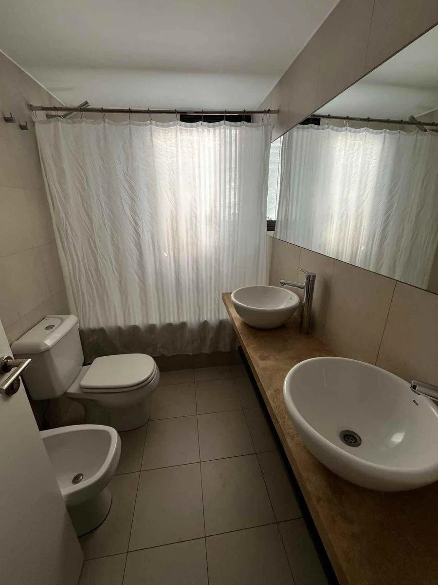 Three-room apartment on the 2nd floor in the Quartier Nordelta complex in Tigre, with a balcony and private covered BBQ (parrilla). It has an open-plan living, dining and kitchen area, 2 bedrooms, and 2 full bathrooms (both with bathtubs), with the main bedroom including a dressing area and an en-suite bathroom. The unit has multi-split air conditioning in all rooms and electric radiant floor heating; there is no gas. A fixed parking space is available in the basement with access via a ramp. Bui