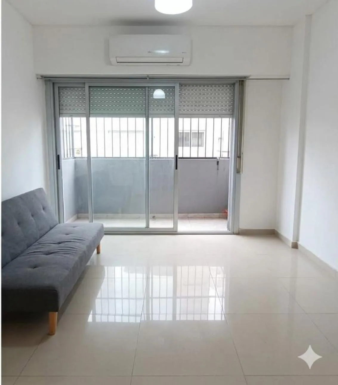 Three-room apartment with a long balcony and a patio. The unit has a living-dining room with access to the balcony, a dining kitchen with a patio and laundry area, and 2 front-facing bedrooms with built-in wardrobes. There is 1 full bathroom with a bathtub. The building has an elevator. Available from May 26 on a 2-year lease, with quarterly rent increases indexed to IPC. Rental requirements include a rental guarantee bond or a property guarantee, plus advance payment of one month, a deposit of