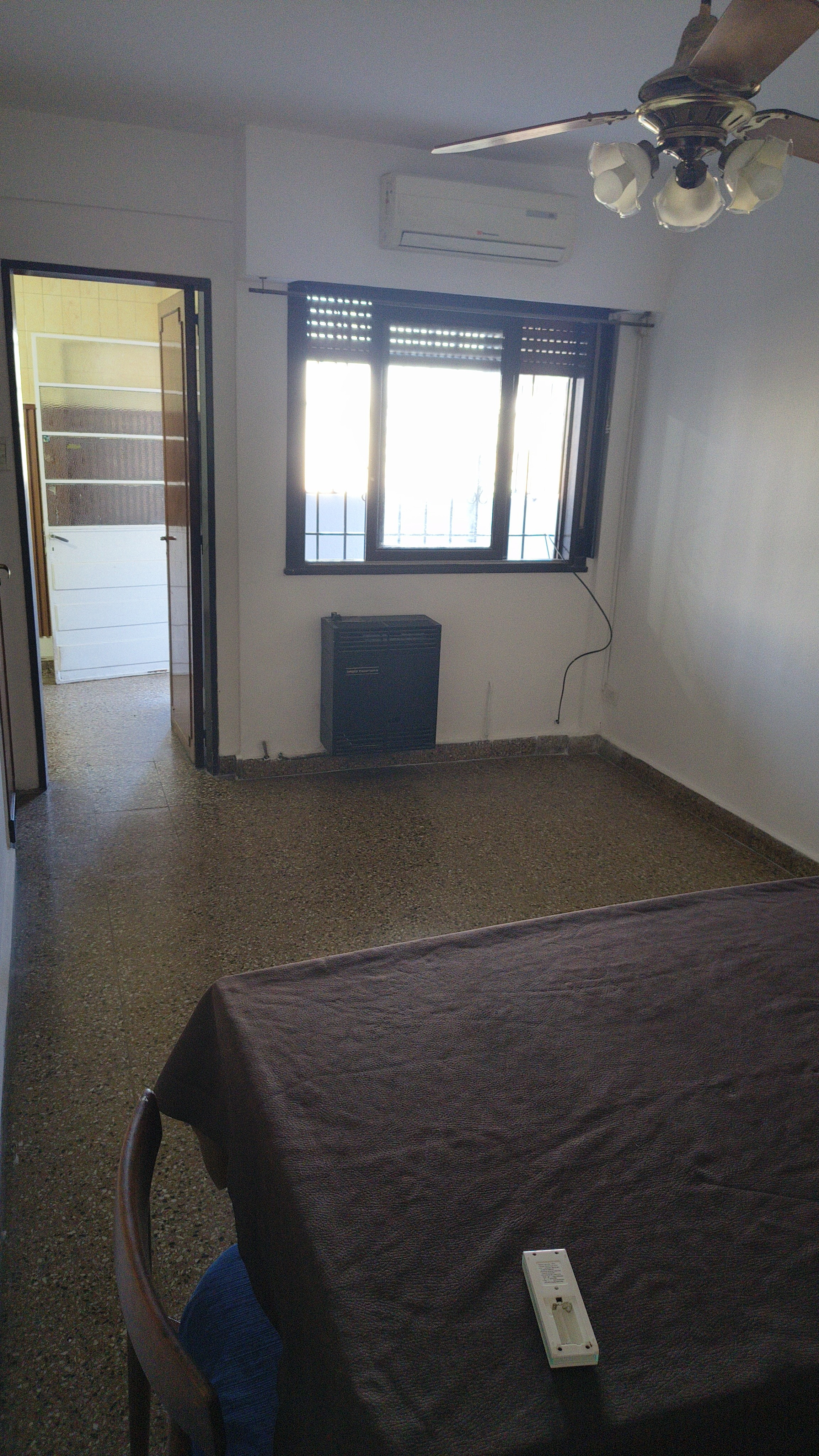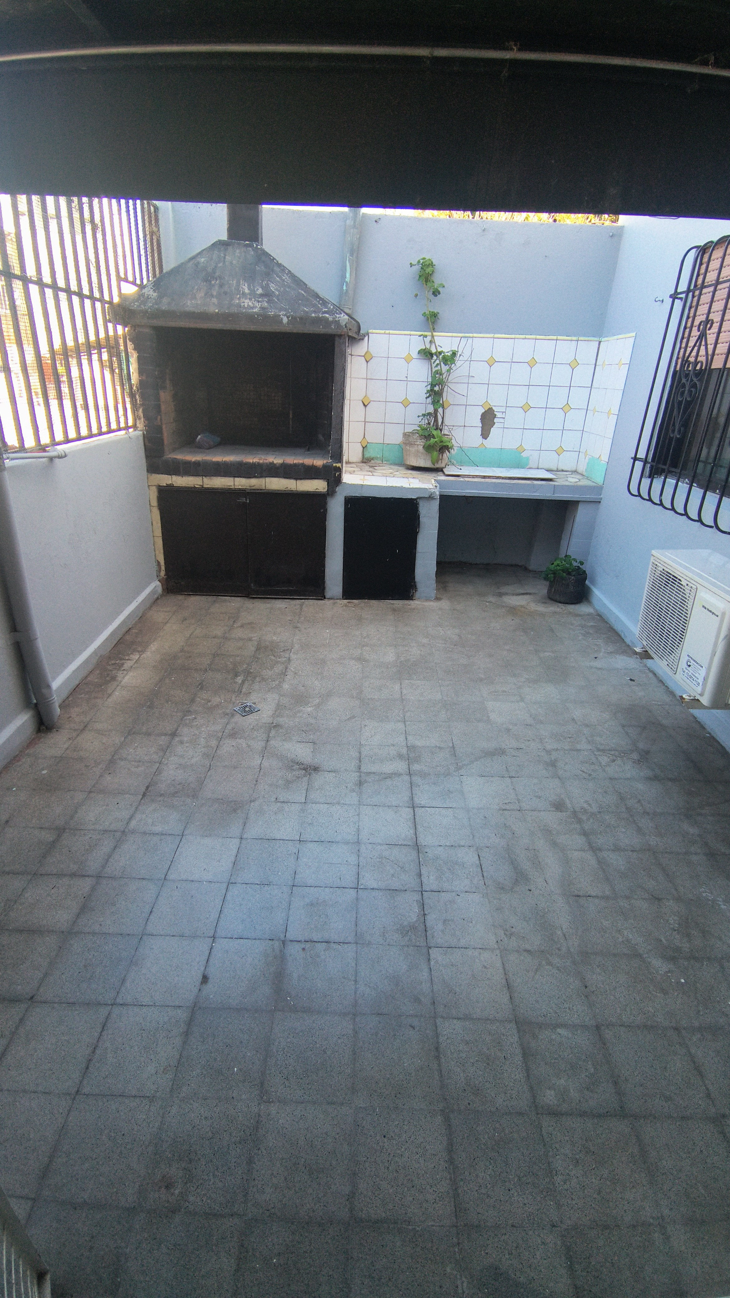 Three-room apartment on the ground floor with no building fees (sin expensas). The unit includes a 5 x 4 m living-dining room with cold air conditioning and a stove with chimney, a daily eat-in kitchen of about 3.50 x 3.50 m, two bedrooms with built-in closets and a second stove with chimney, and a full bathroom. There is a patio with a grill and a connection for a washing machine. Pets are not allowed. Lease length is 24 months with quarterly adjustments based on the IPC index, requiring a firs