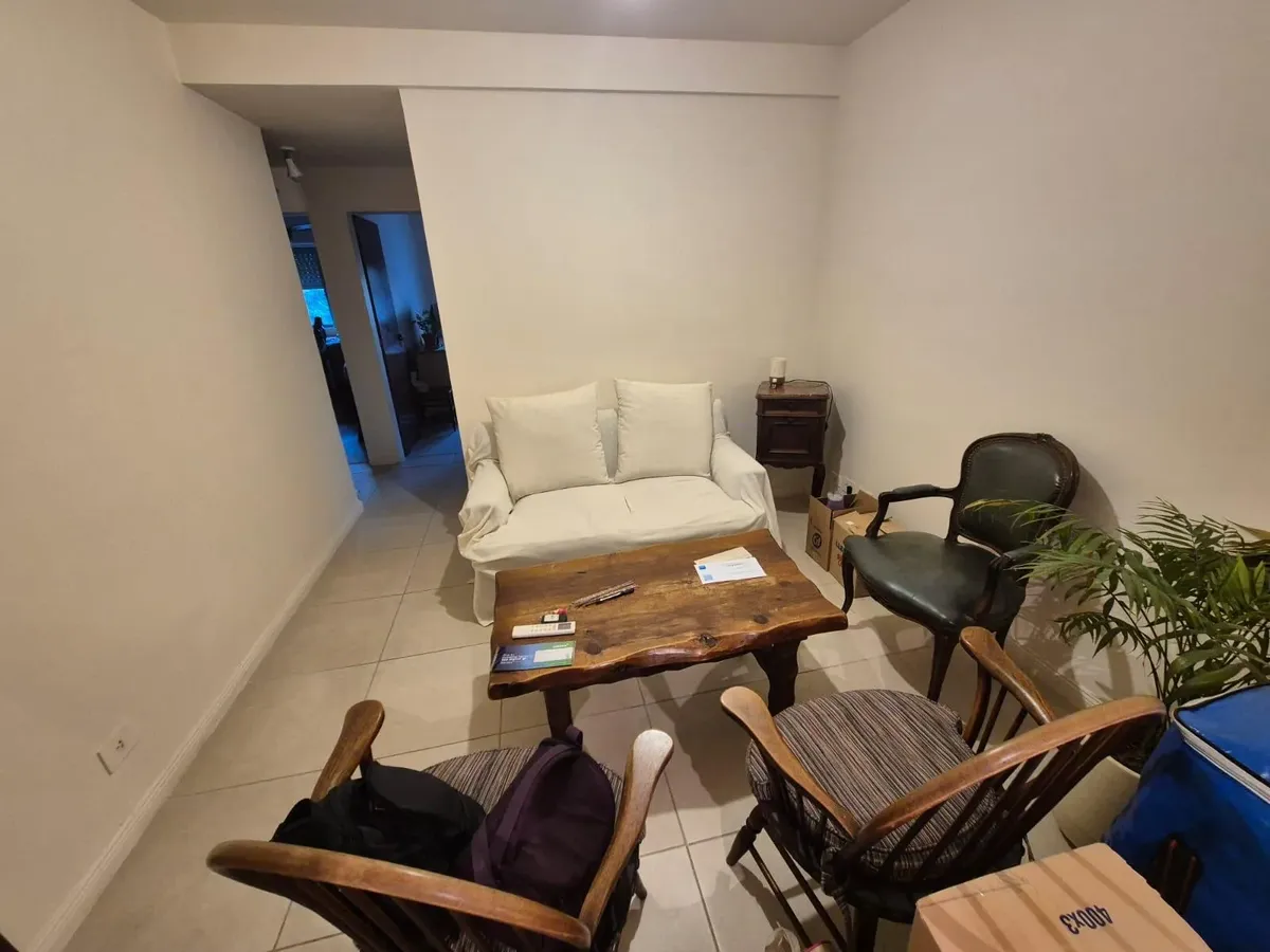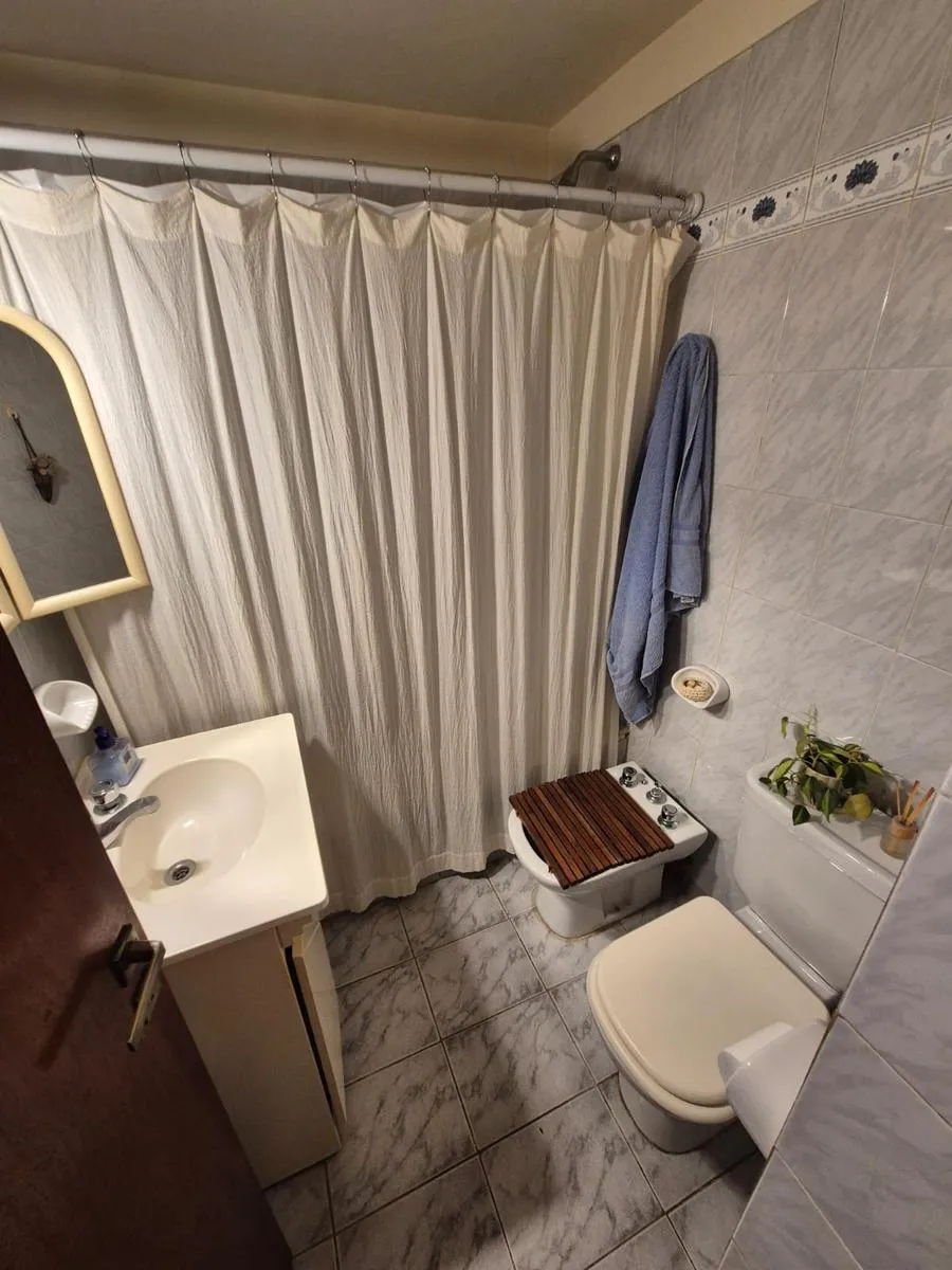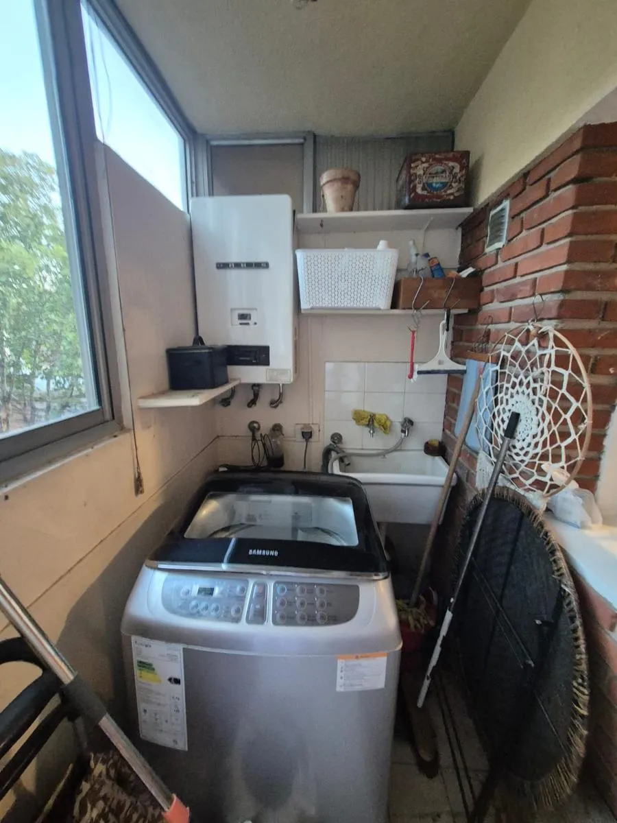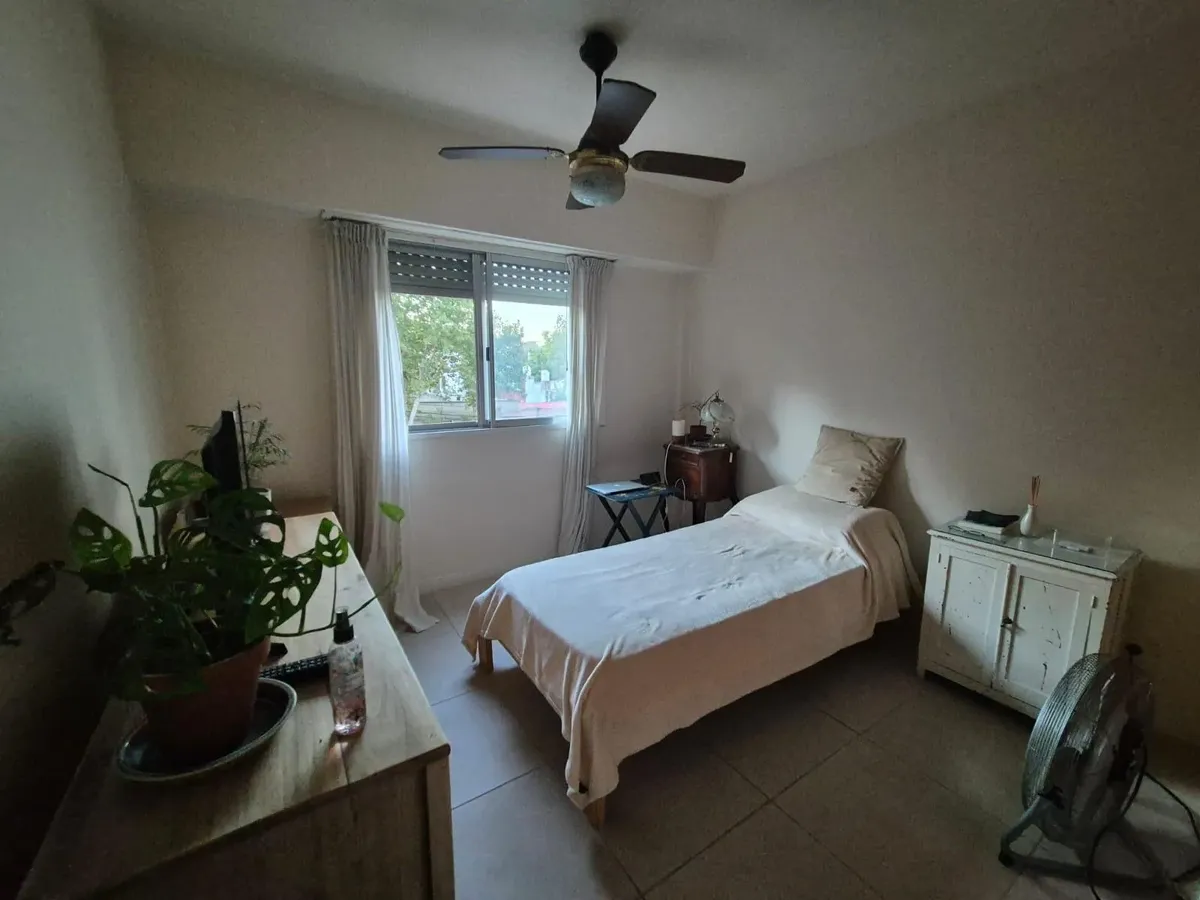 Three-room apartment for rent in Victoria, available from April 2026. It has 1 full bathroom, a kitchen, and a living-dining room with a balcony street-facing to Calle Dorrego, plus a small laundry area with a washing-machine connection. The building has no elevator and the unit has no (assigned) parking space. Ceramic flooring, heating with split air (hot/cold), an electric heater plate, and a gas stove. Building fees for March 2026 are $150,000.