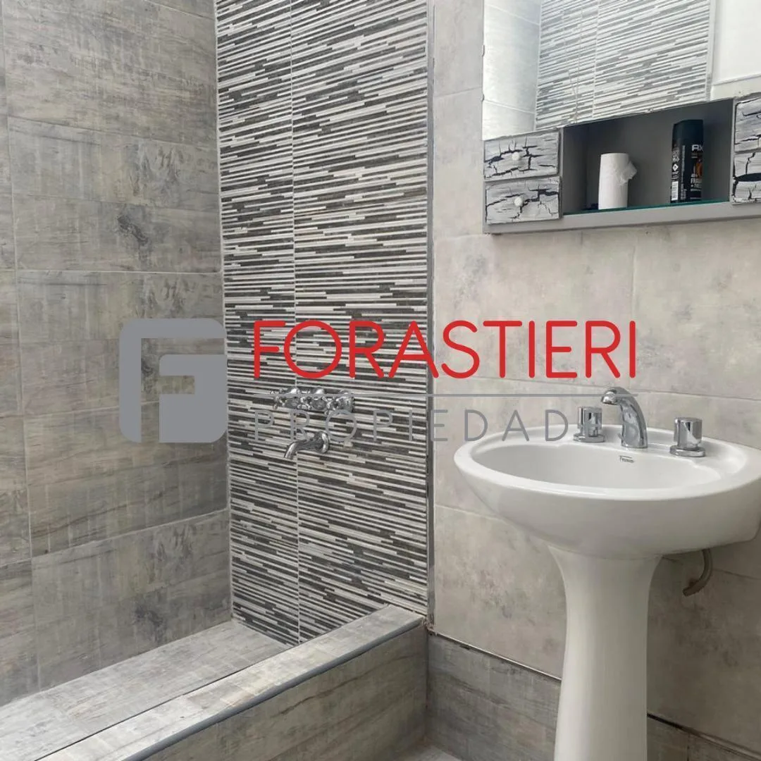 House with 3 rooms in San Fernando, available from May, with 2 bedrooms and 1 full bathroom. On entry there is a living-dining room with built-in furniture, plus two bedrooms and a full bathroom. The unit has a rear laundry area, a grill, and a shed opening to a patio, with parking space for 3 vehicles. It is a few blocks from Polideportivo N°1 and from Av. Sobremonte and Av. Avellaneda.