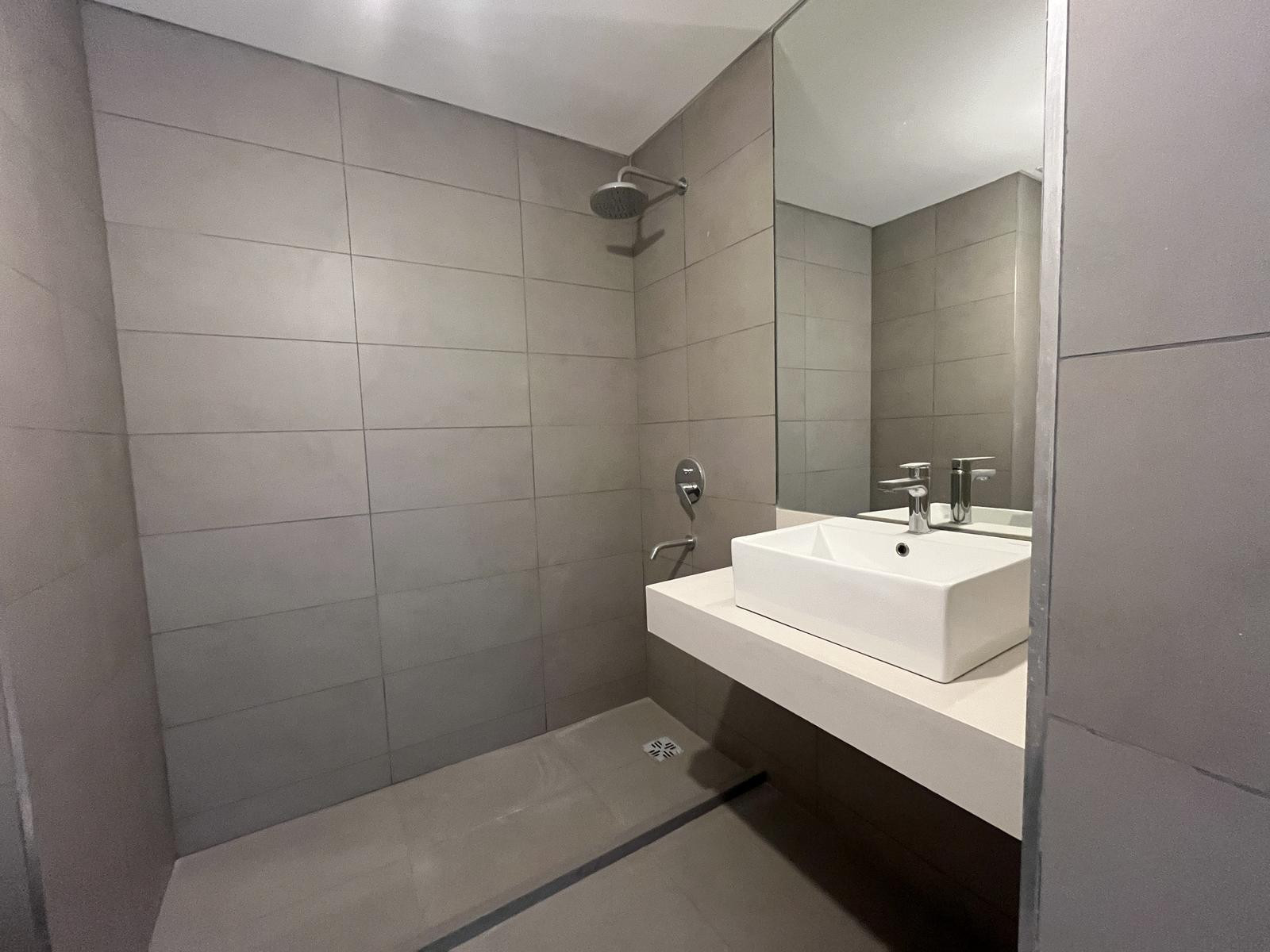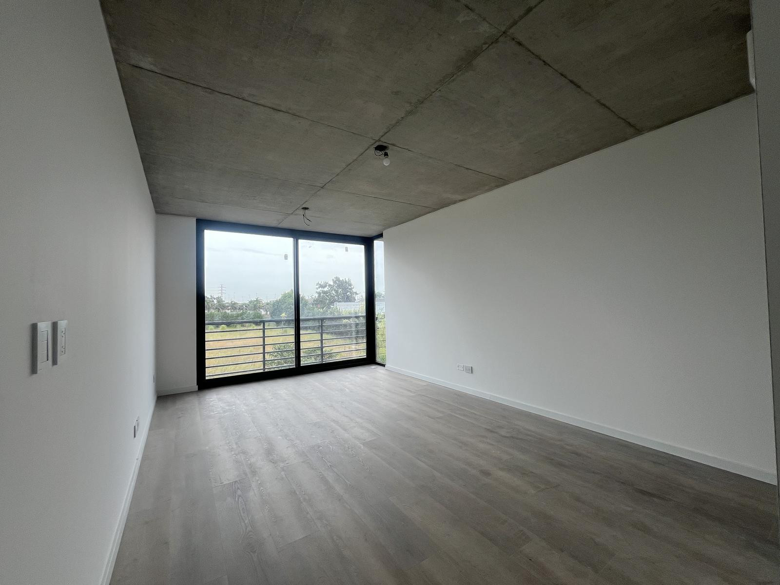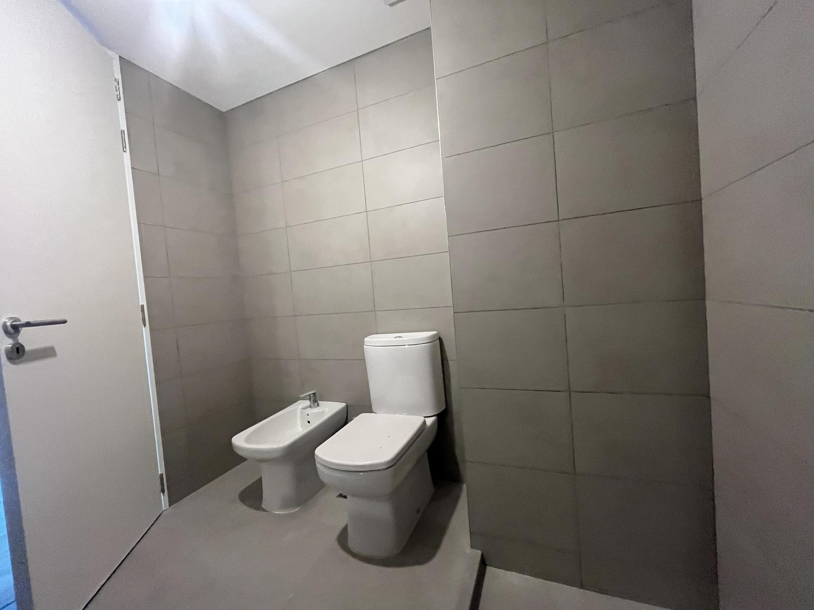 New professional suite-style apartment on the first floor with a parking space (cochera) and a storage room (baulera). Unfurnished (sin amoblar). Building fees are $215,000, and the listed price requires adding a equipment fund plus an approximate possession payment of USD 10,000. The building has a reception area, three elevators, meeting rooms/co-working, 24-hour security, a communal room (SUM), a rentable BBQ area (parrillas), a gym, a pool, and laundry.