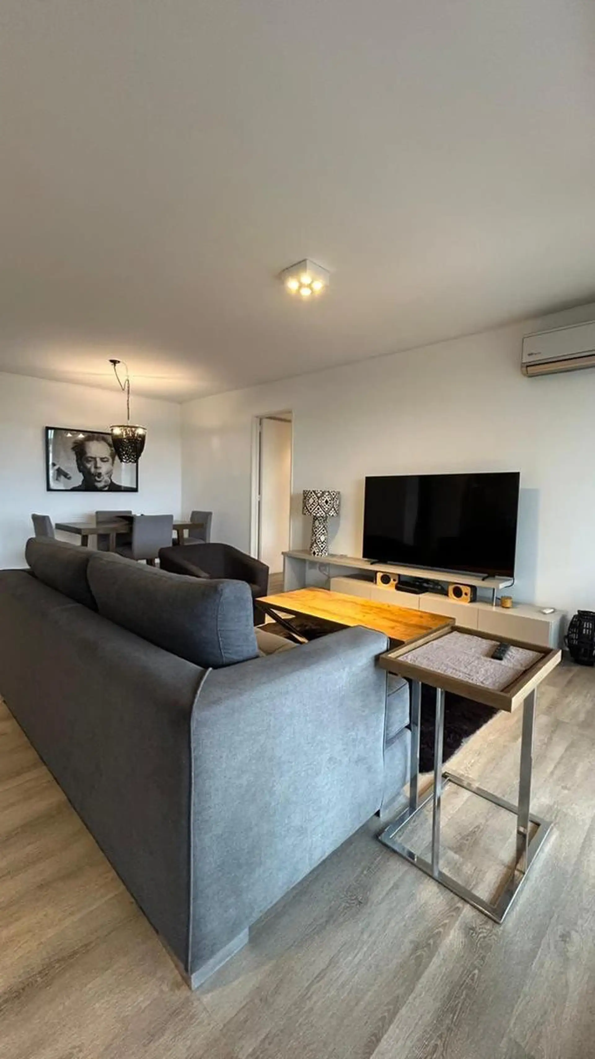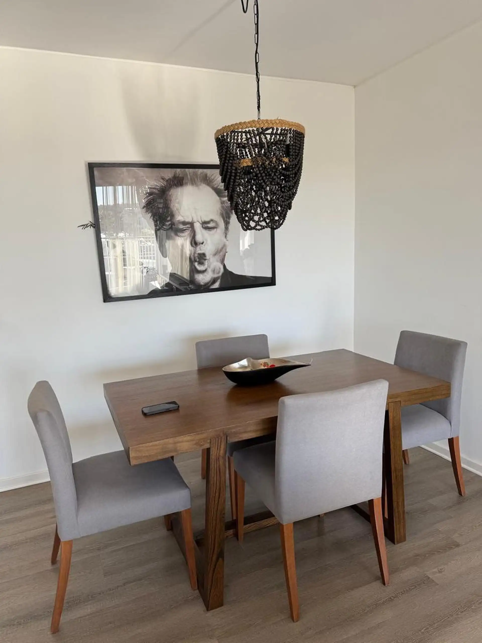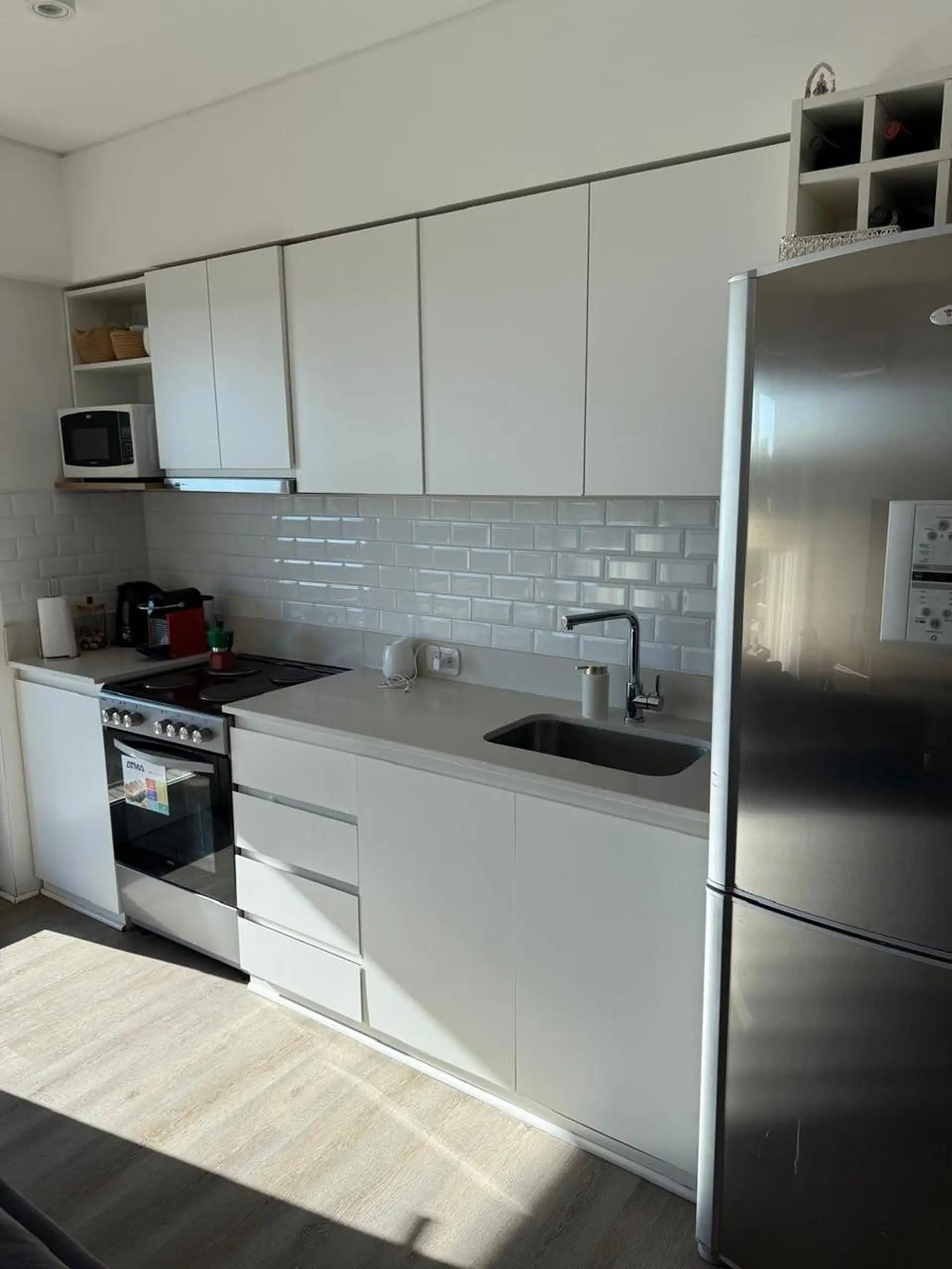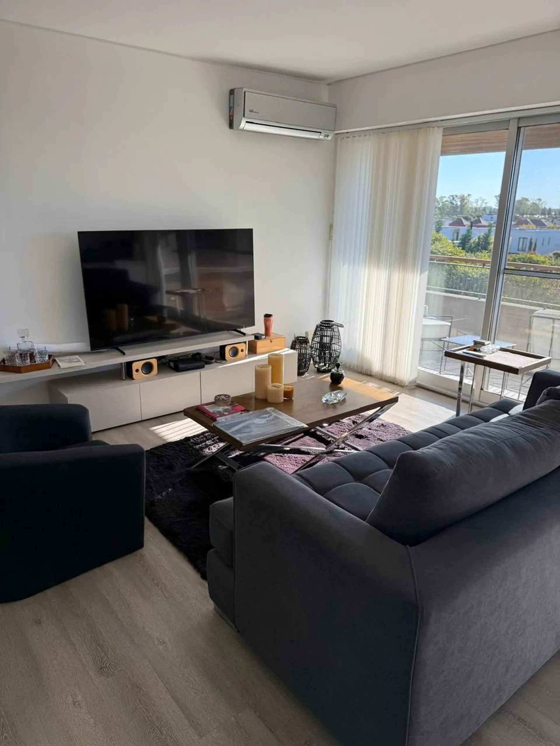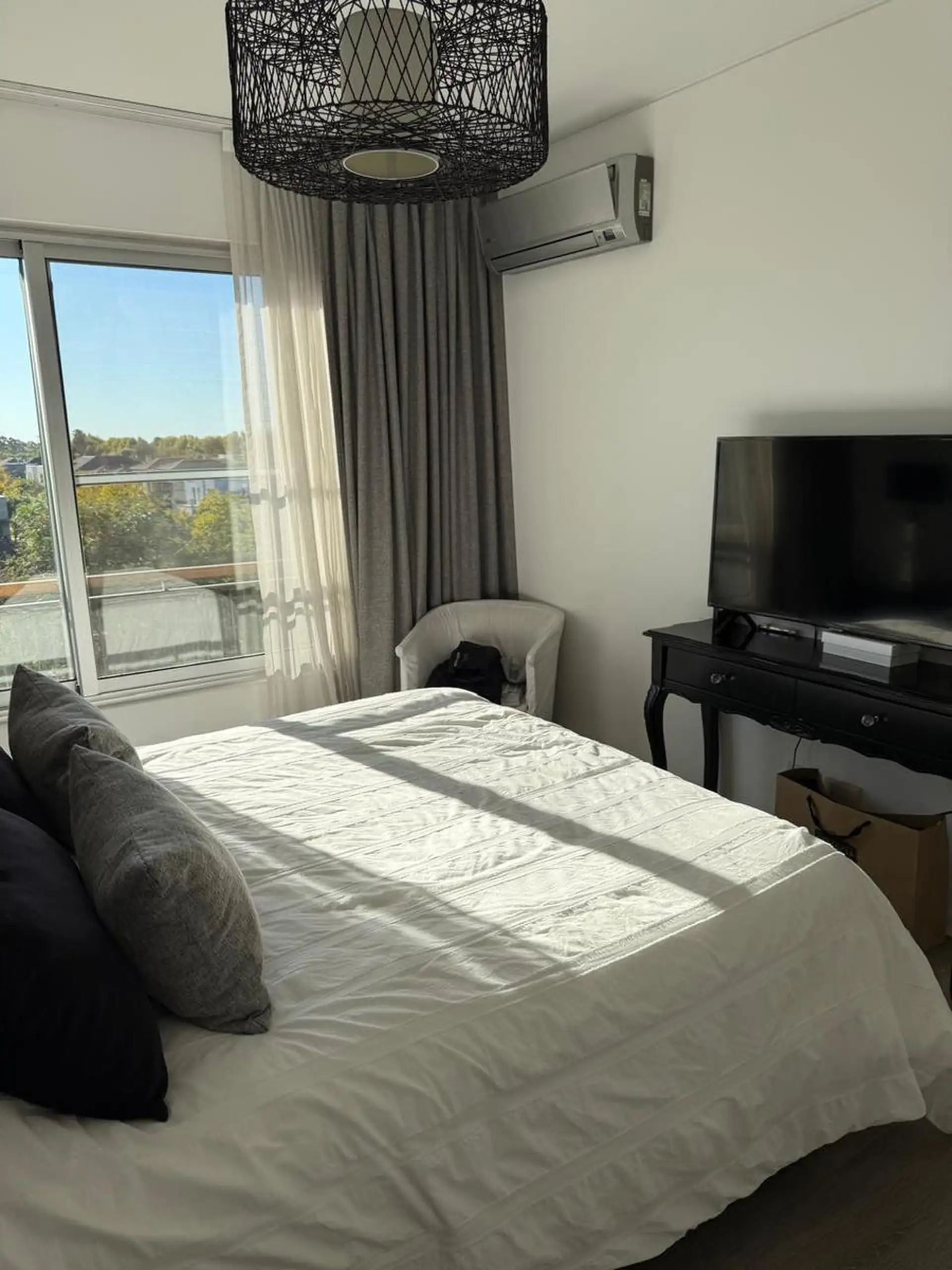 Fully furnished two-bedroom apartment in Quartier Buenavista, San Fernando. Layout includes a living-dining room, open-plan kitchen, main suite with dressing area, a second room, a full bathroom, and a balcony overlooking the pool. Double-glazed aluminium windows. Includes a covered assigned parking space and a storage room. The complex has a central pool with deck, gym, 24-hour security, clubhouse, laundry, day nursery, residents’ lounge and sauna, with quick access to Panamericana.
