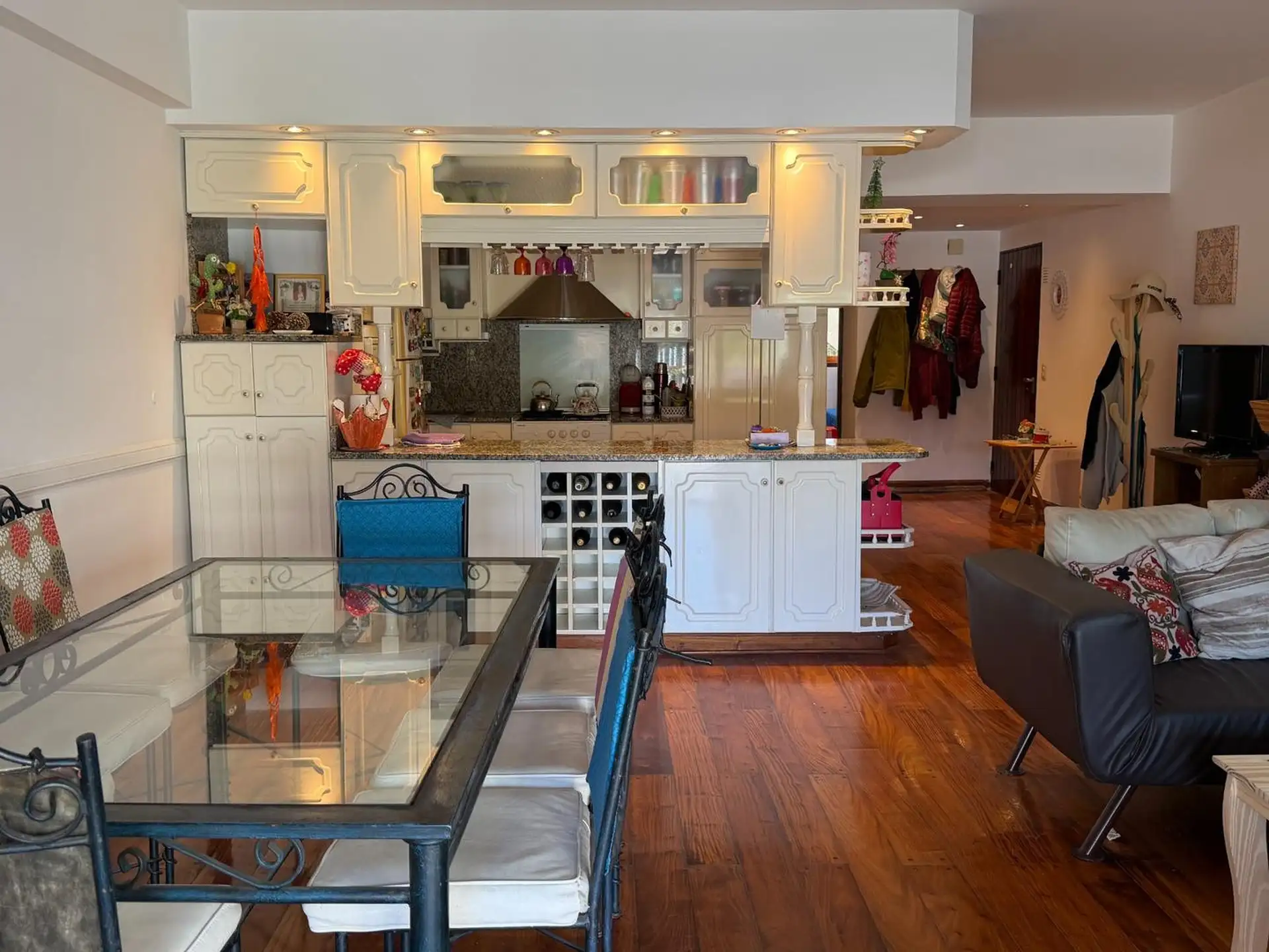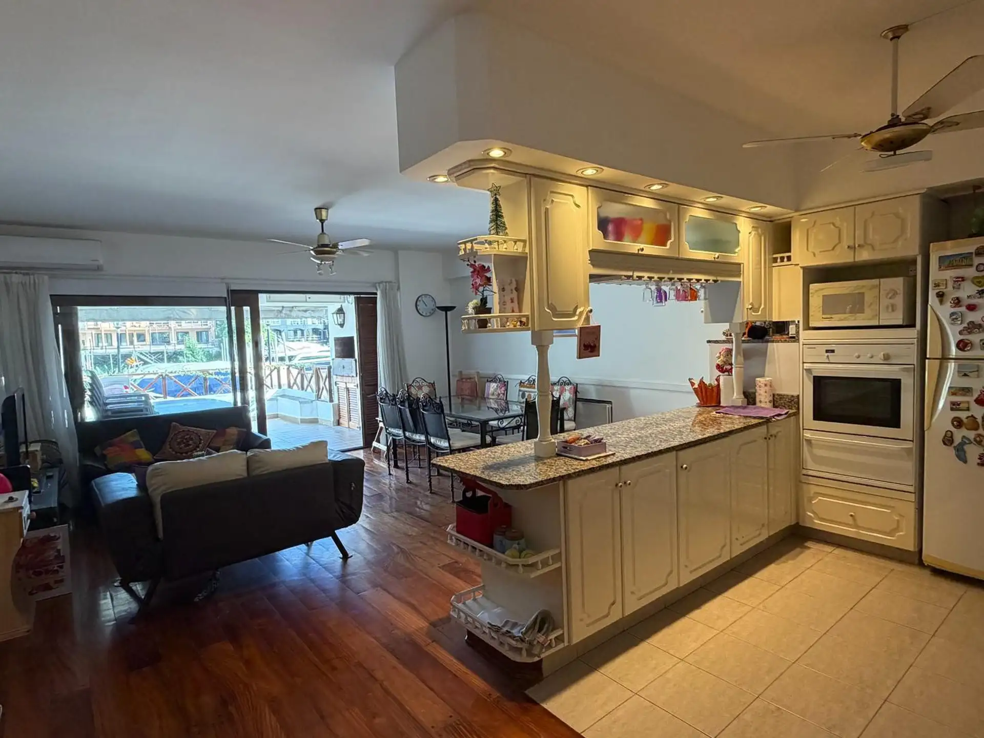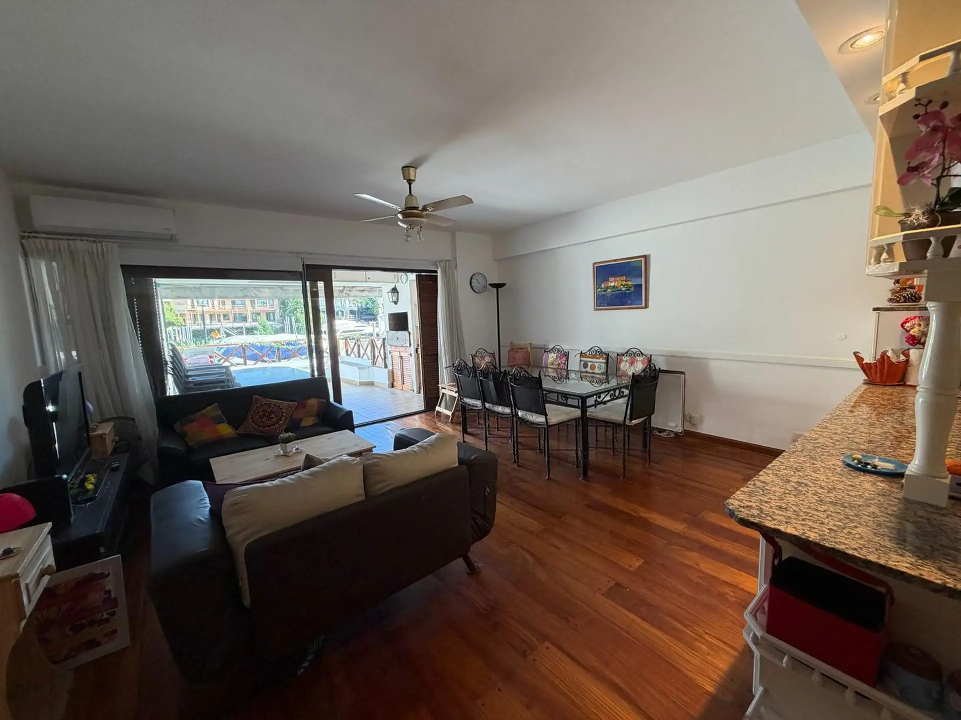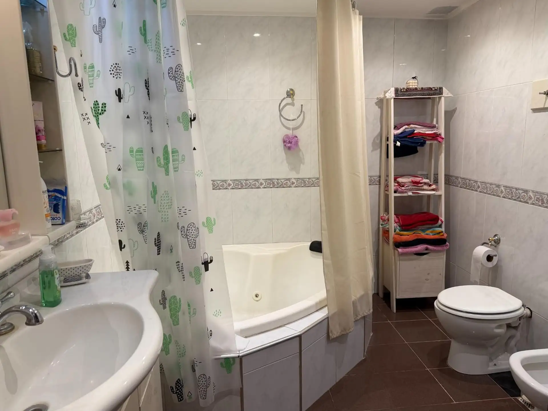 Three-room apartment in Barrio Náutico with open views over the bay. The living-dining area opens directly onto a terrace where there is a laundry area and storage space. The kitchen has an integrated breakfast bar. The main bedroom includes built-in wardrobes and a toilet, while the second bedroom is smaller and can be used as a bedroom or an office. There is a full bathroom with a jacuzzi and an uncovered parking space included.