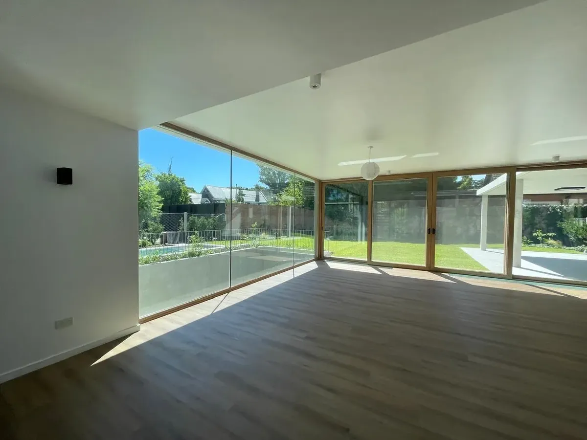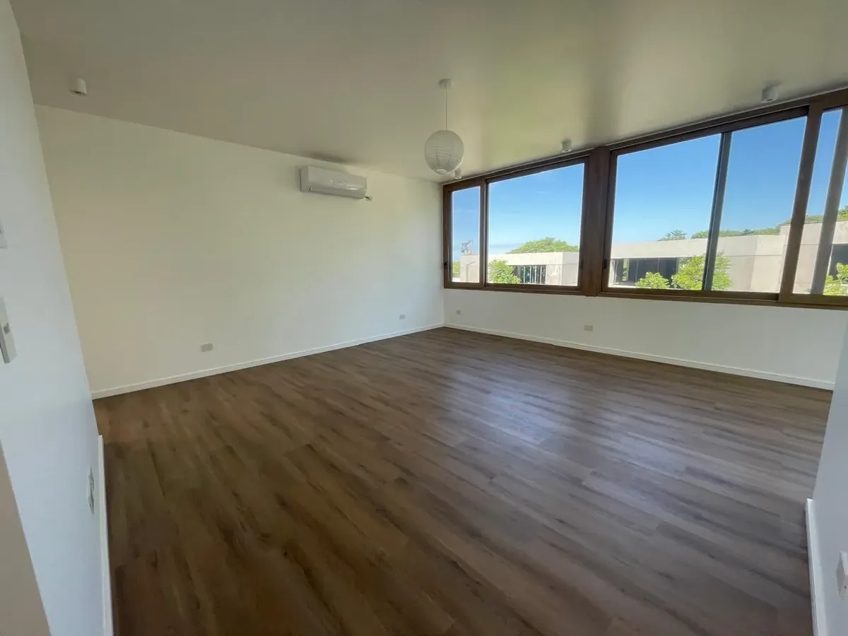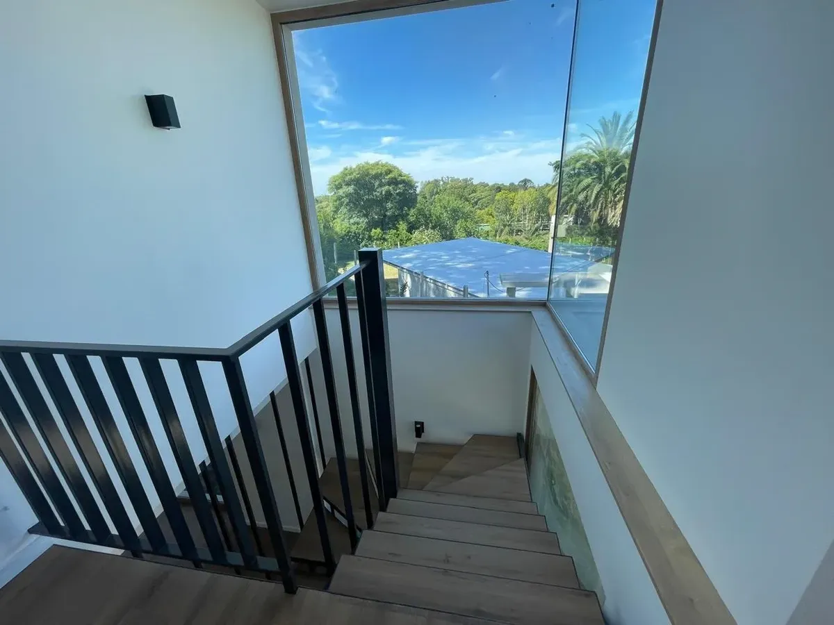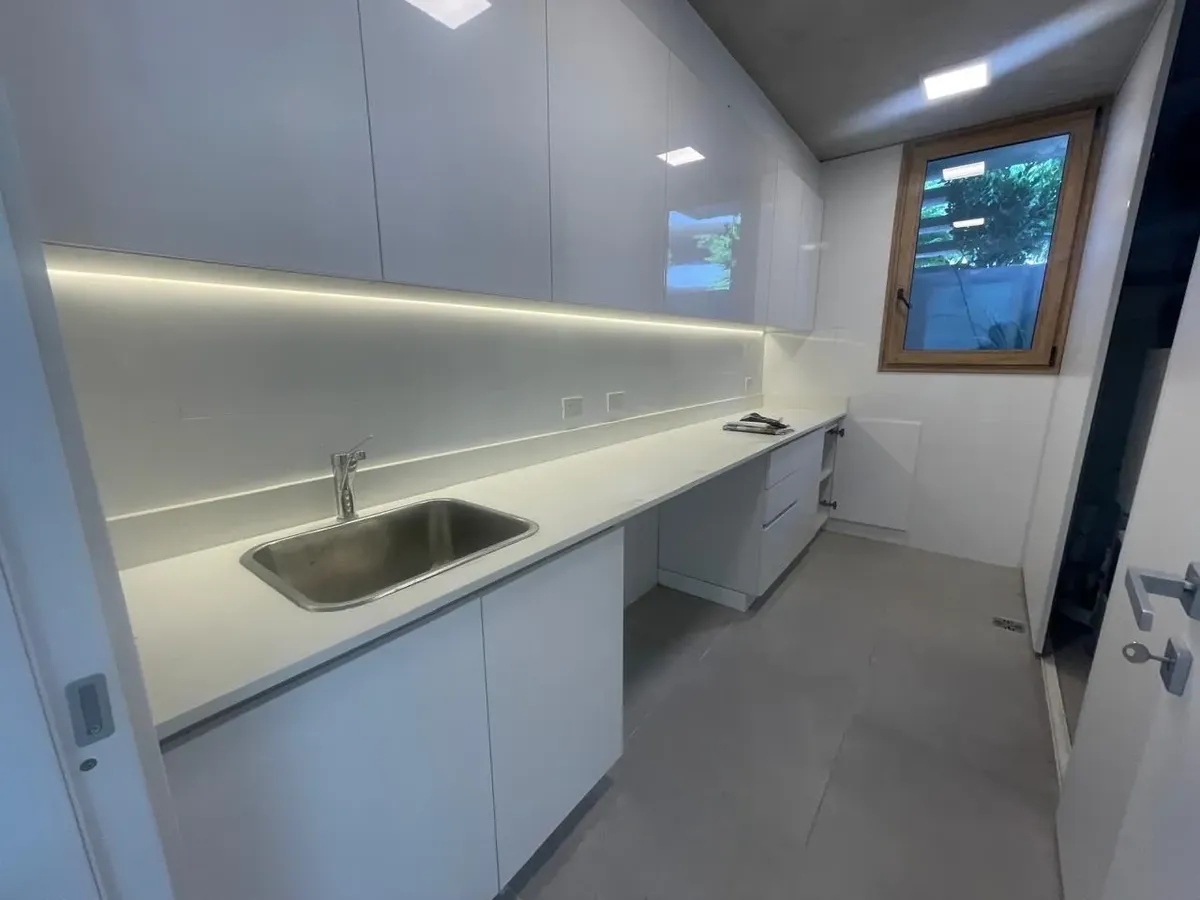 House in Vizion Punta Chica, a complex of 10 detached units. Spread over three levels, it has a living-dining room with direct access to the garden, a semi-integrated kitchen, and a guest toilet. On the upper floor there is a primary suite with a private terrace, two additional bedrooms, a full second bathroom, and a living area for an office or playroom. The basement includes an extra bedroom, a full bathroom, a playroom or multifunction space, a separate laundry area and a machinery room. The