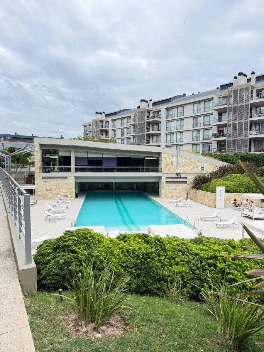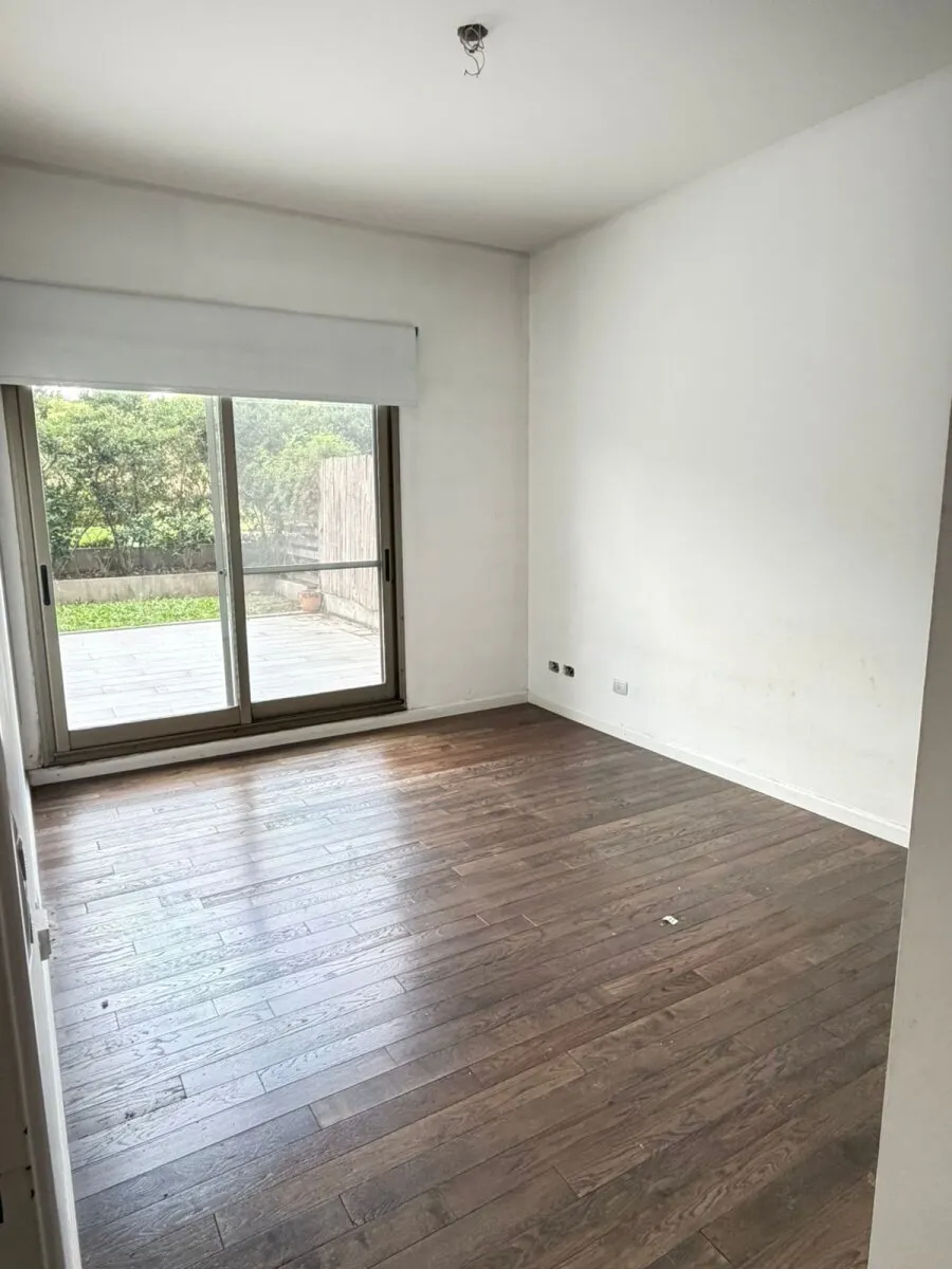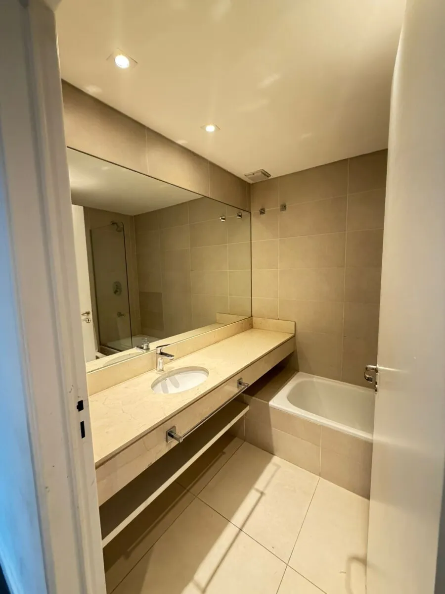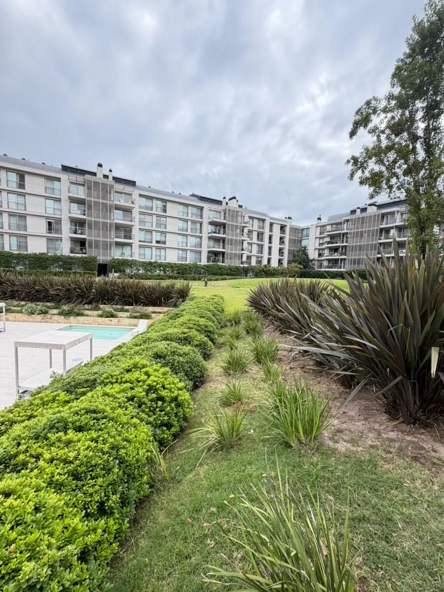 Ground-floor three-room apartment with a private garden. It has 2 bedrooms, one en suite with a dressing area and full bathroom, plus a second bedroom with an additional bathroom. Living and dining with an integrated kitchen, air conditioning units in the living room and bedrooms, and hot-cold air heating. There is a private grill and (assigned) parking space with a storage room. The Arboris complex offers a pool, sauna, communal room (SUM), and a gym, with 24-hour security.