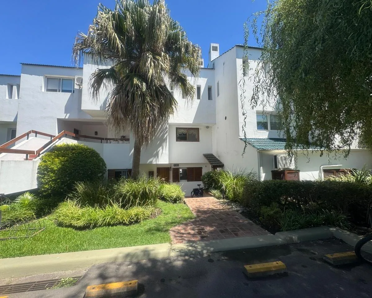 Ground-floor apartment for rent in Marinas del Sol, San Fernando. It has a hall, living and dining area, and a kitchen with a breakfast bar. Two bedrooms, with the main bedroom larger; the second bedroom is smaller and can be used as a study or desk area. The unit has a terrace with a grill, bay views, a laundry area, and measures 10 x 3.50 m. Building fees are $380,000, including electricity for the dormy.