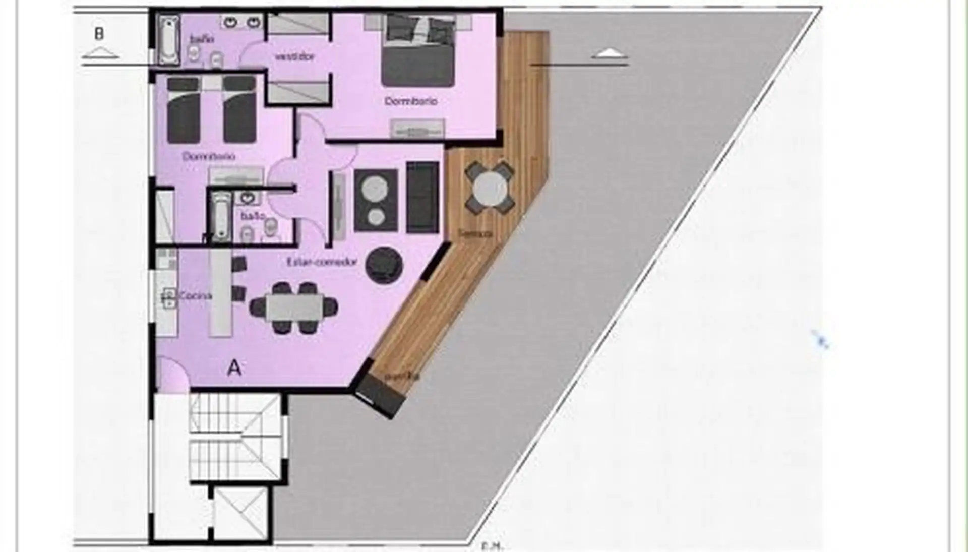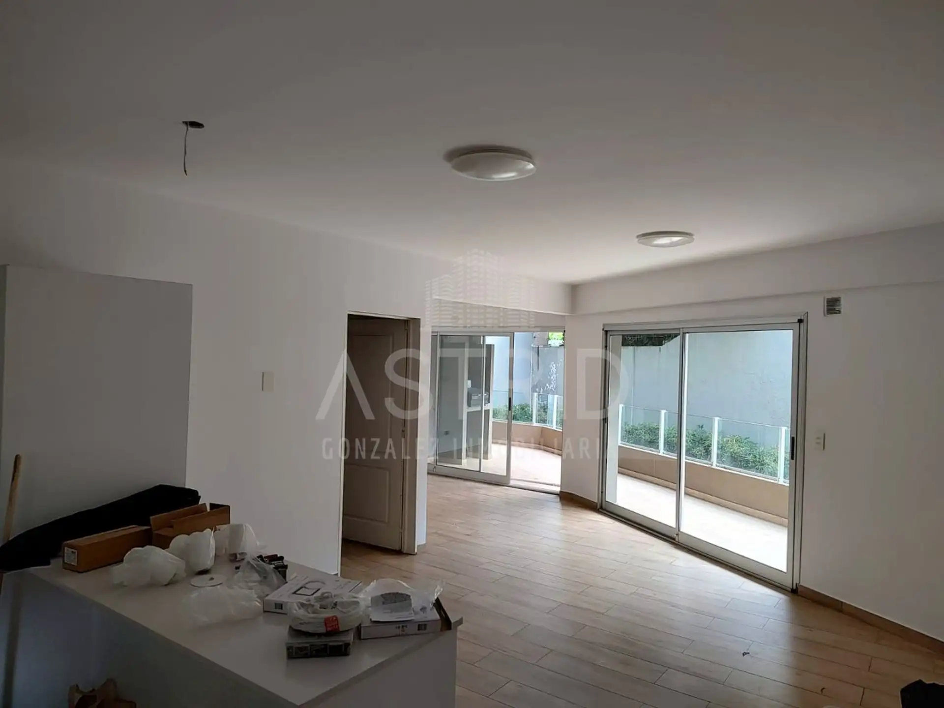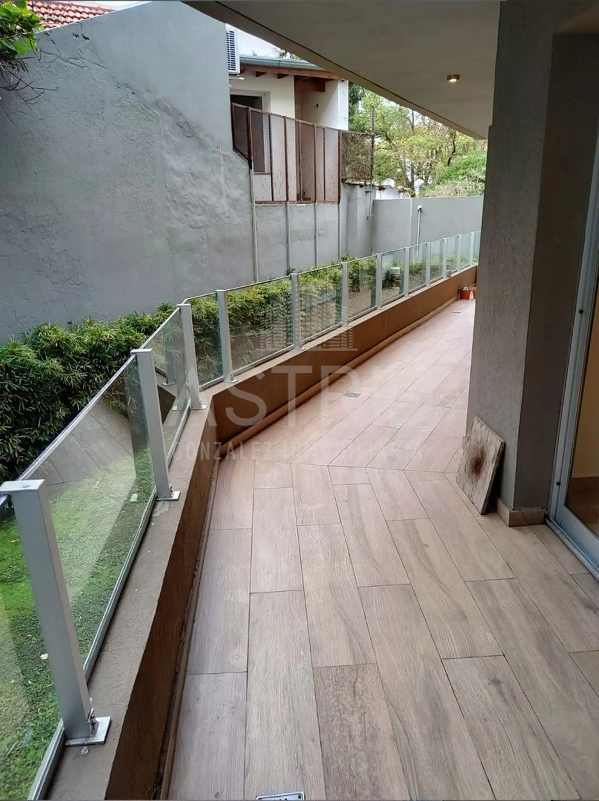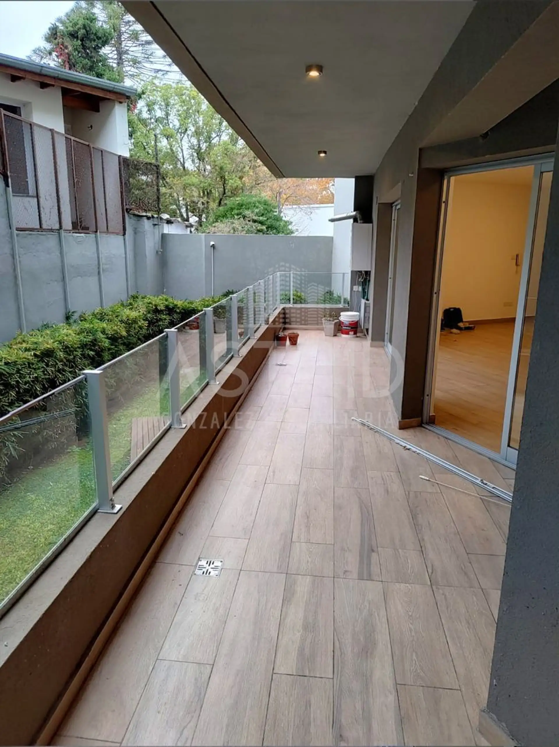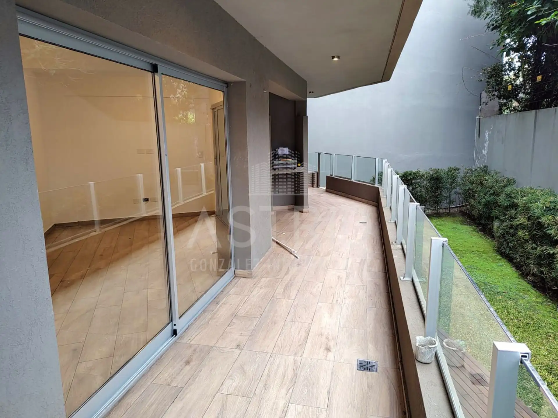 Three-room apartment with 2 bedrooms in Punta Chica, San Fernando, available from August 2026. It is street-facing on Av. del Libertador and features a kitchen integrated into the living-dining area, with a reserved living area opening to a large terrace with a grill. The main bedroom has a dressing area and a full bathroom; the second bedroom has a dressing area and access to a balcony, plus a second full bathroom. An assigned parking space is located on the ground floor. Rental requirements in