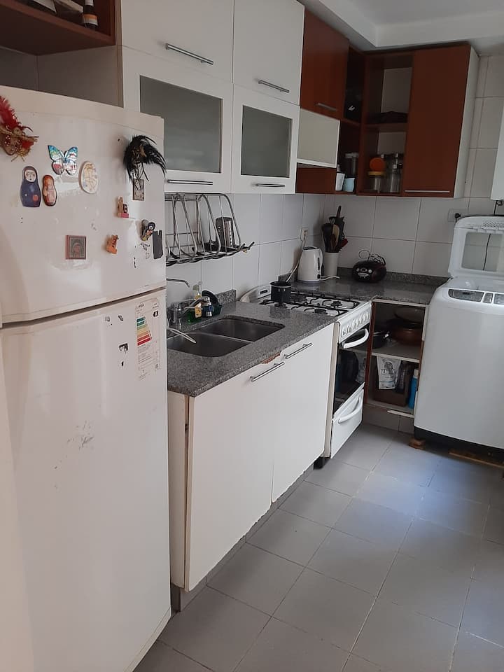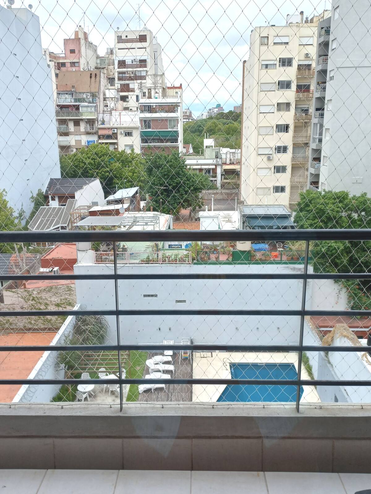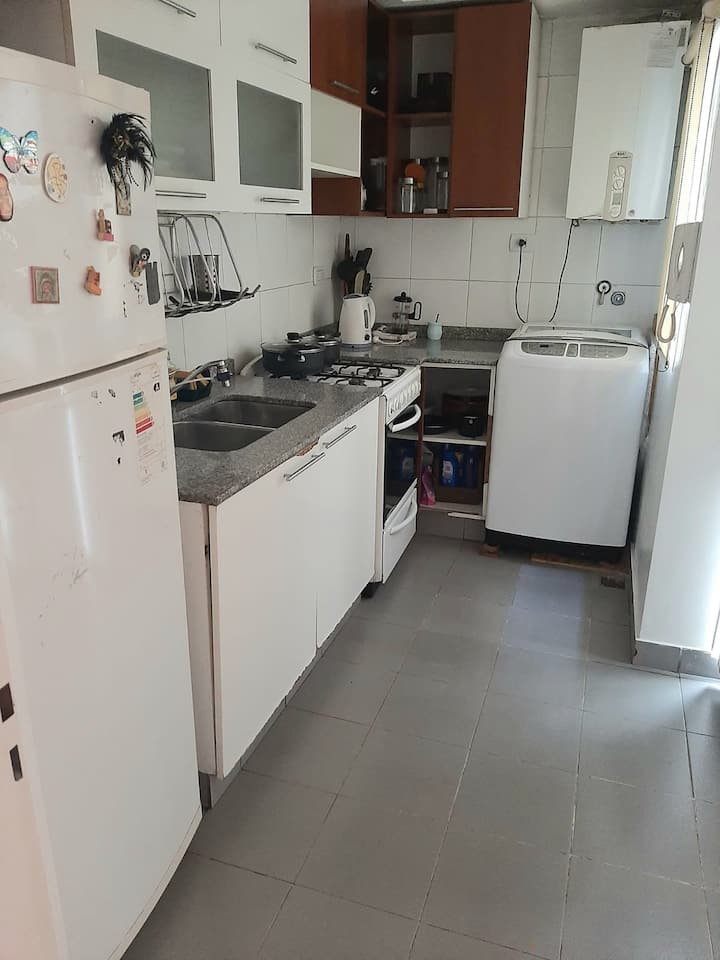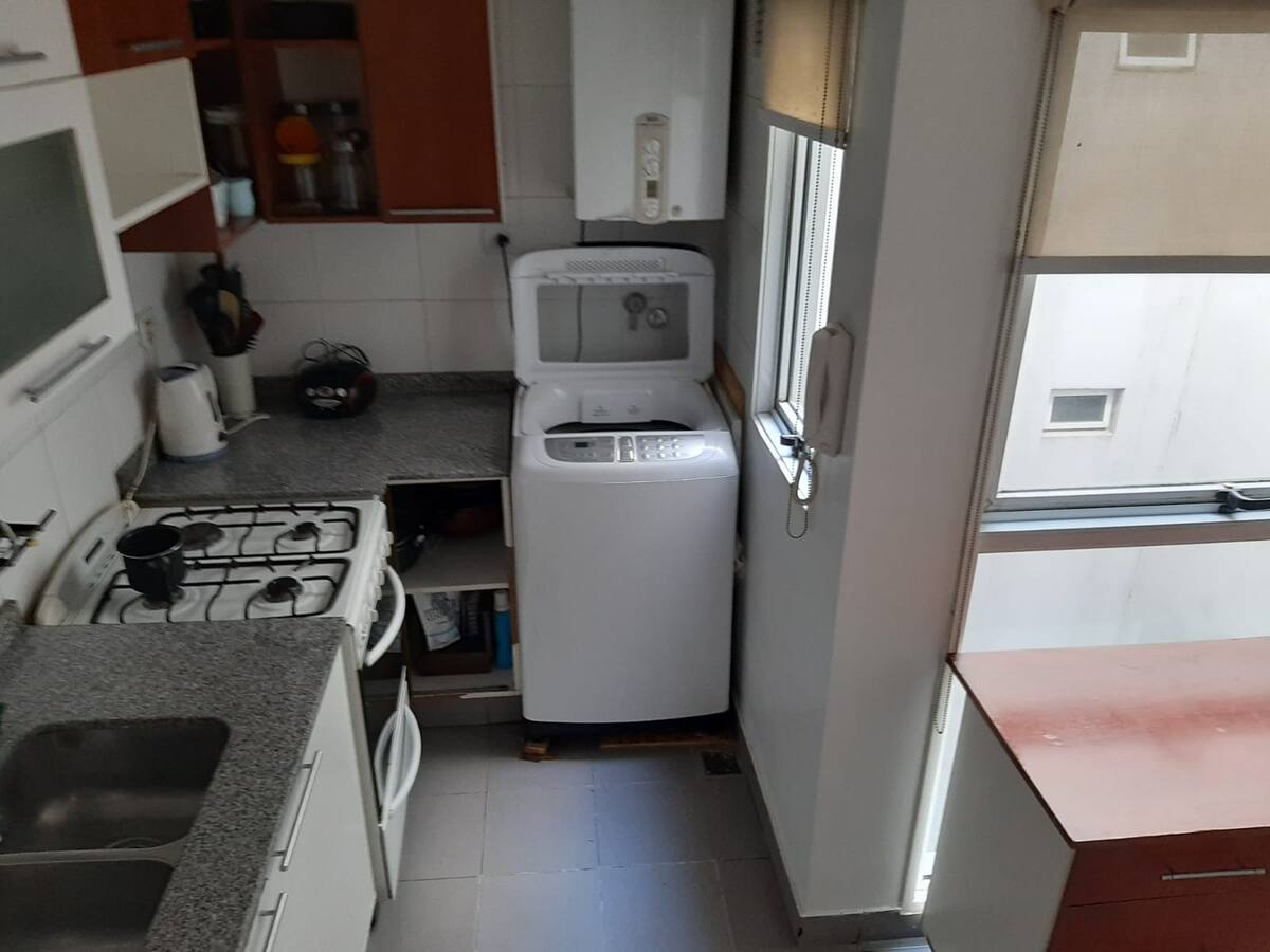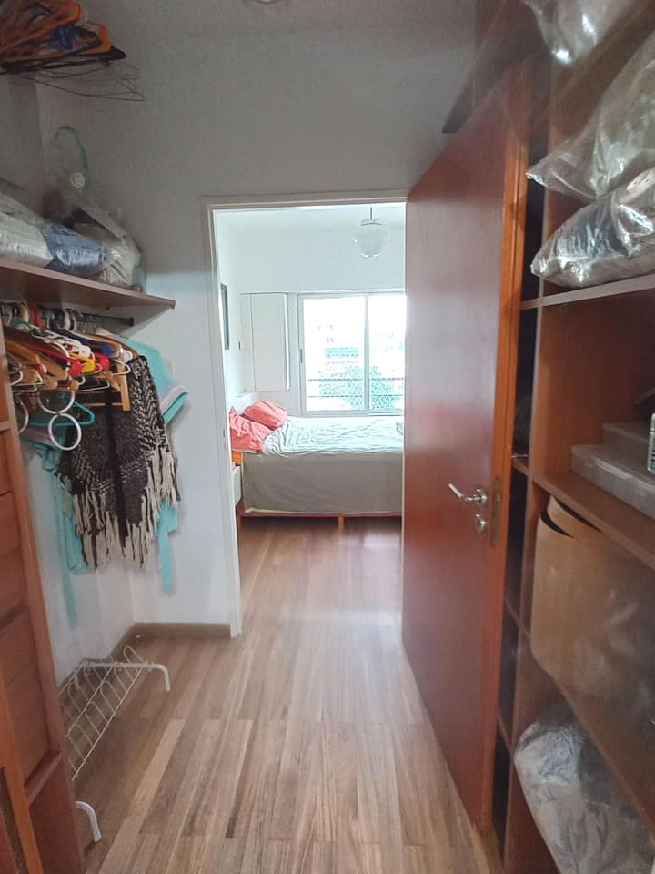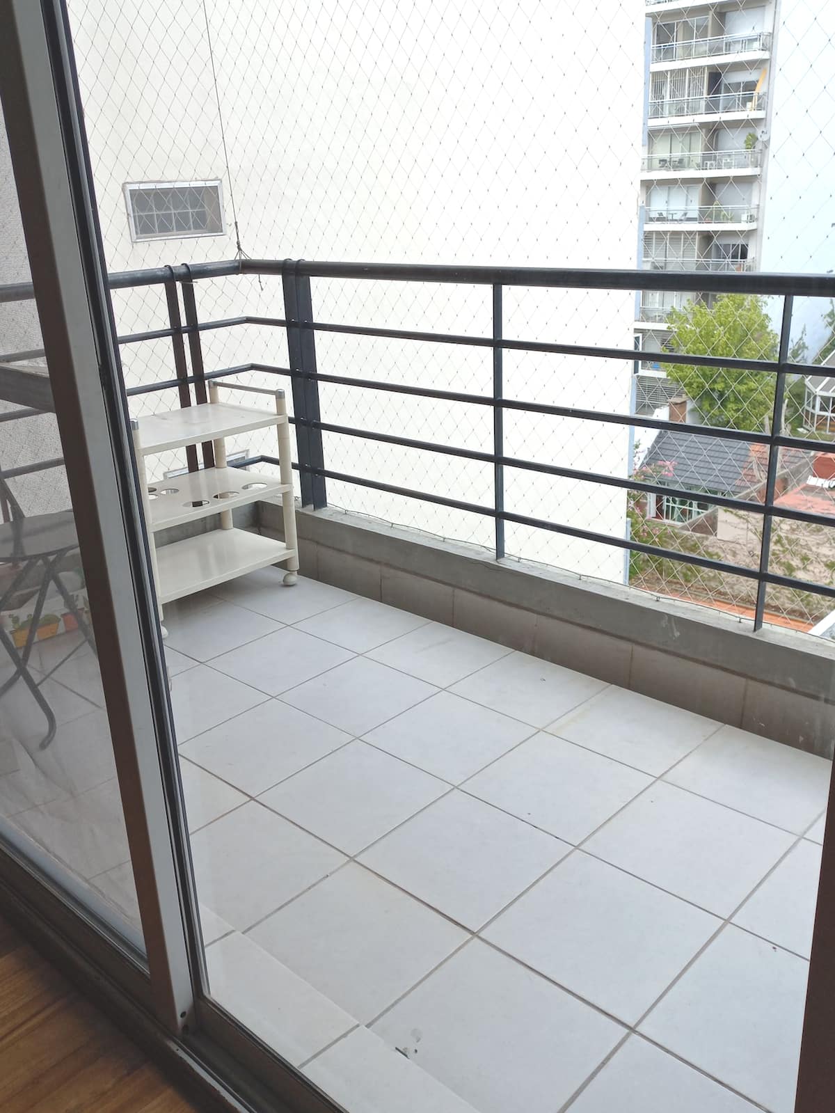 Two-bedroom apartment in Villa Crespo. The building has a garden, pool, gym and a communal room (SUM). The master bedroom has an en-suite bathroom, a walk-in closet and a queen bed; the second room has a single bed plus a trundle bed and a desk. The living room opens to a balcony overlooking the pool, other terraces and the garden, with a fully equipped kitchen. The apartment is 2 blocks from Parque Centenario.