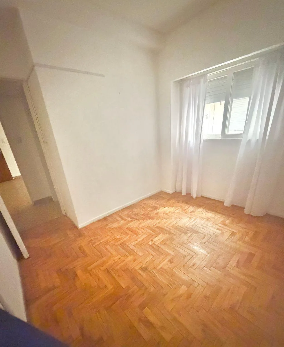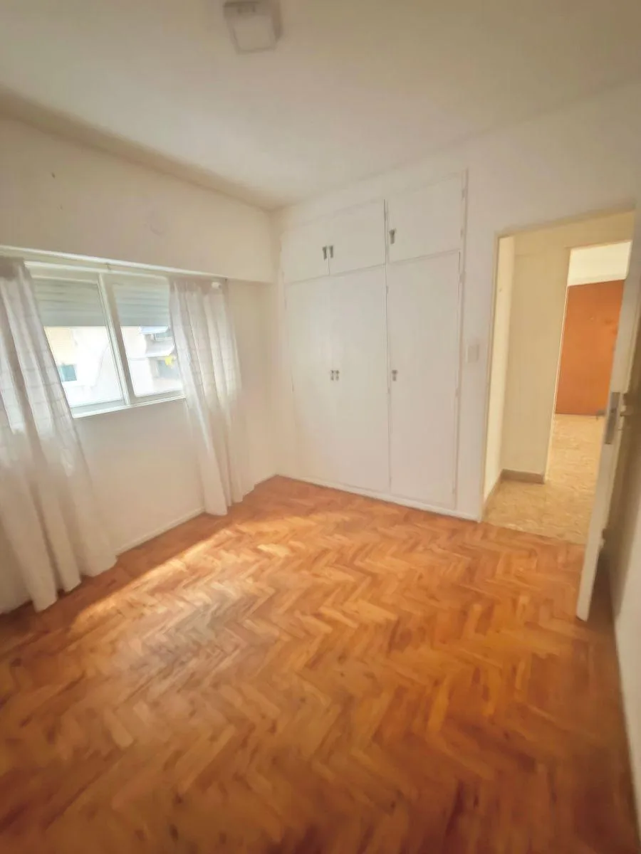 Three-room apartment with 2 bedrooms, 1 bathroom and a built area of 61 m². Located on a 9-storey building, with 4 units per floor and internal layout, street-facing to Plaza Aristóbulo del Valle with west orientation. Includes a living-dining room, kitchen and a laundry area. The building has an elevator and a caretaker; 55 years old.