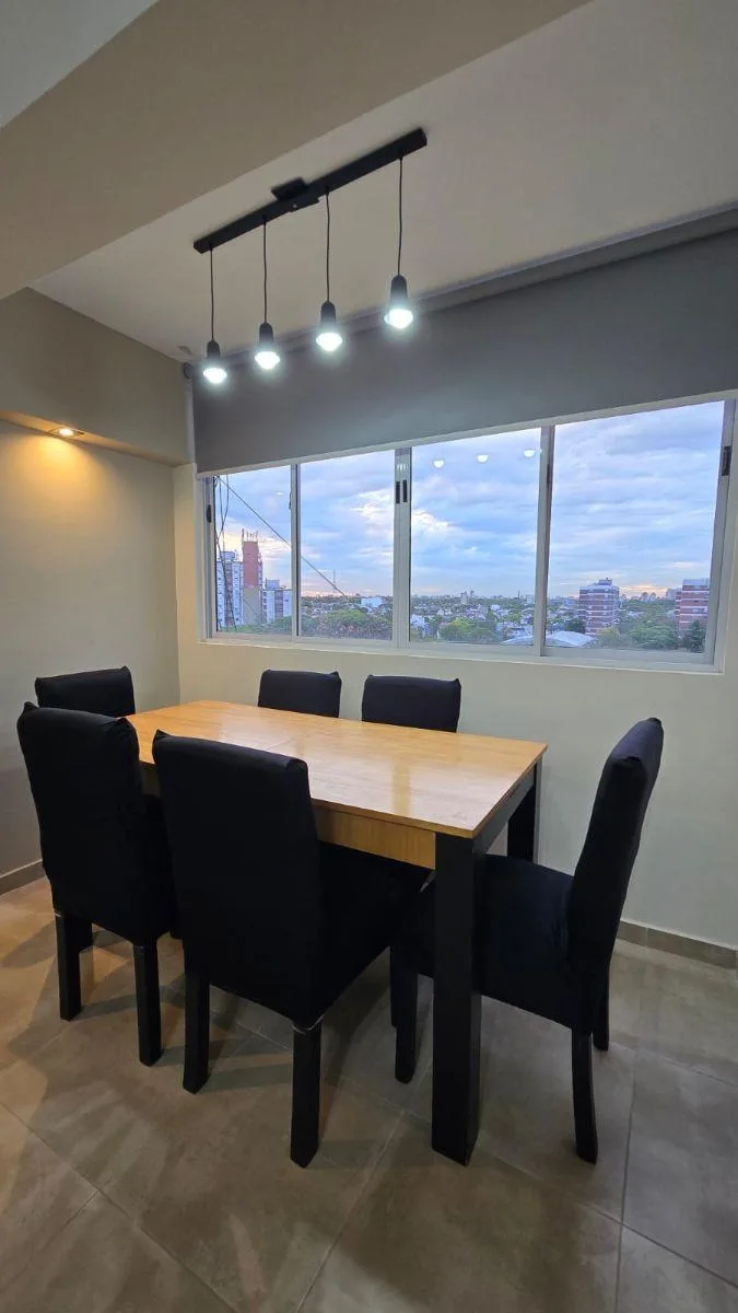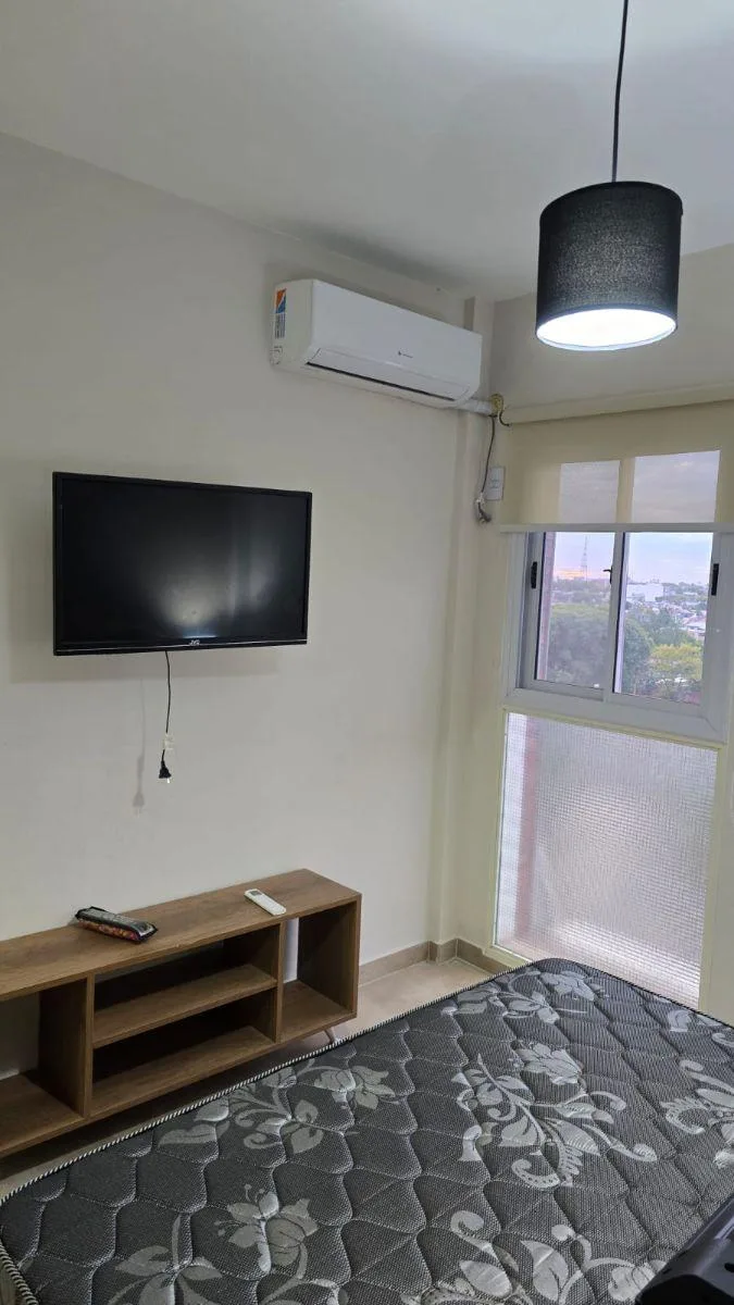 Furnished three-room apartment in Villa Lugano, 48 m² total area on the 7th floor. It has 2 bedrooms with built-in wardrobes and a full bathroom. The equipped kitchen and living-dining room include a balcony, 2 air-conditioning units and a water heater (termotanque).